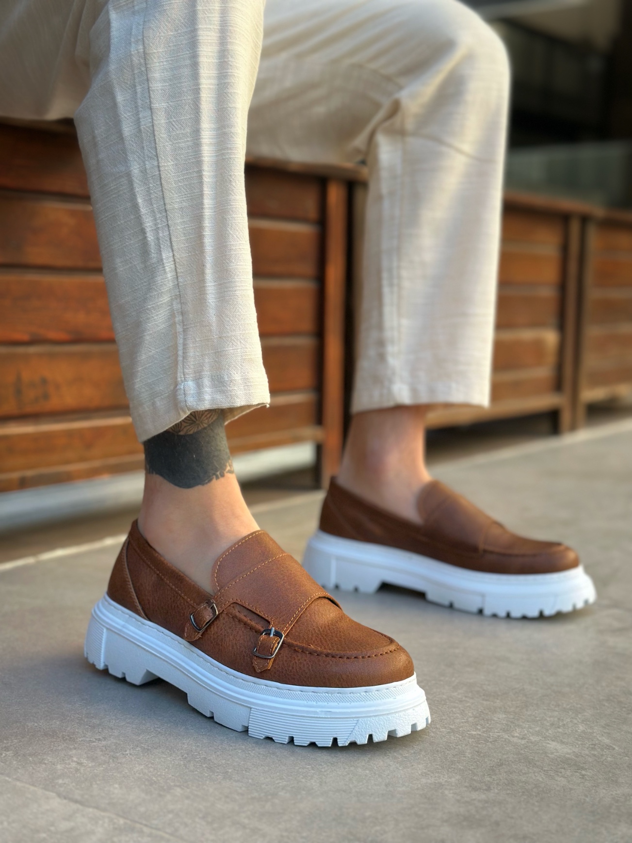 • MirgeShoes Taba Tokalı Erkek Klasik Casual Ayakkabı Cilt Yüksek BYZ Taban MRG010602560