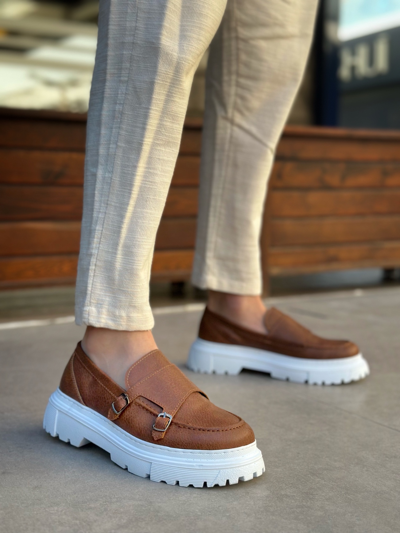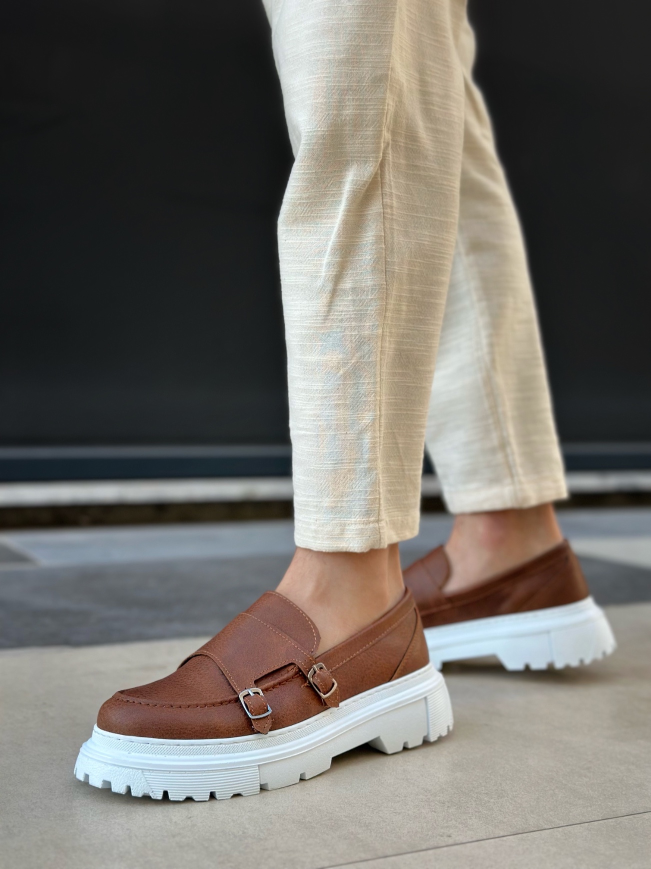 MirgeShoes Taba Tokalı Erkek Klasik Casual Ayakkabı Cilt Yüksek BYZ Taban MRG010602560
