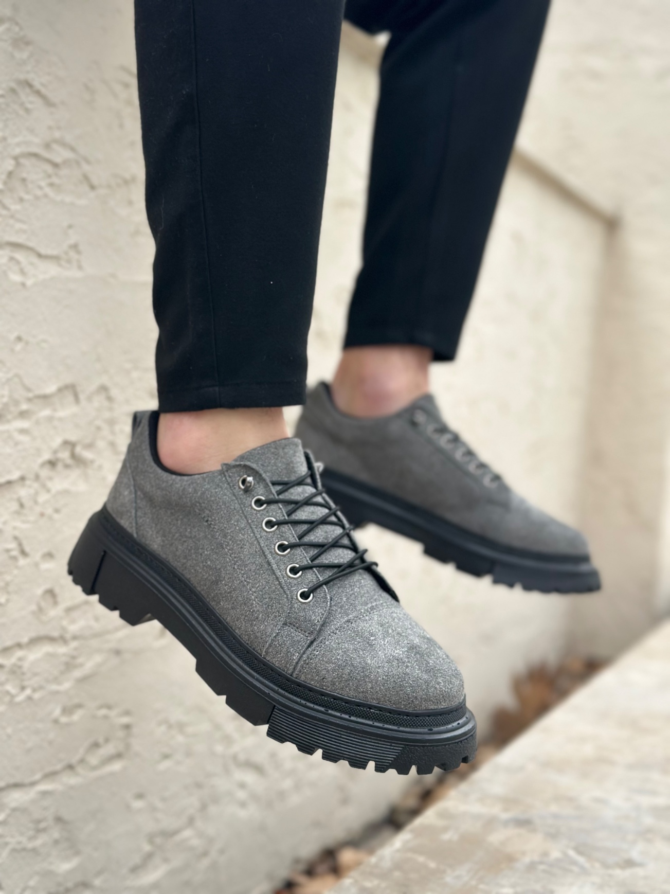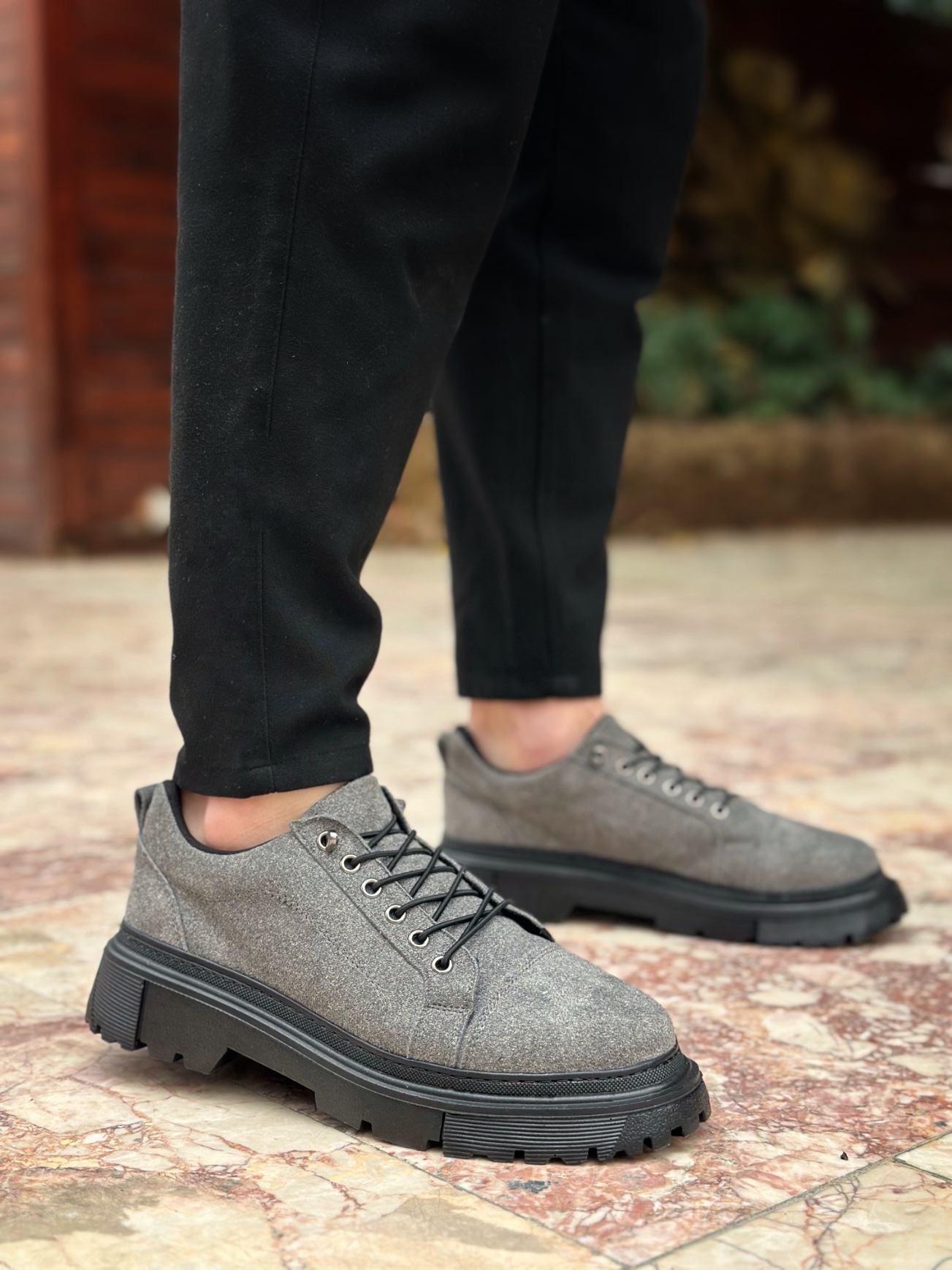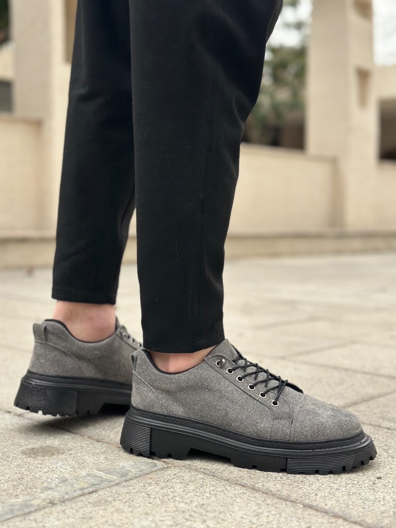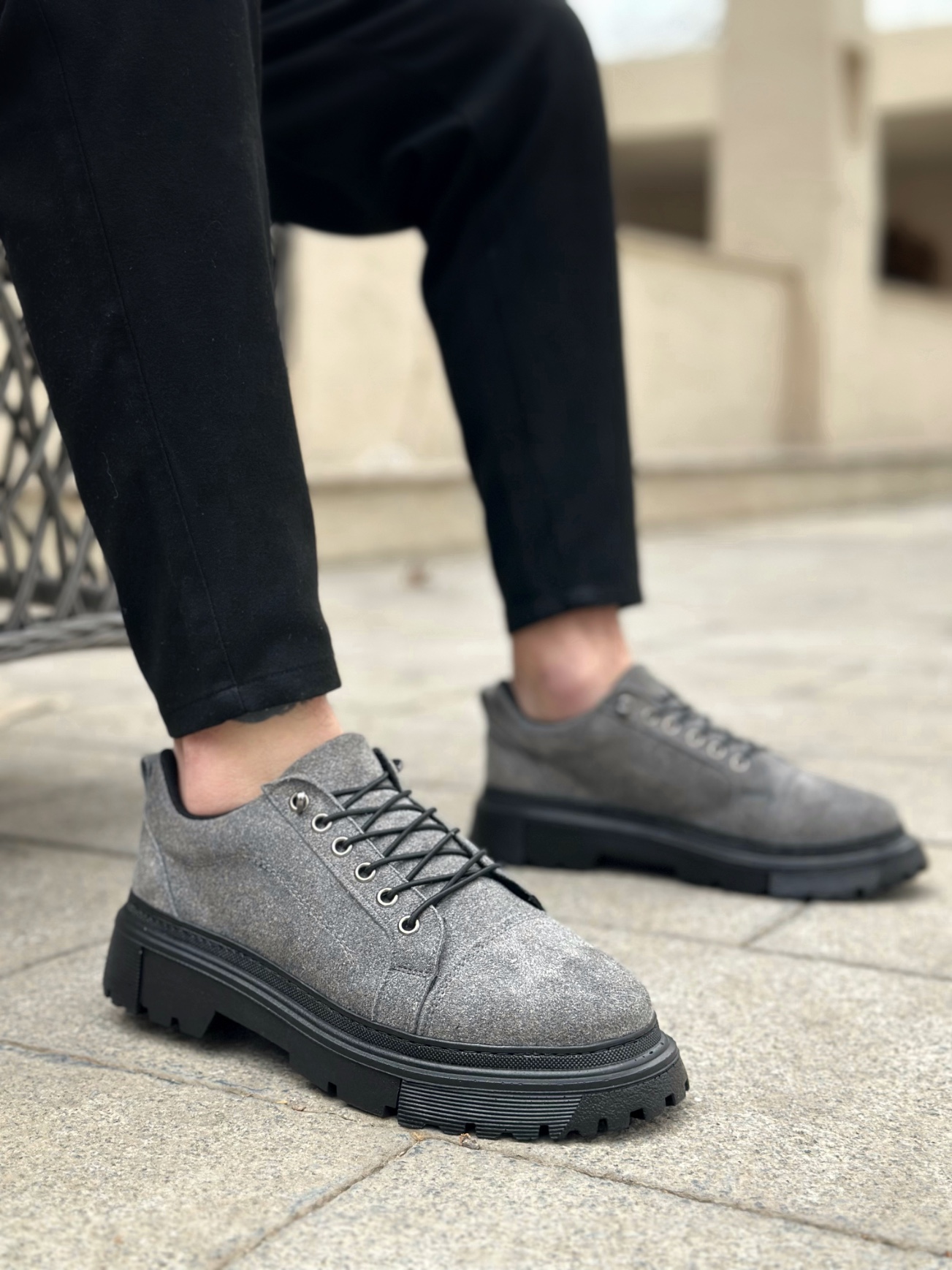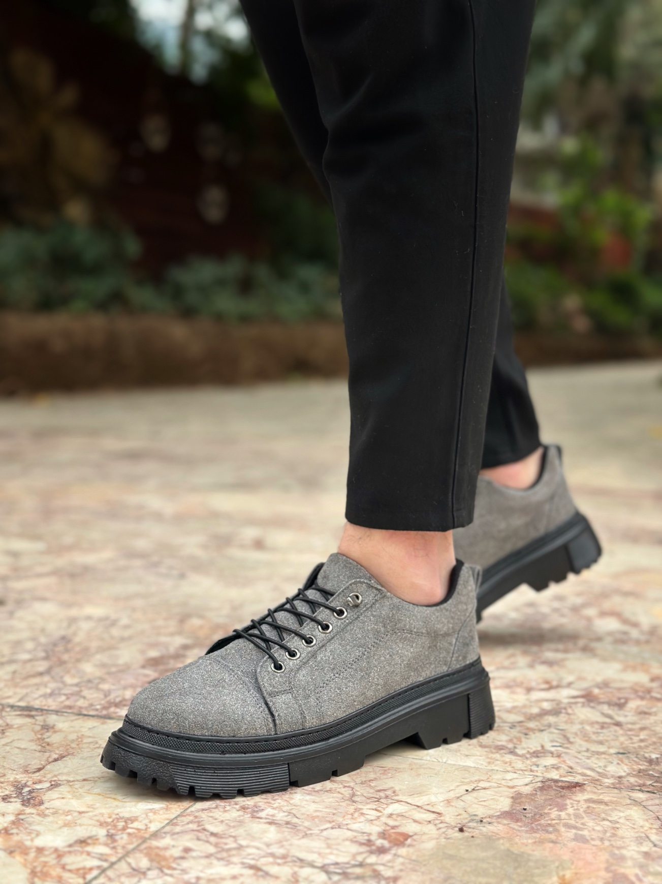 MirgeShoes Gri Akıllı Lastik Bağcık Erkek Günlük Ayakkabı Yüksek SYH Taban MRG010602563