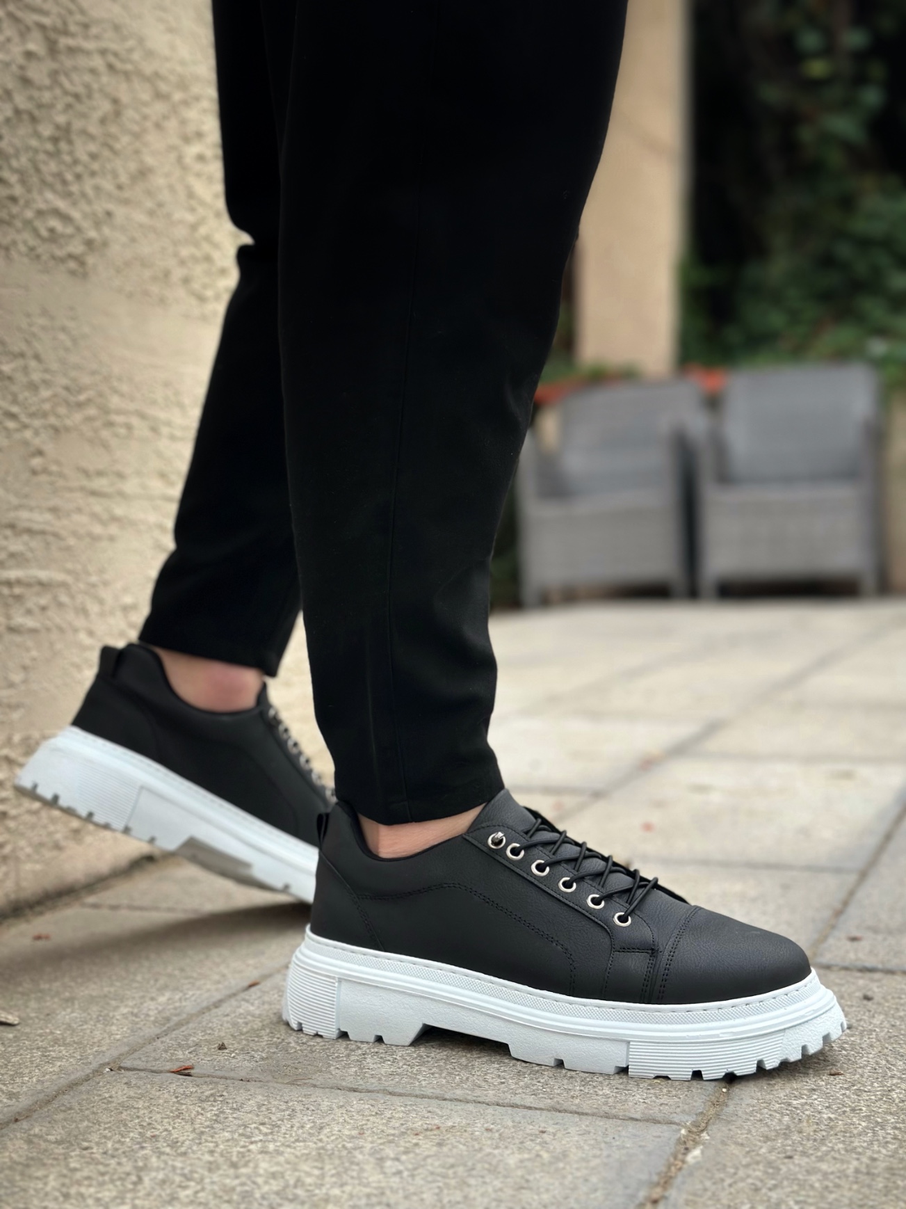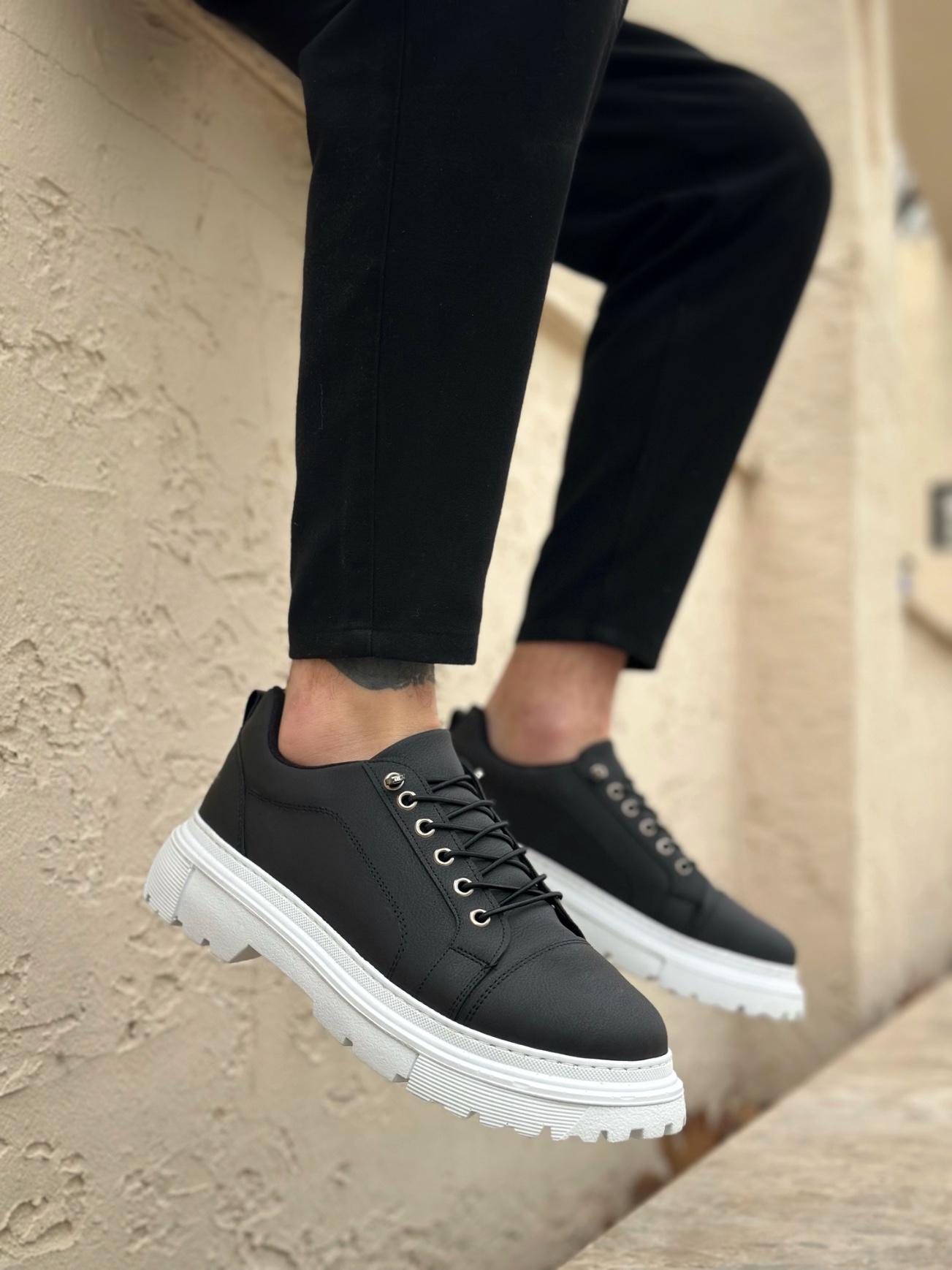 MirgeShoes Siyah Akıllı Lastik Bağcık Erkek Günlük Ayakkabı Yüksek BYZ Taban MRG010602563