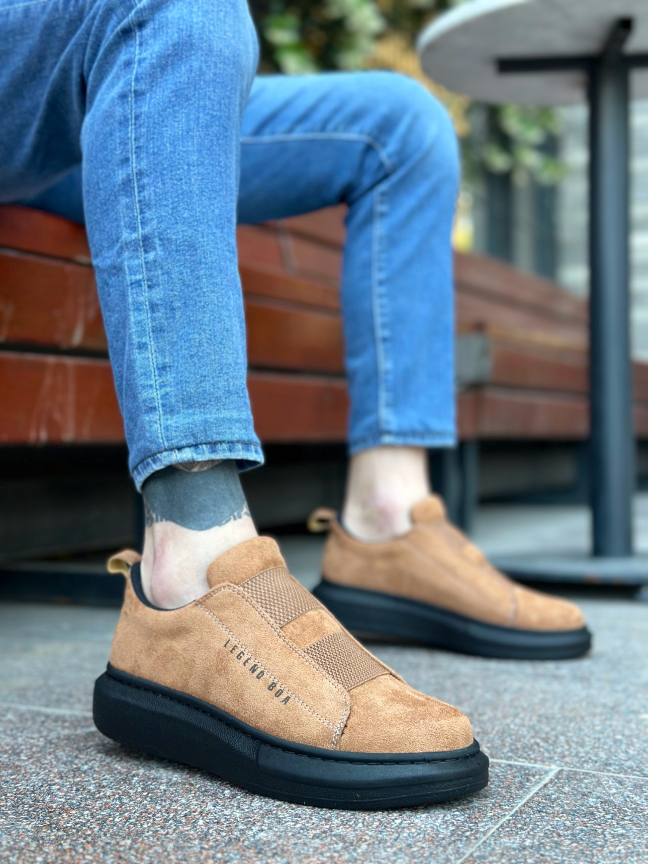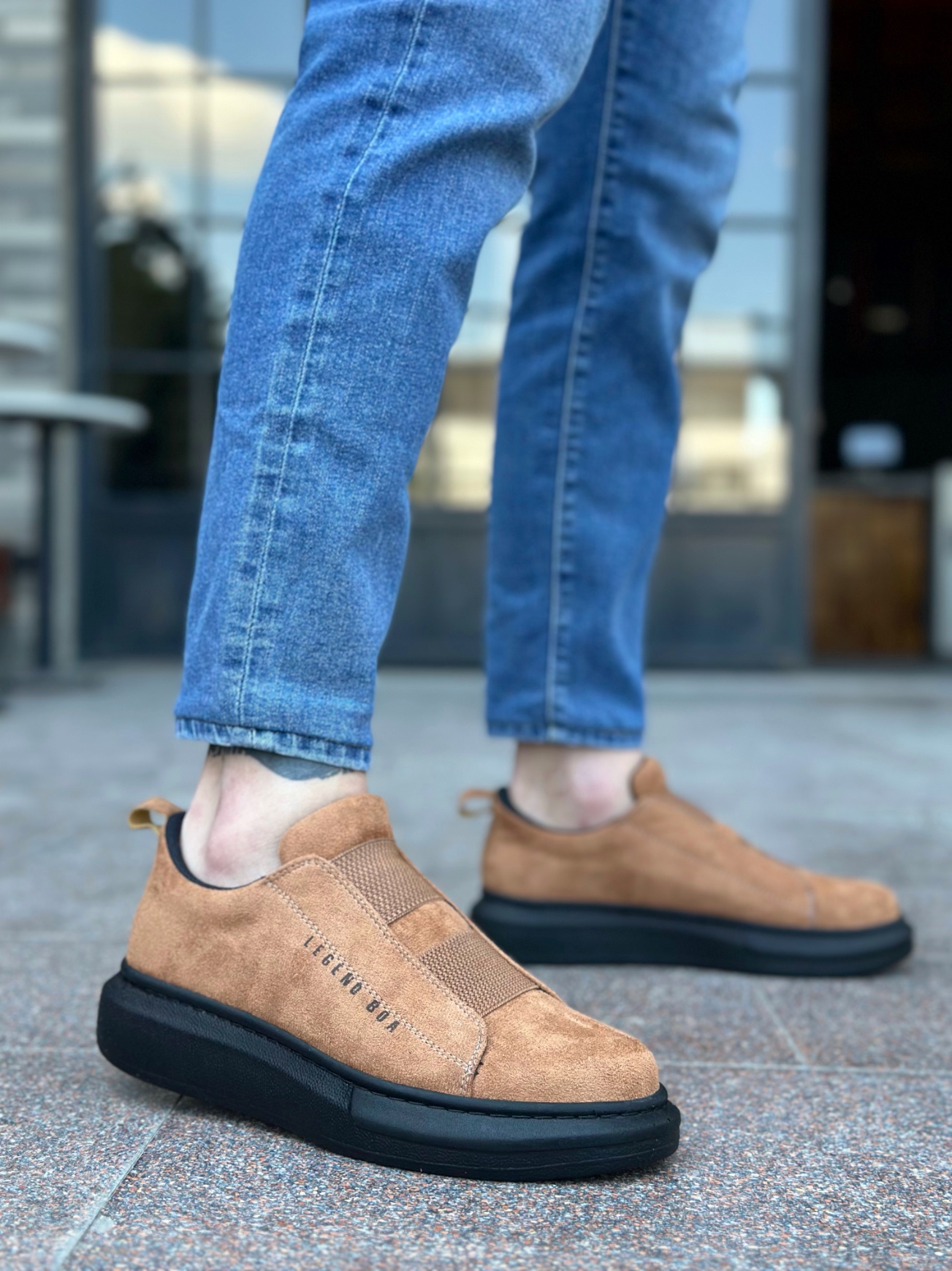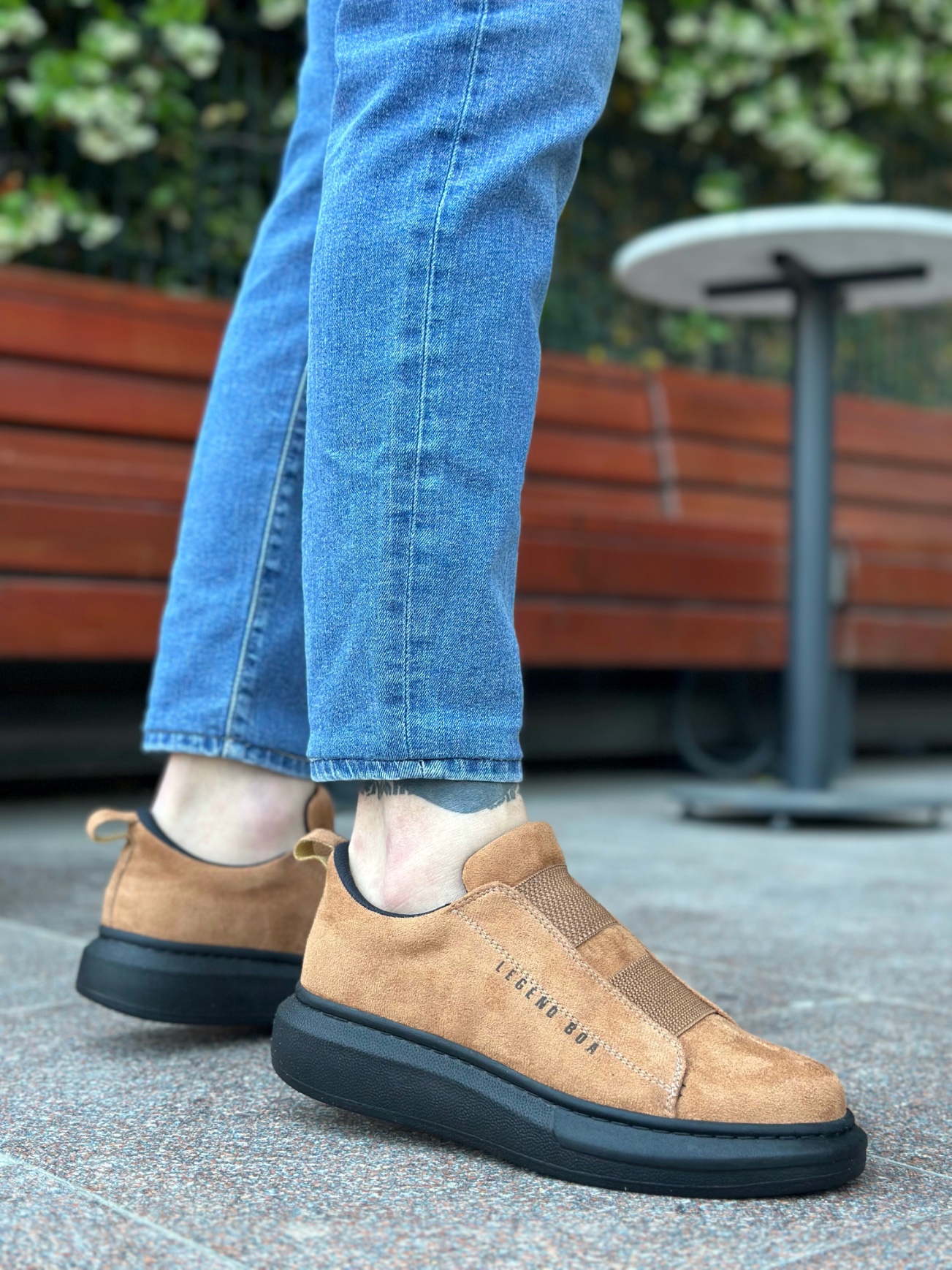 MirgeShoes Taba Çift Bantlı Erkek Tarz Ayakkabı Süet Kalın Yüksek SYH Taban MRG010602625