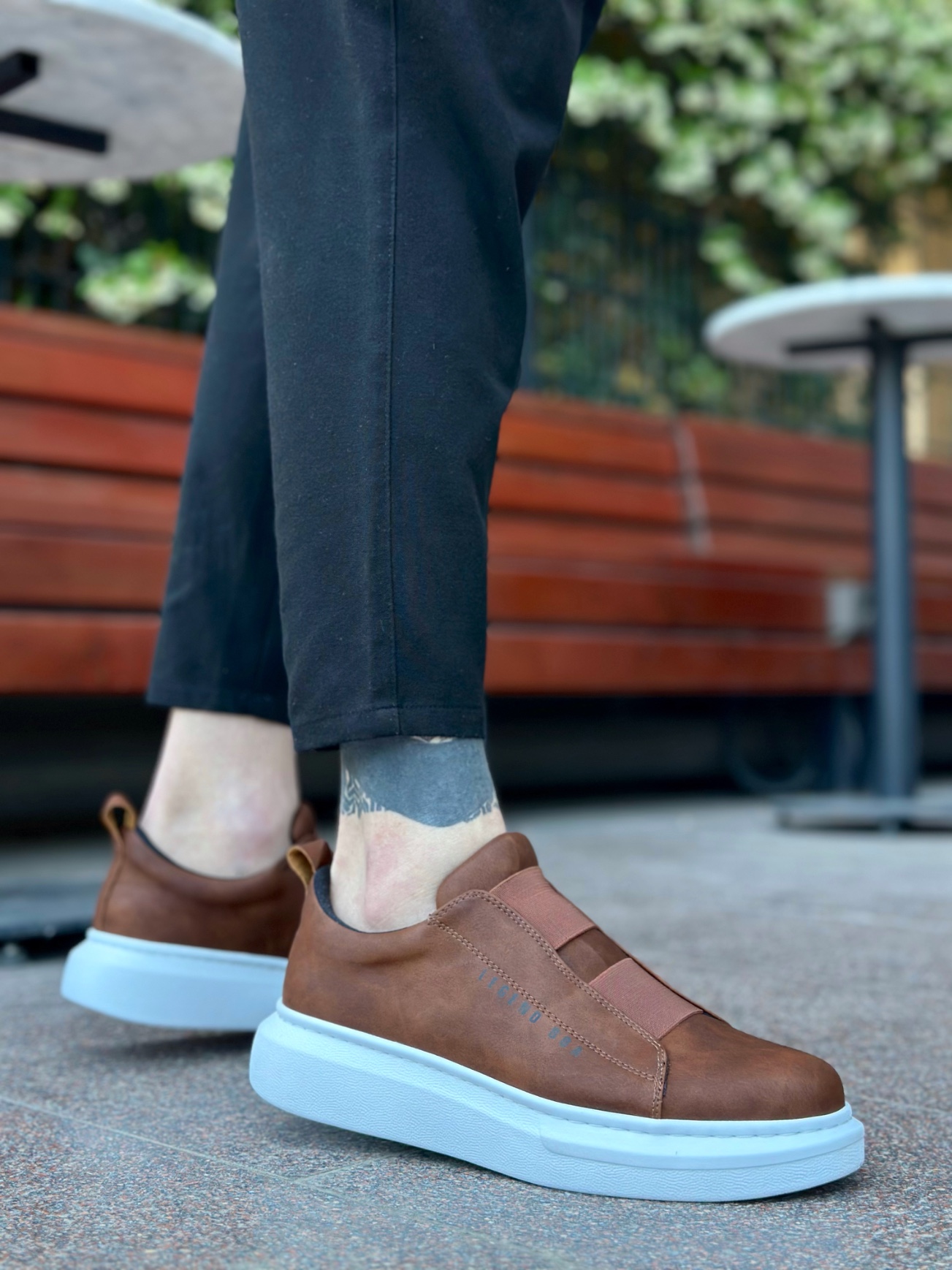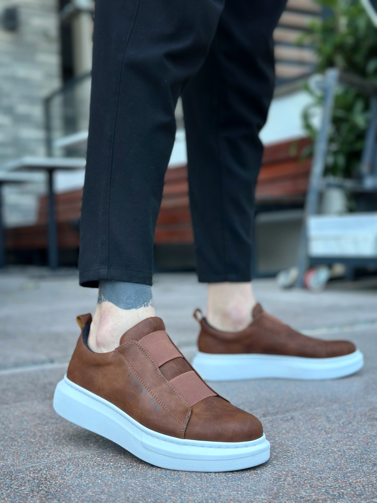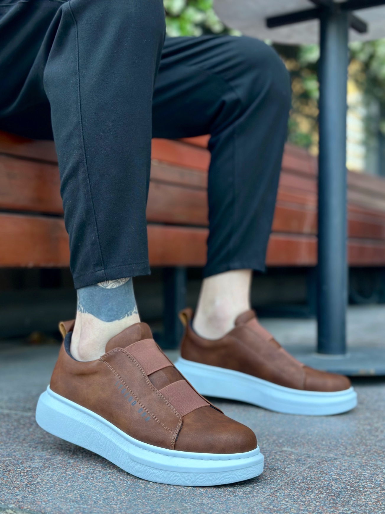 MirgeShoes Taba Çift Bantlı Erkek Tarz Ayakkabı Cilt Kalın Yüksek BYZ Taban MRG010602625
