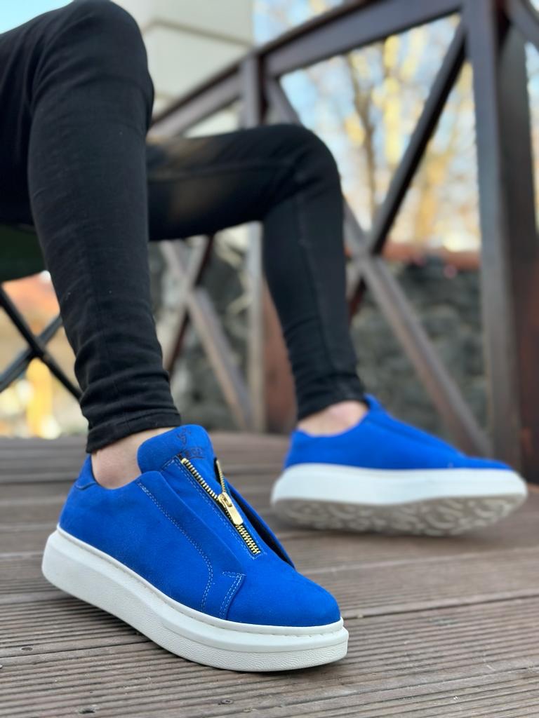 MirgeShoes Mavi Fermuarlı Erkek Tarz Ayakkabı Süet Yüksek Kalın BYZ Taban MRG010602628