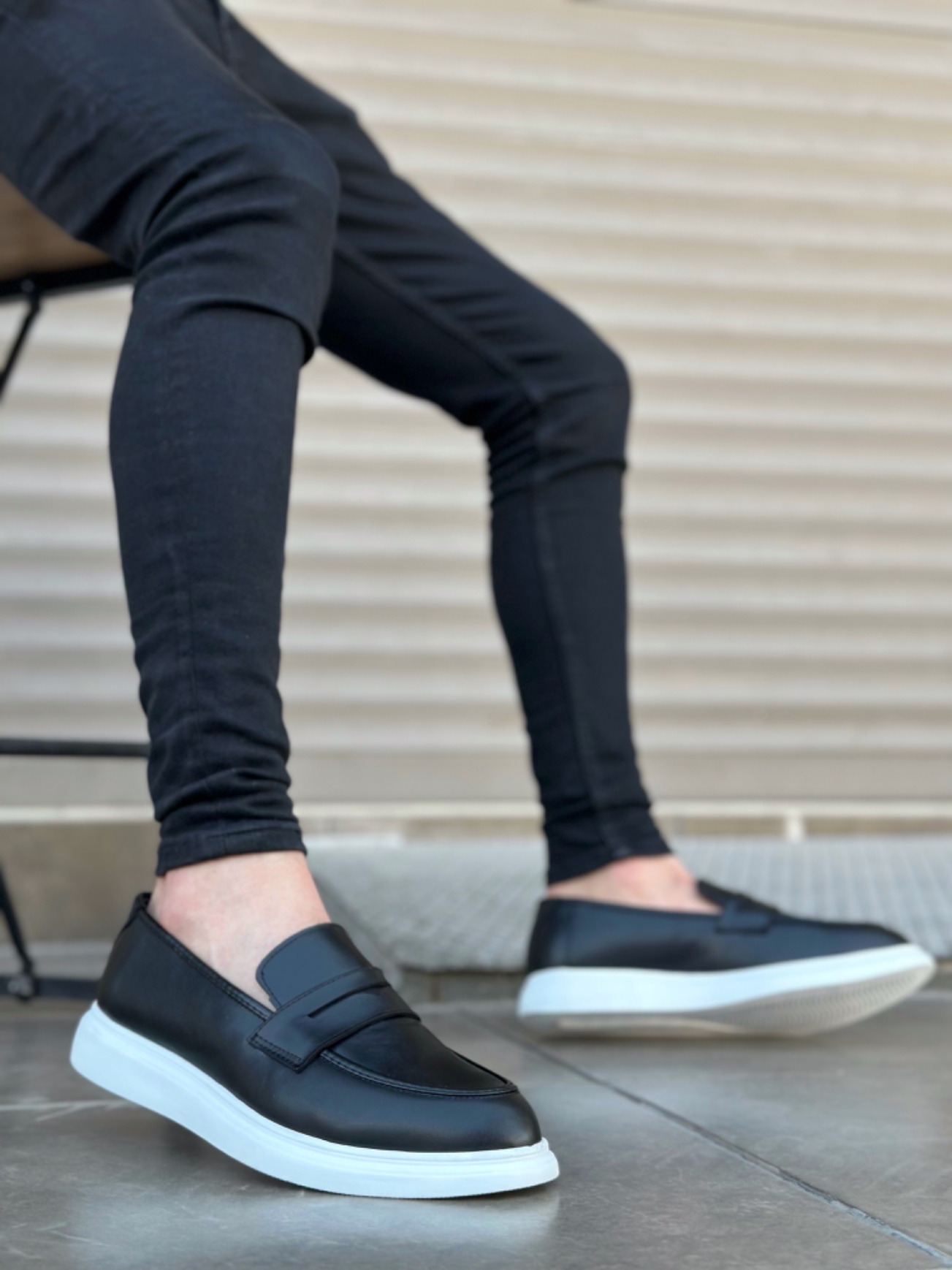 MirgeShoes Siyah Bağcıksız Erkek Klasik Loafer Ayakkabı Yüksek BYZ Taban MRG010602634