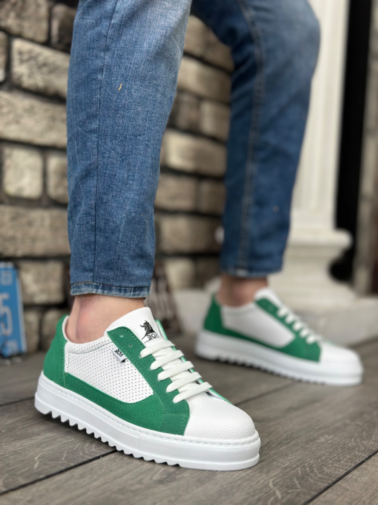 MirgeShoes Beyaz-Yeşil Bağcıklı Erkek Spor Ayakkabı Tırtıklı Kalın Yüksek BYZ Taban MRG010602641