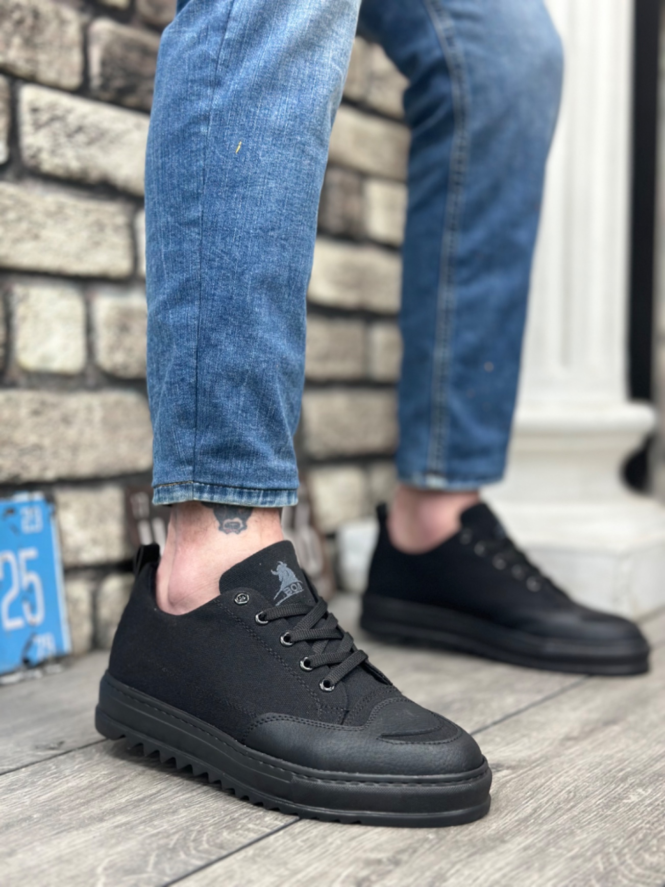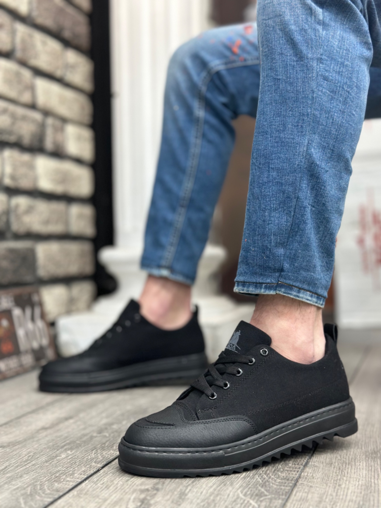 MirgeShoes Siyah Bağcıklı Erkek Spor Ayakkabı Keten Tırtıklı Kalın Yüksek SYH Taban MRG010602646