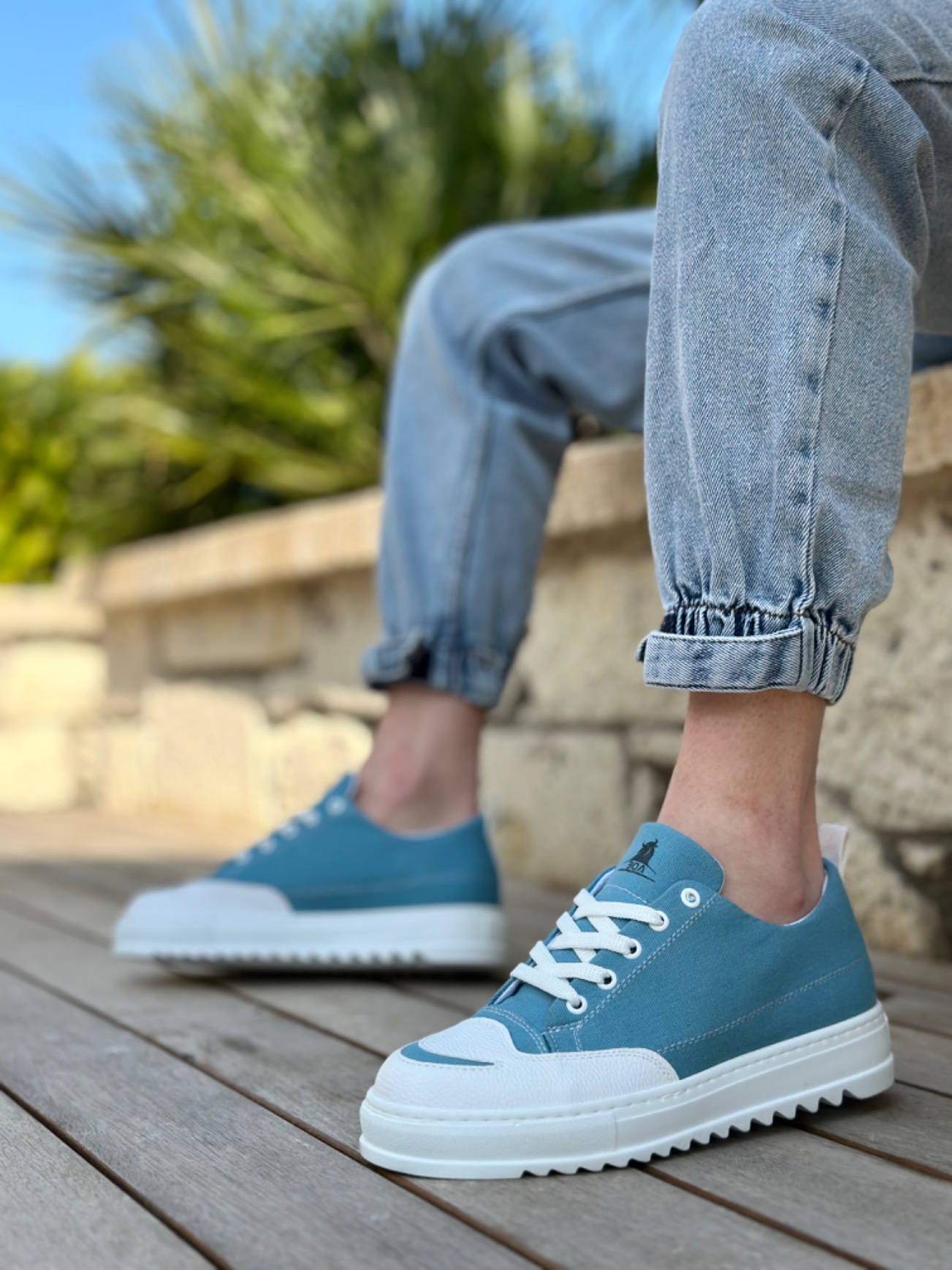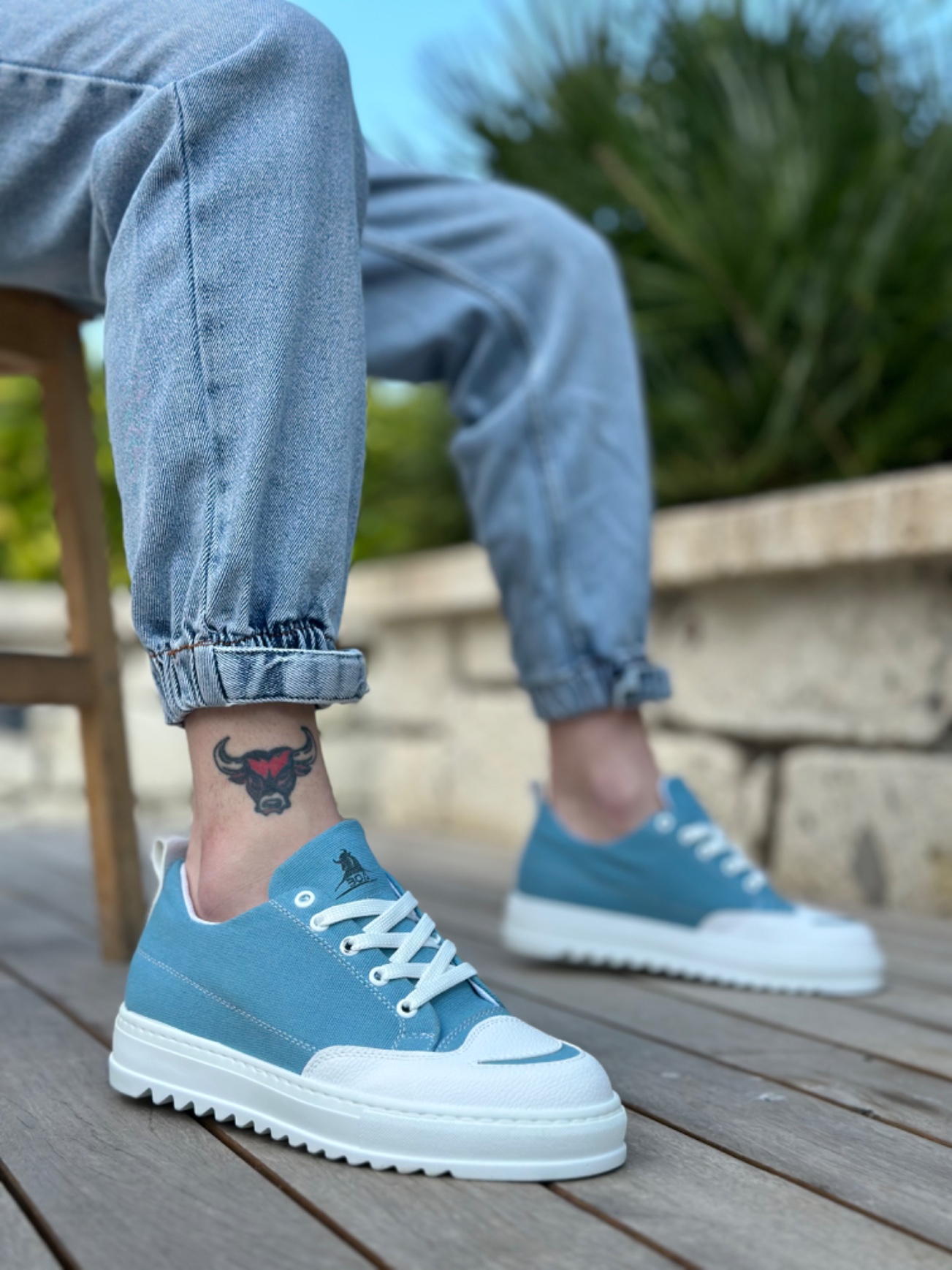 • MirgeShoes Turkuaz Bağcıklı Erkek Spor Ayakkabı Keten Tırtıklı Kalın Yüksek BYZ Taban MRG010602646