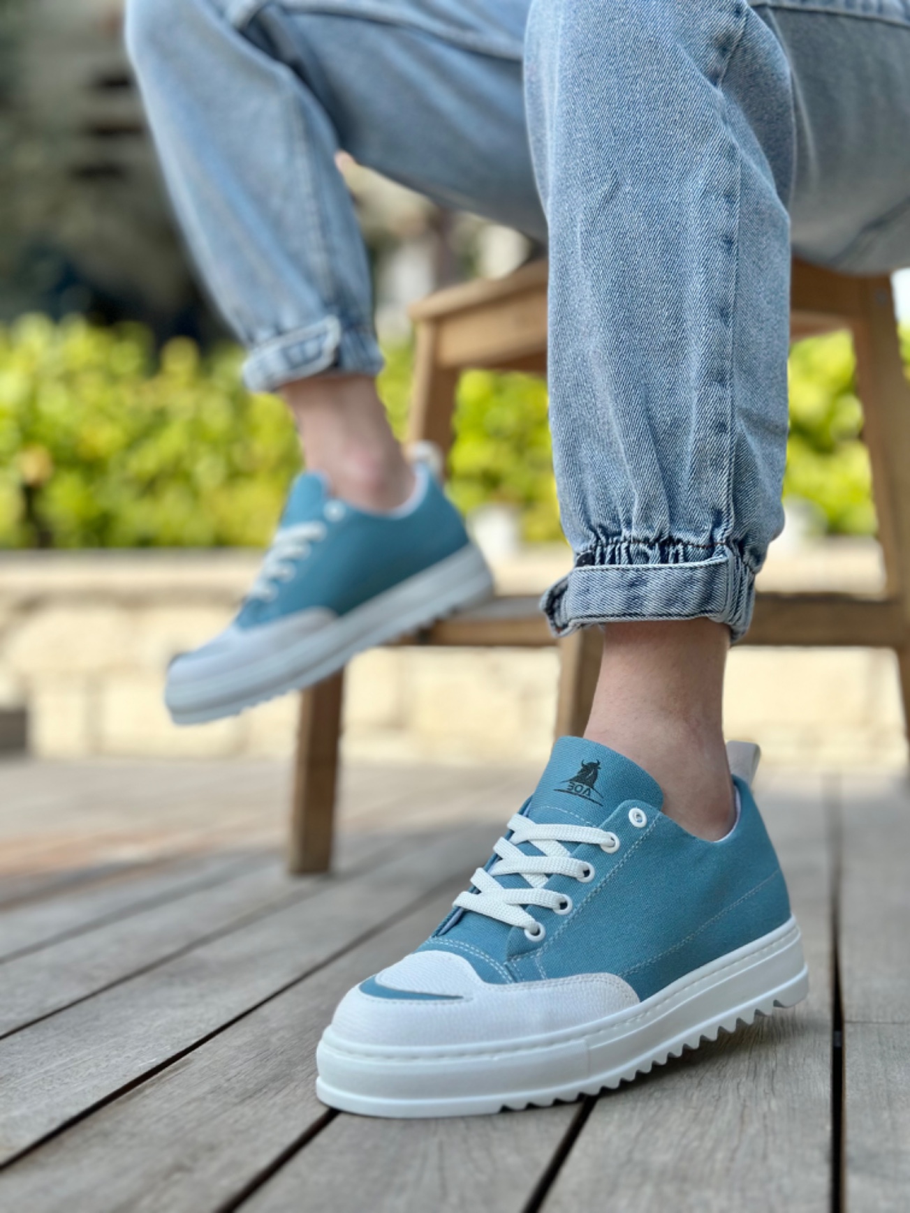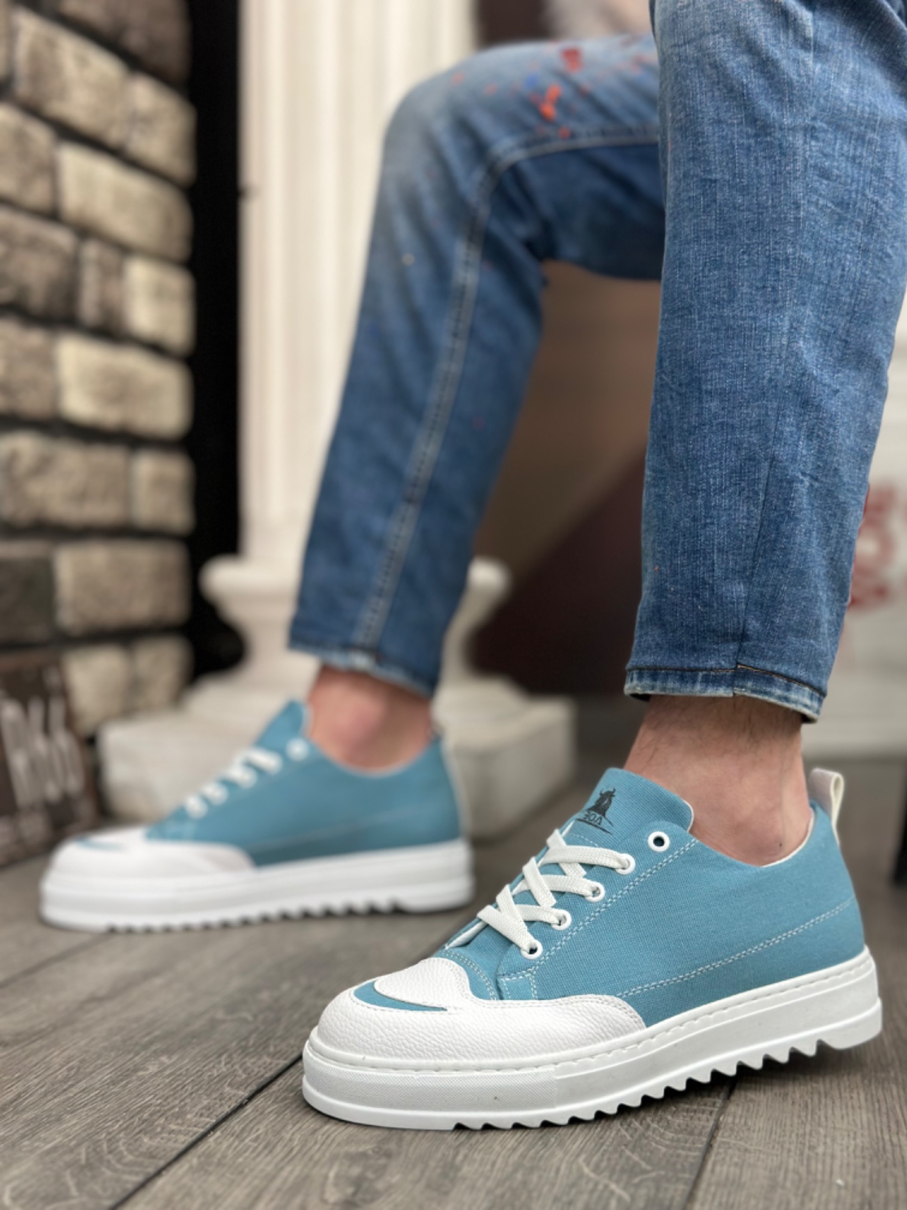 MirgeShoes Turkuaz Bağcıklı Erkek Spor Ayakkabı Keten Tırtıklı Kalın Yüksek BYZ Taban MRG010602646