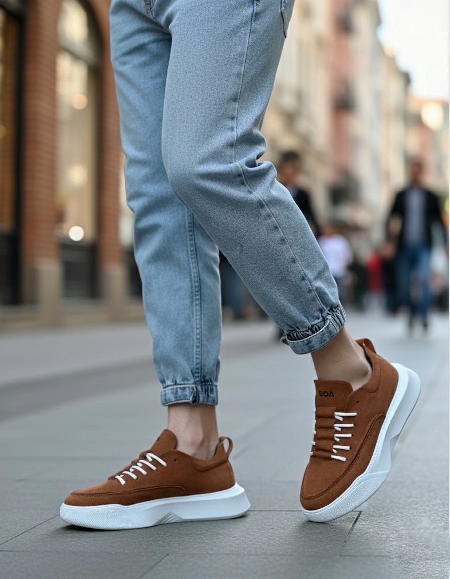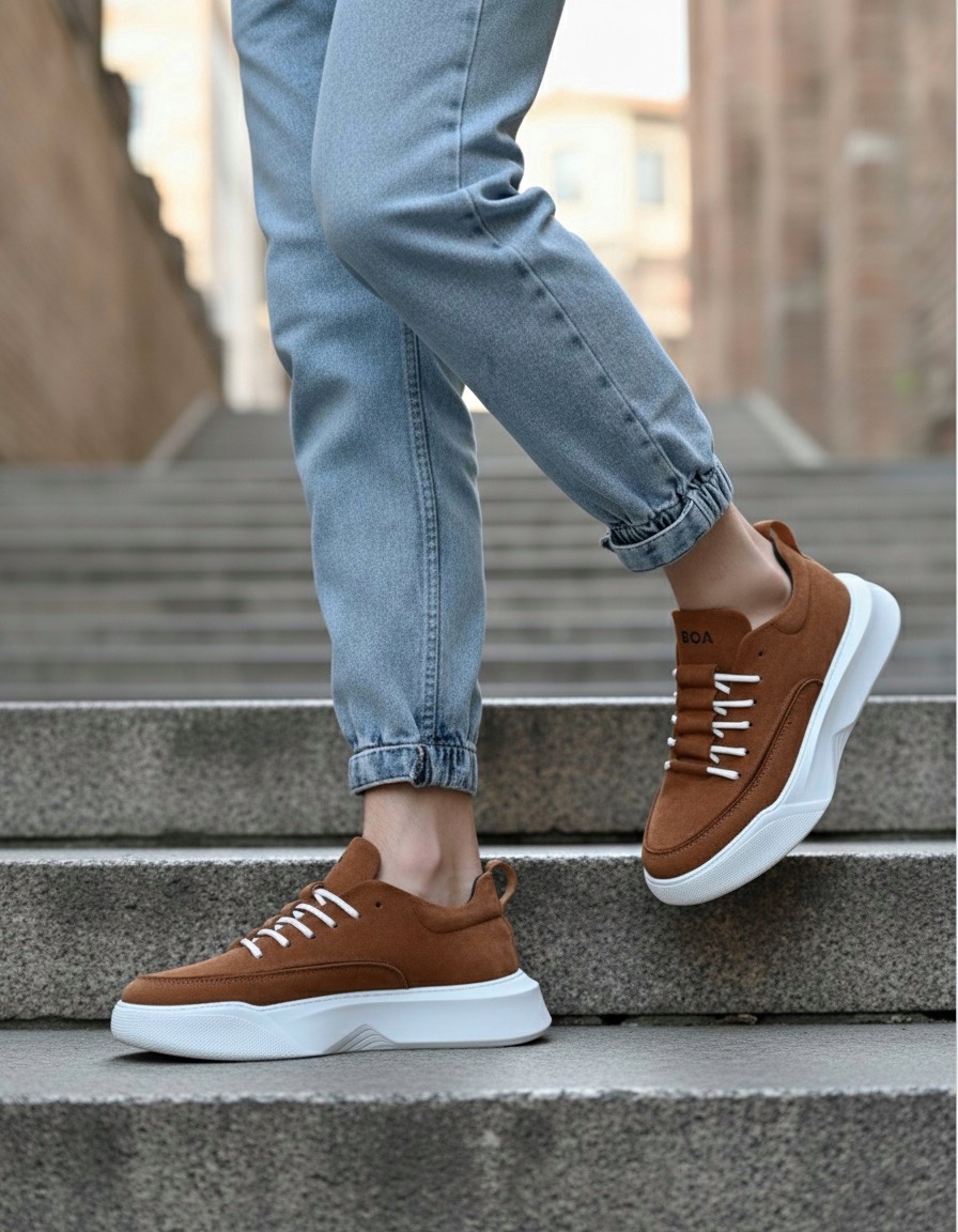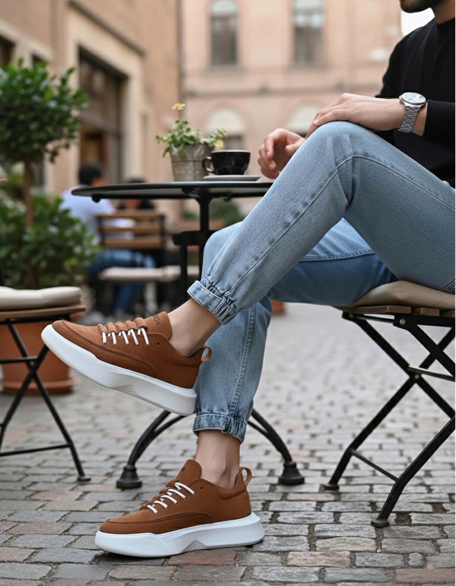 • MirgeShoes Taba Bağcıklı Erkek Spor Ayakkabı Süet Deri Merdiven Desen Yüksek BYZ Taban MRG010602650