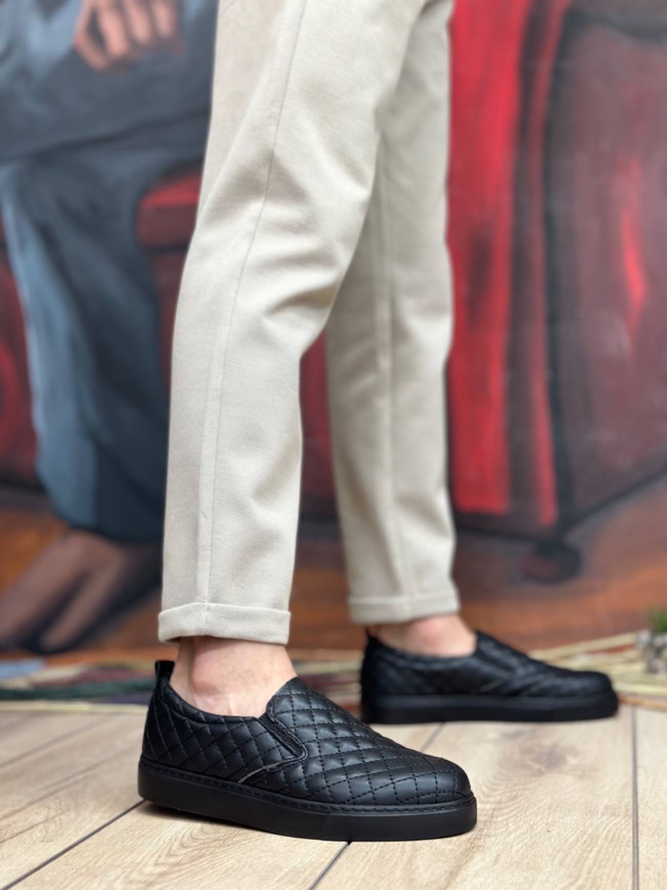 MirgeShoes Siyah Bağcıksız Erkek Günlük Ayakkabı Kapitone Kalın SYH Taban MRG010602671