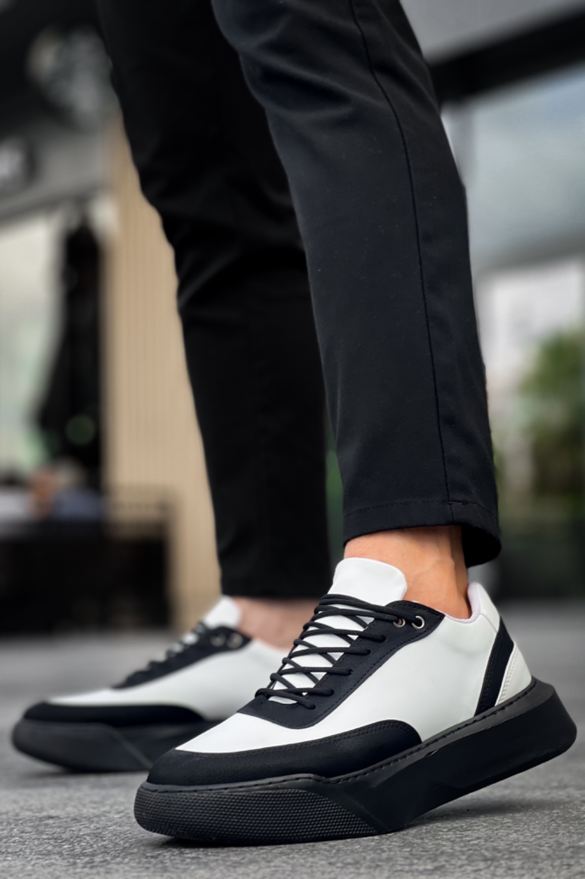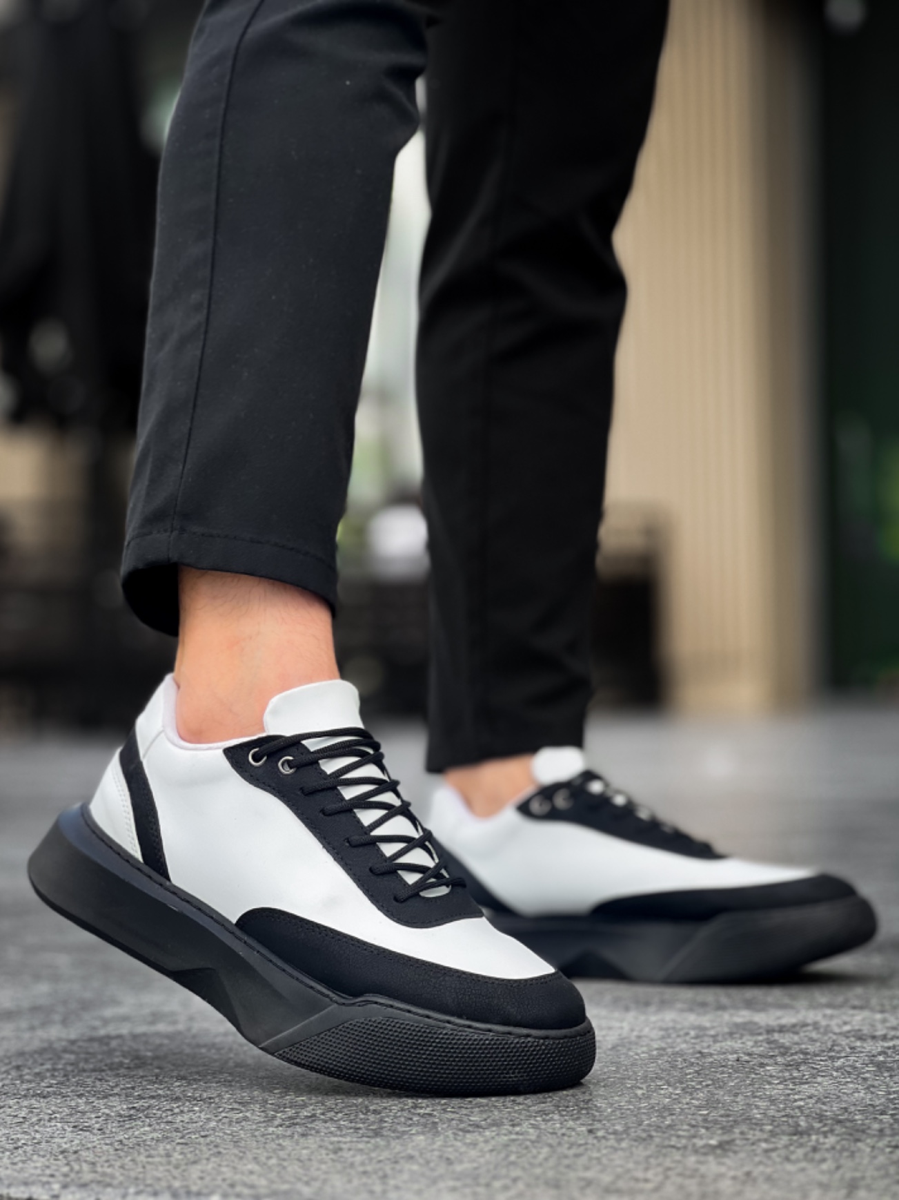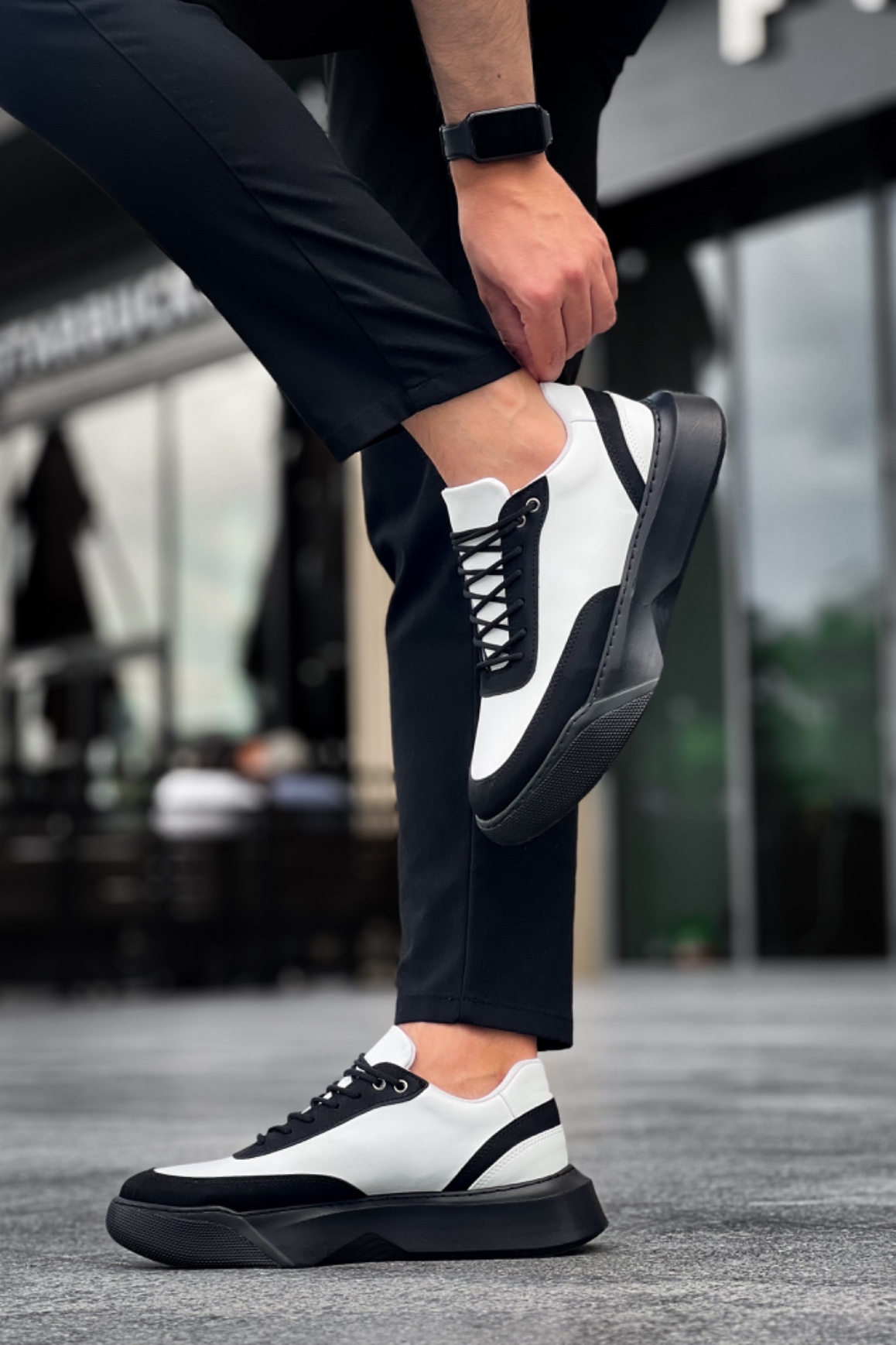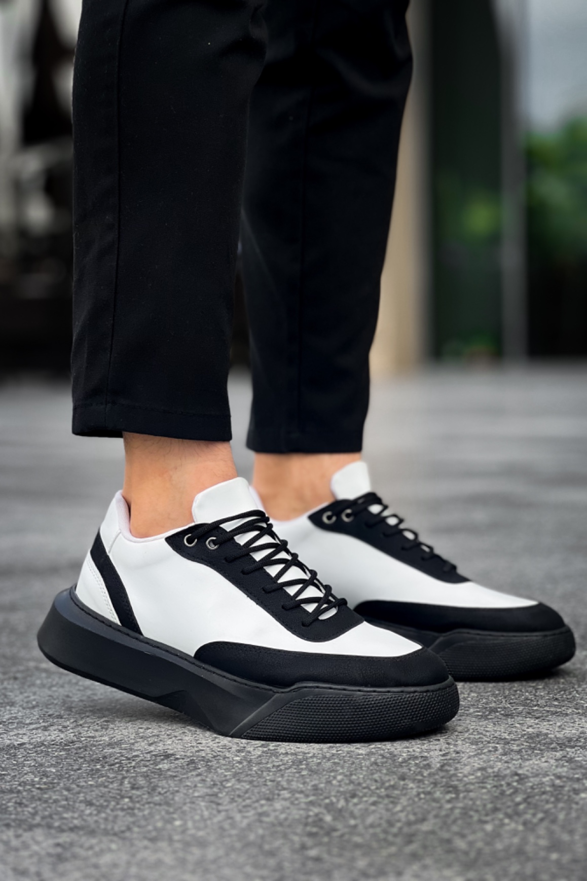 MirgeShoes Siyah Bağcıklı Erkek Günlük Spor Ayakkabı Beyaz Parçalı Yüksek SYH Taban MRG010602672