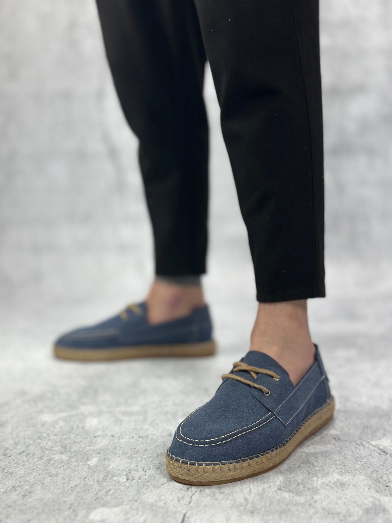 • MirgeShoes Mavi Bağcıklı Erkek Casual Ayakkabı Kauçuk El Yapımı Espadril Taban KHV MRG010602676