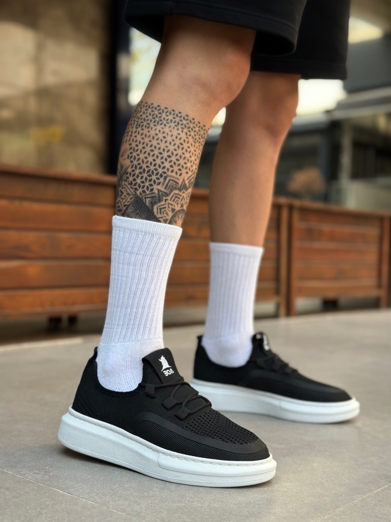 MirgeShoes Siyah Erkek Tarz Spor Ayakkabı Özel Örgü Triko Kalın BYZ Taban MRG010602693