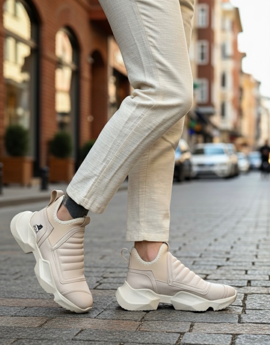 MirgeShoes Krem Bağcıksız Erkek Spor Yarım Bilek Bot Rahat Yüksek KRM Taban MRG010602719