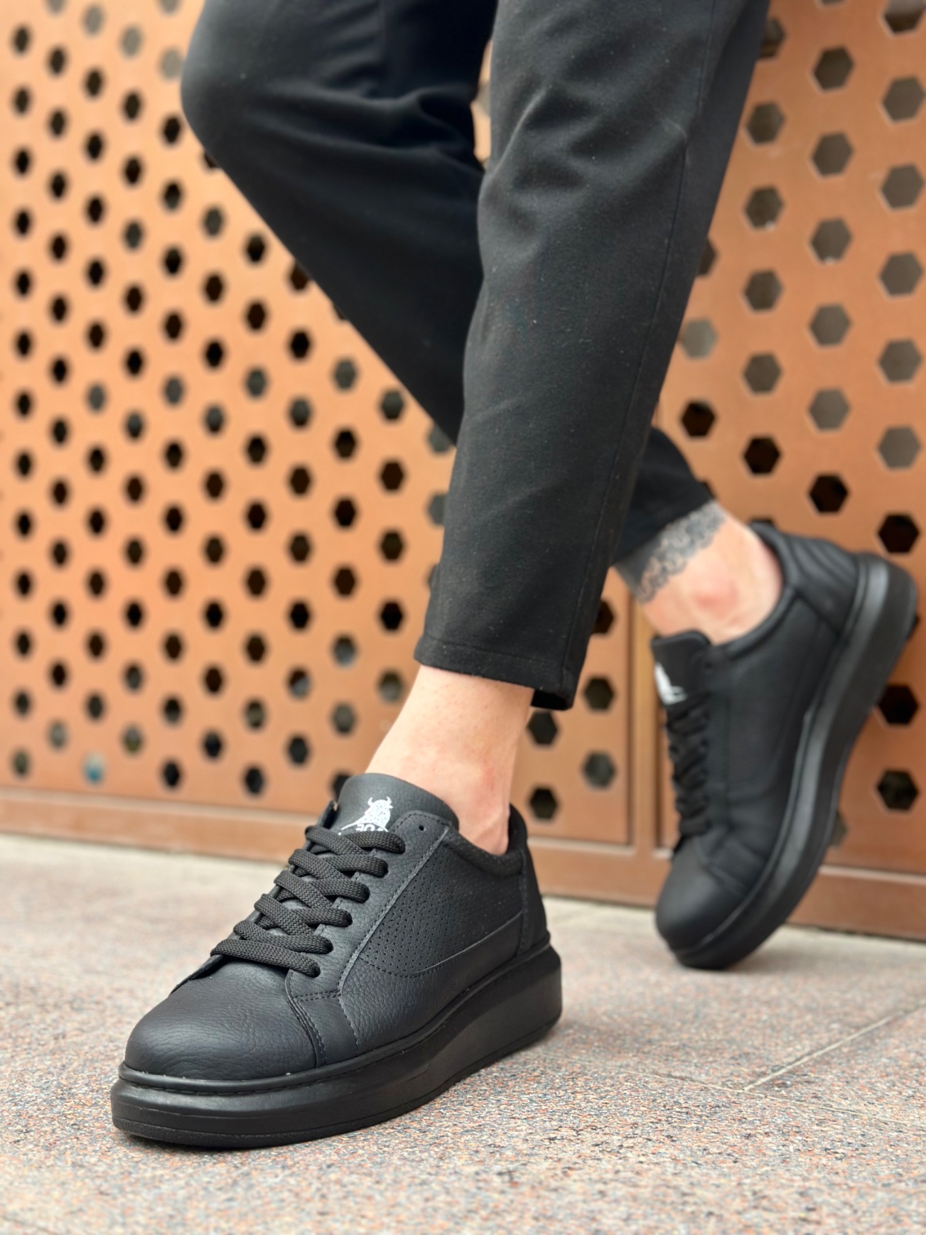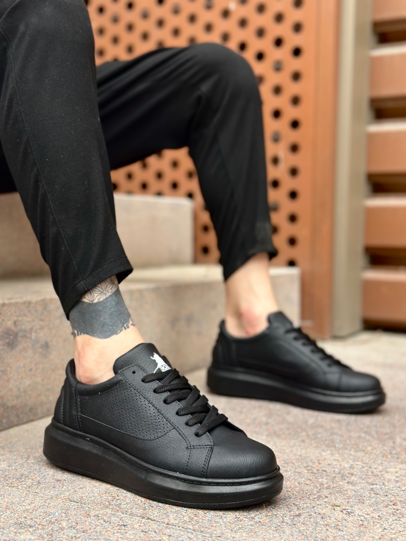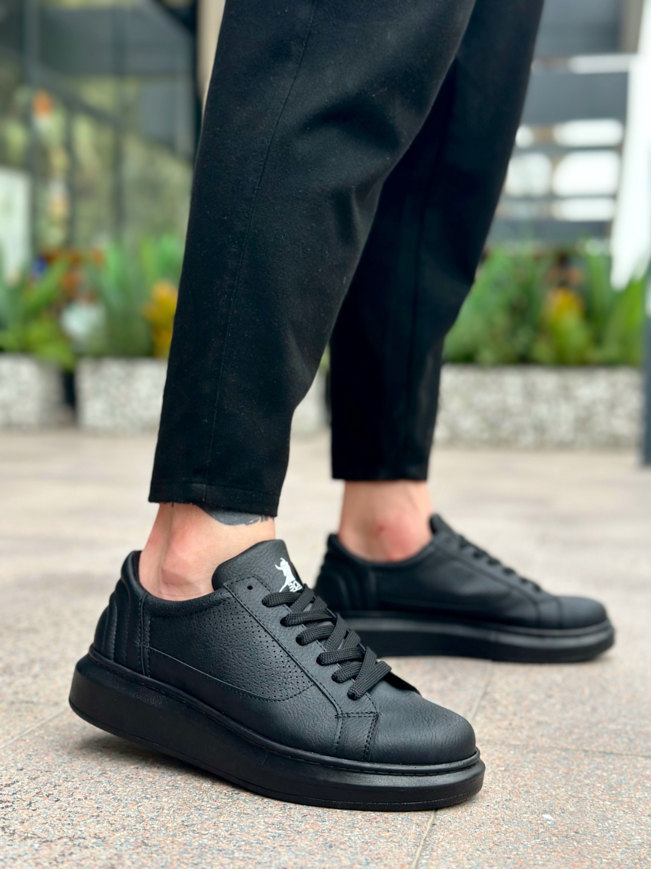 MirgeShoes Siyah Bağcıklı Erkek Spor Ayakkabı Kalın Yüksek SYH Taban MRG010602741