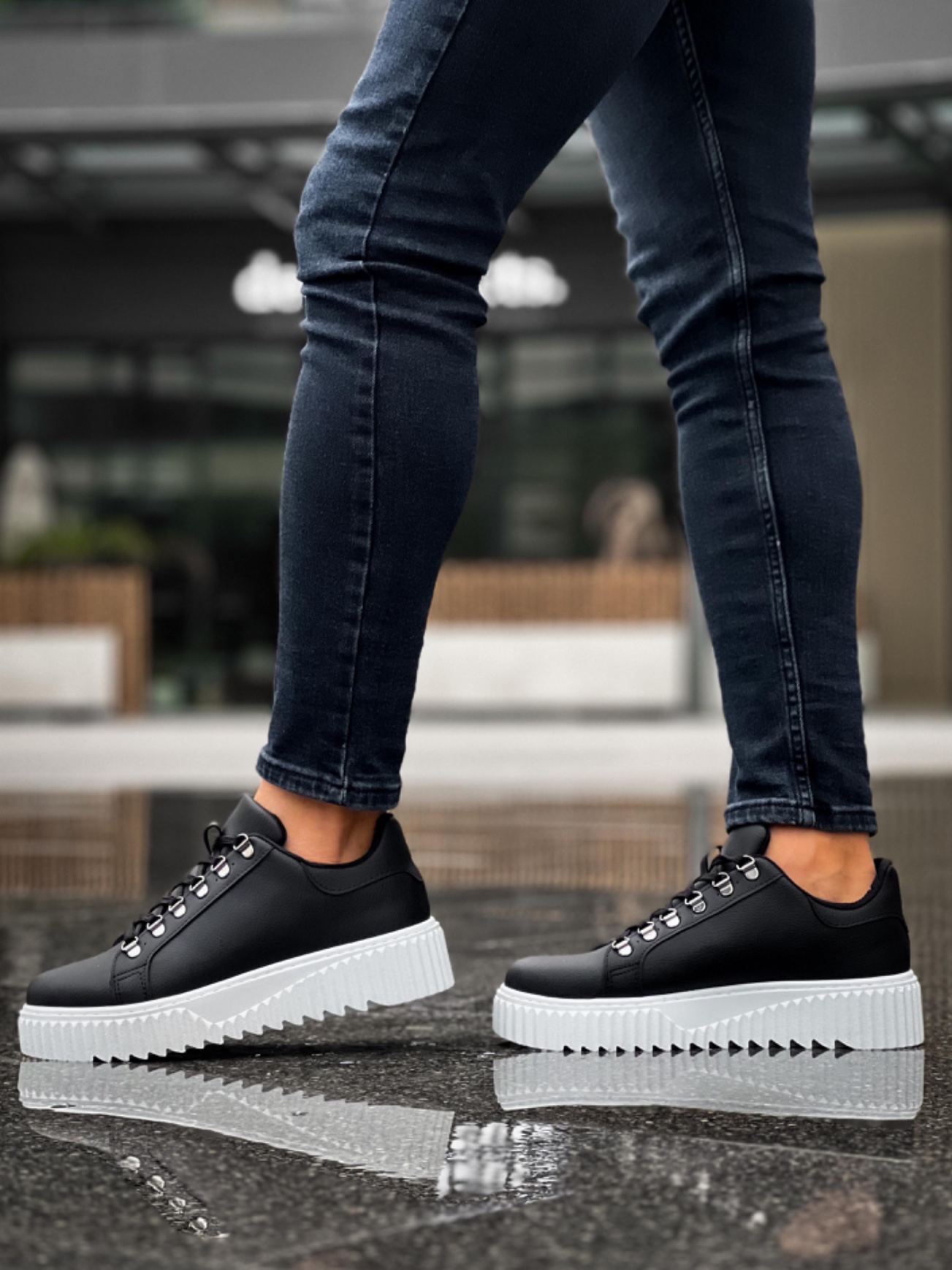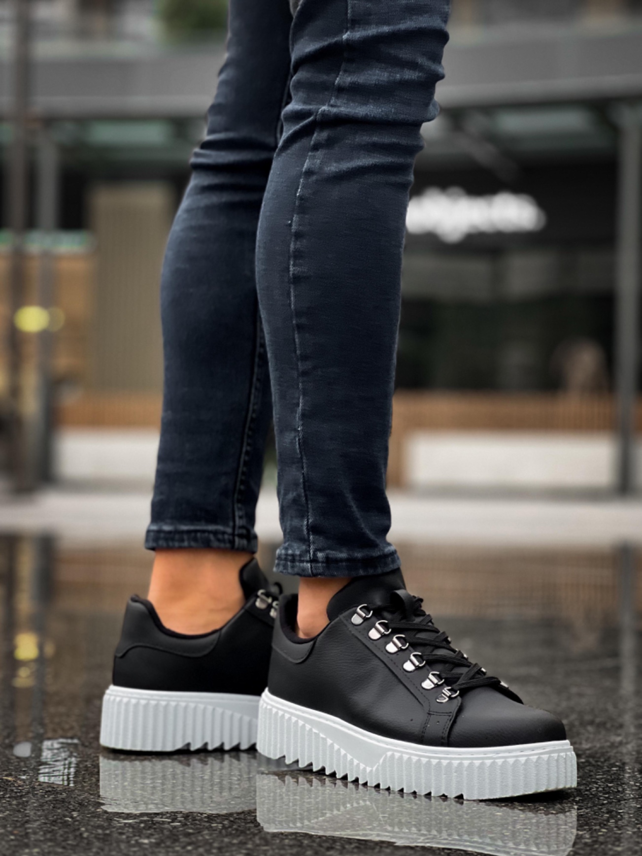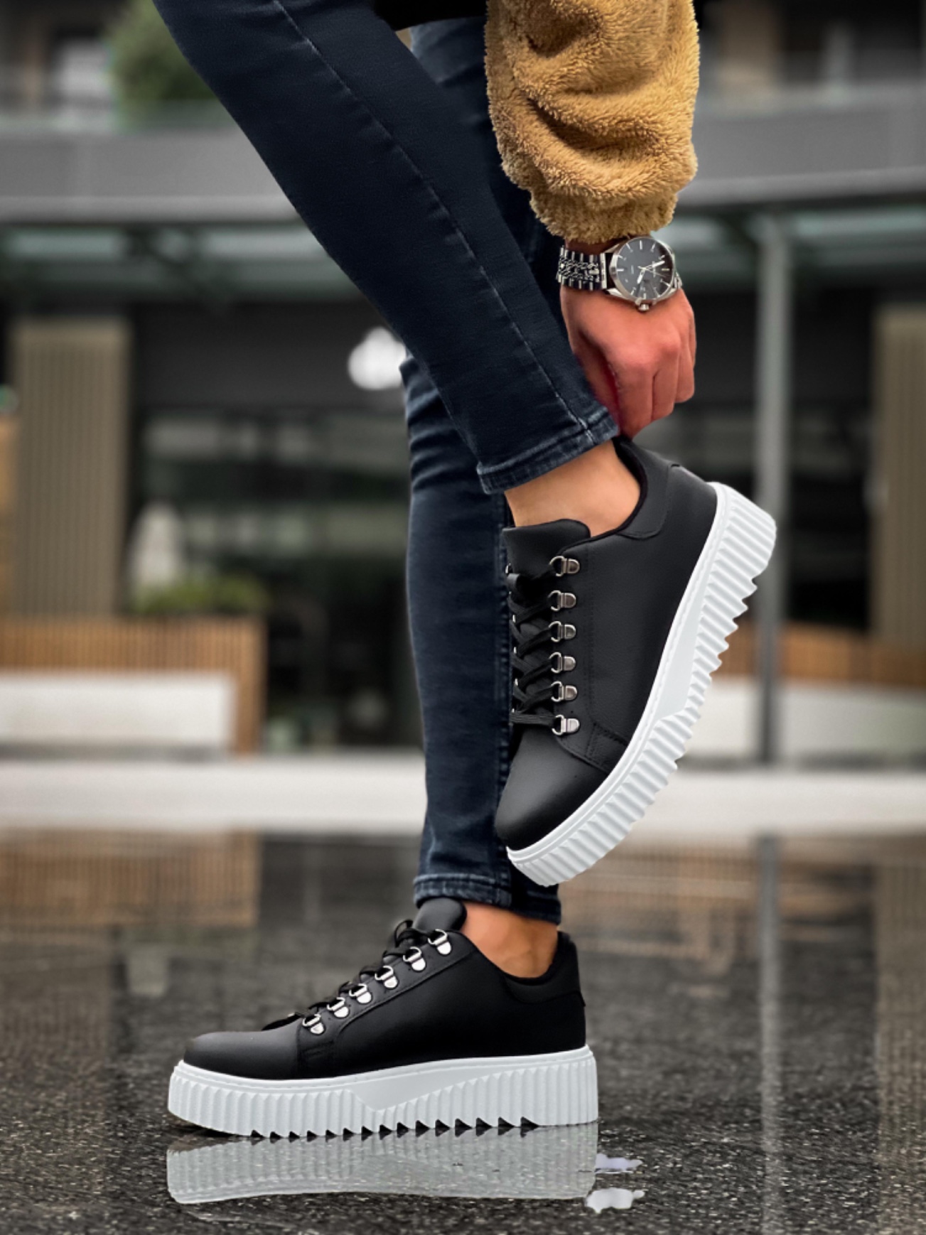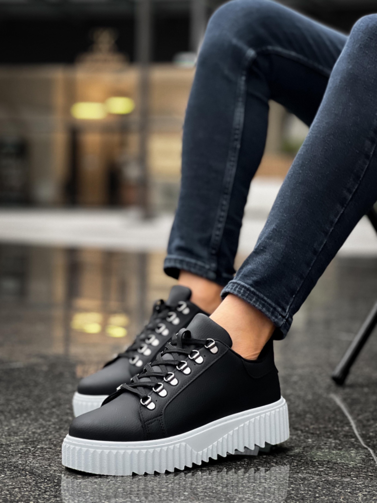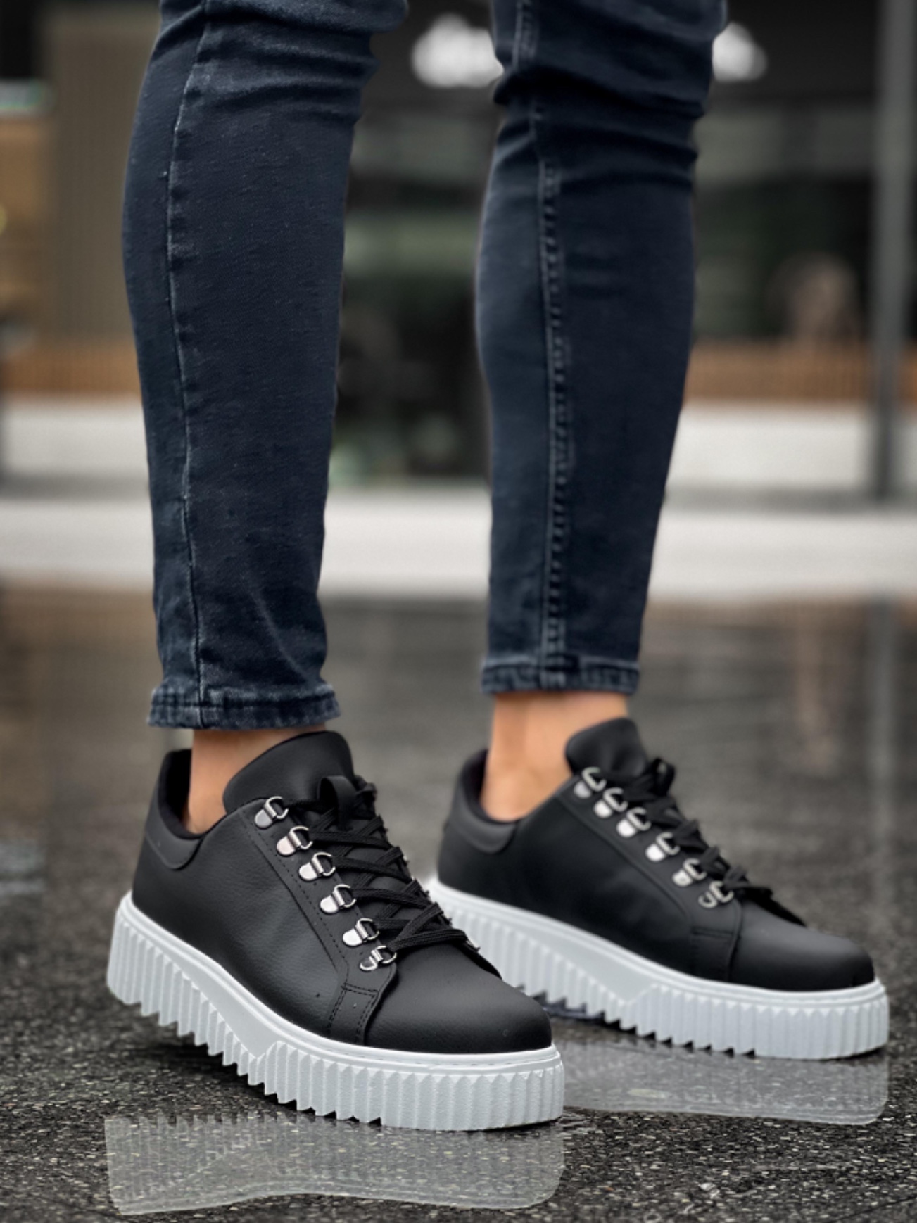• MirgeShoes Siyah Çengel Bağcıklı Erkek Günlük Ayakkabı Yüksek Kalın BYZ Taban MRG010602823