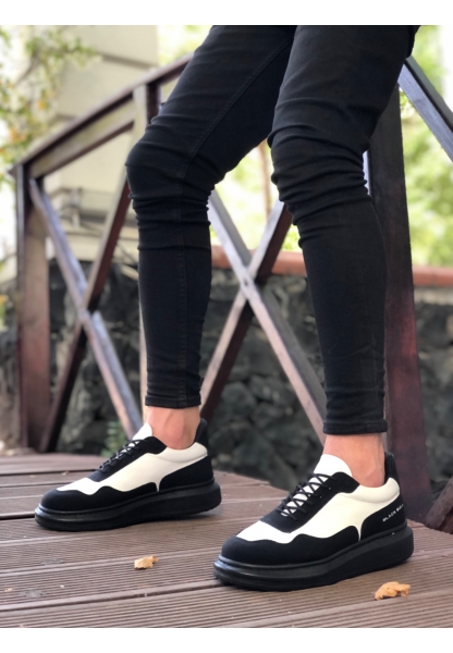 MirgeShoes Siyah Çengel Bağcıklı Erkek Günlük Ayakkabı Yüksek Kalın SYH Taban MRG010602823