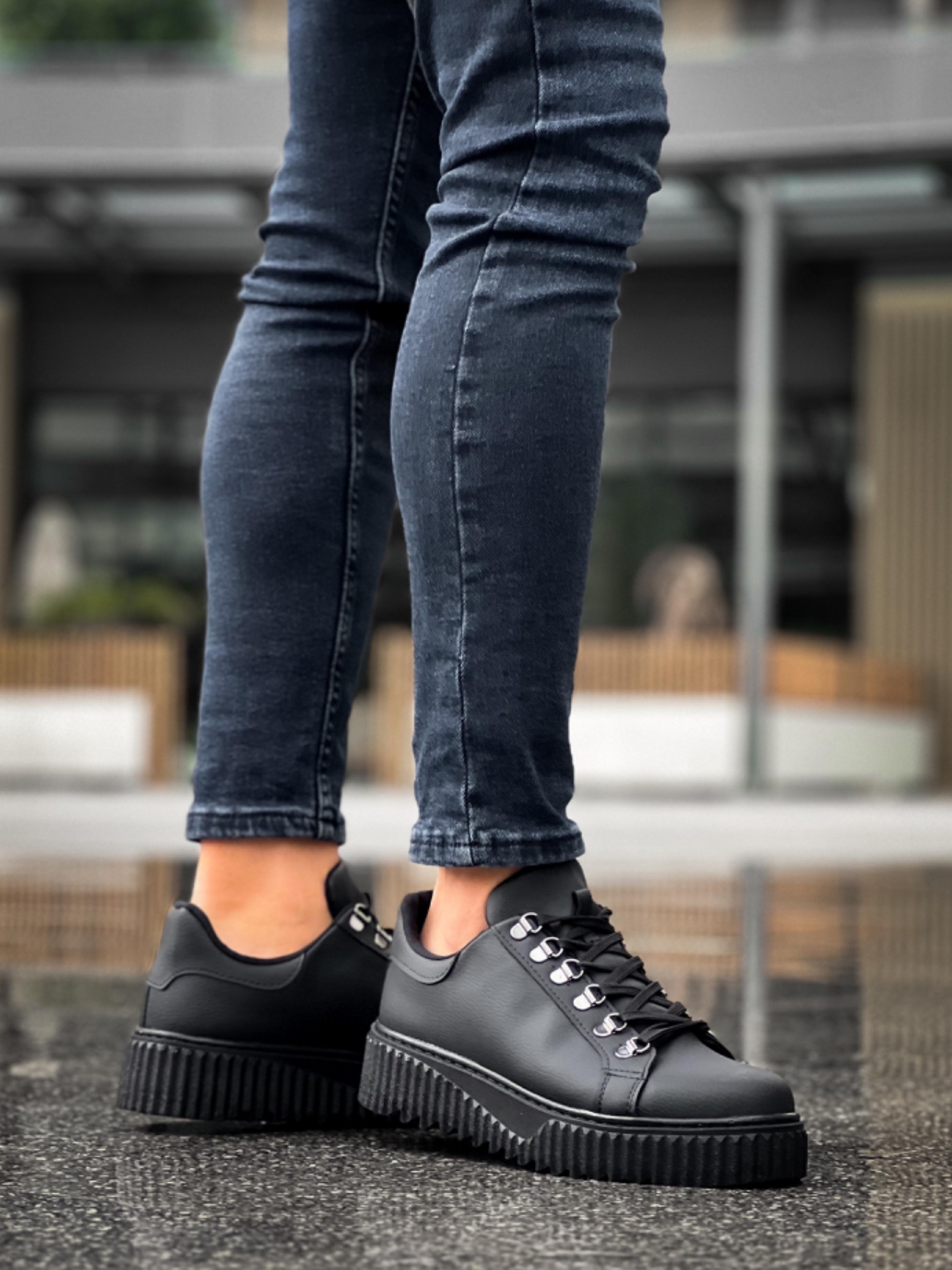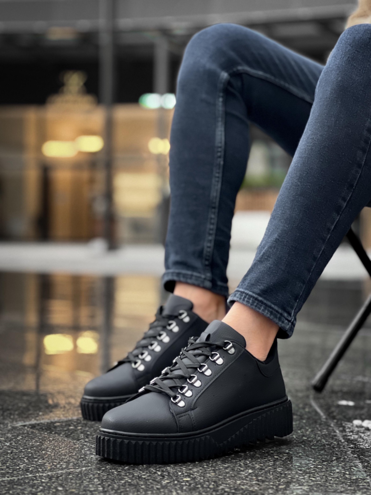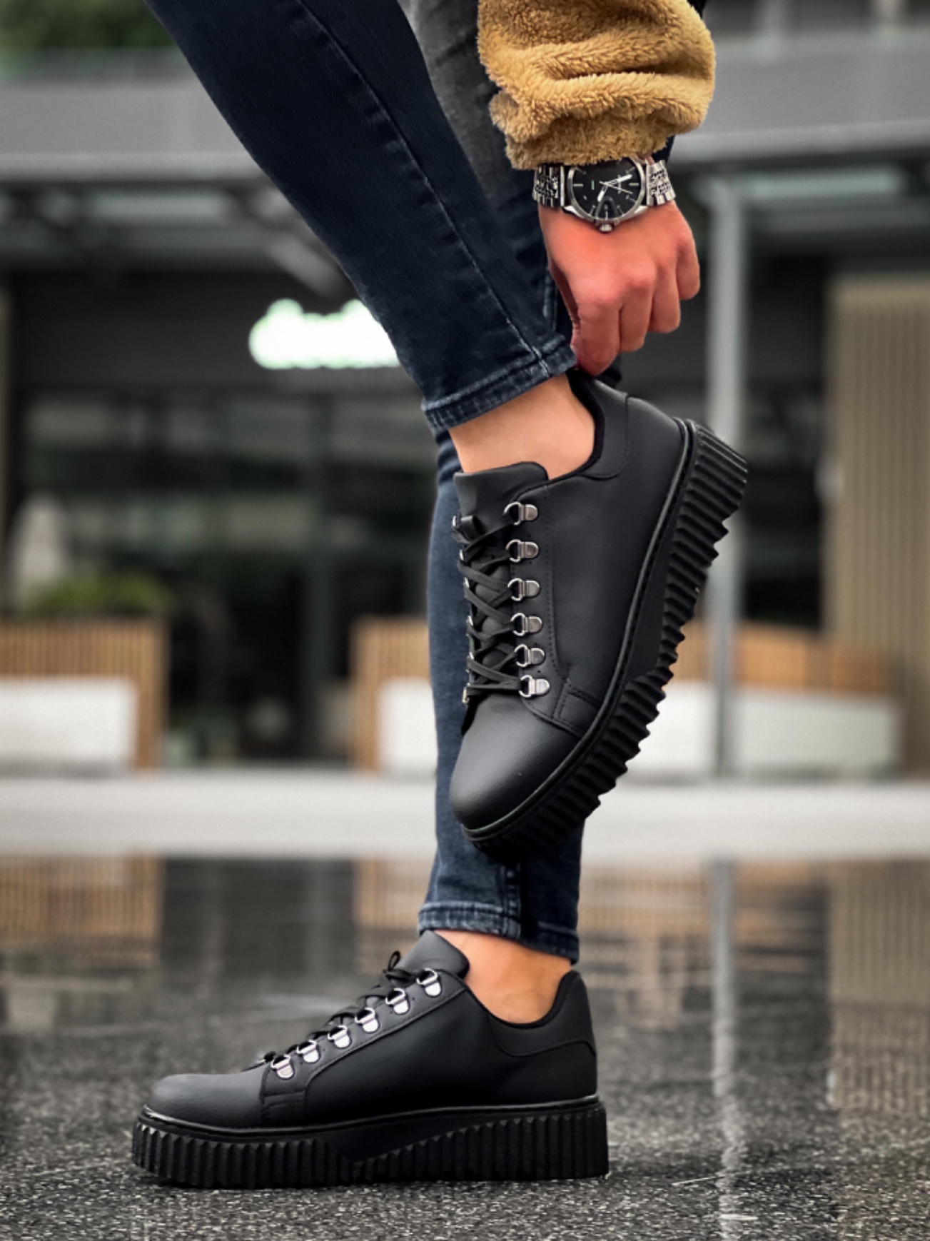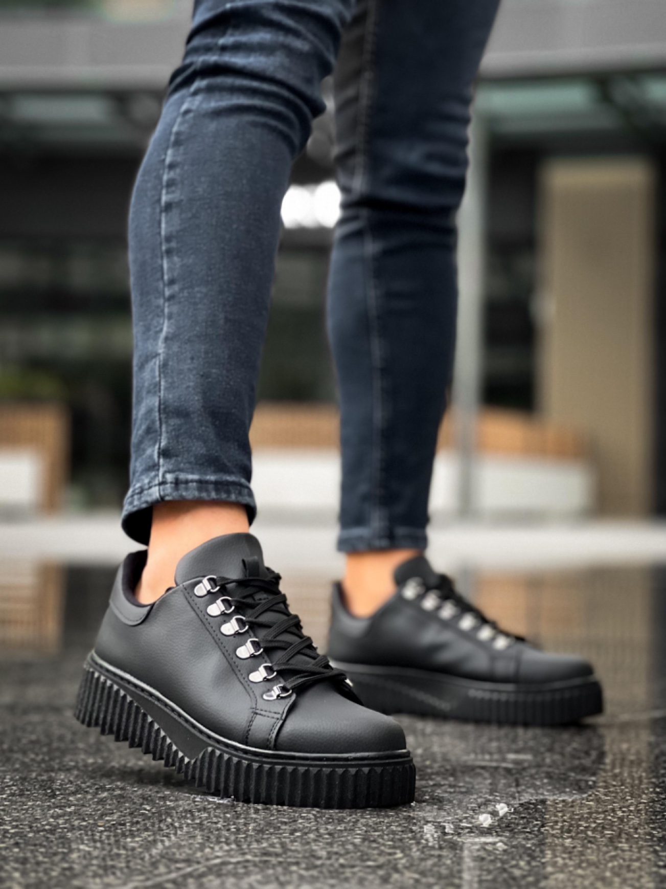 • MirgeShoes Siyah Çengel Bağcıklı Erkek Günlük Ayakkabı Yüksek Kalın SYH Taban MRG010602823