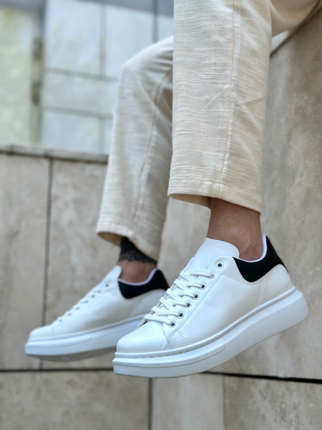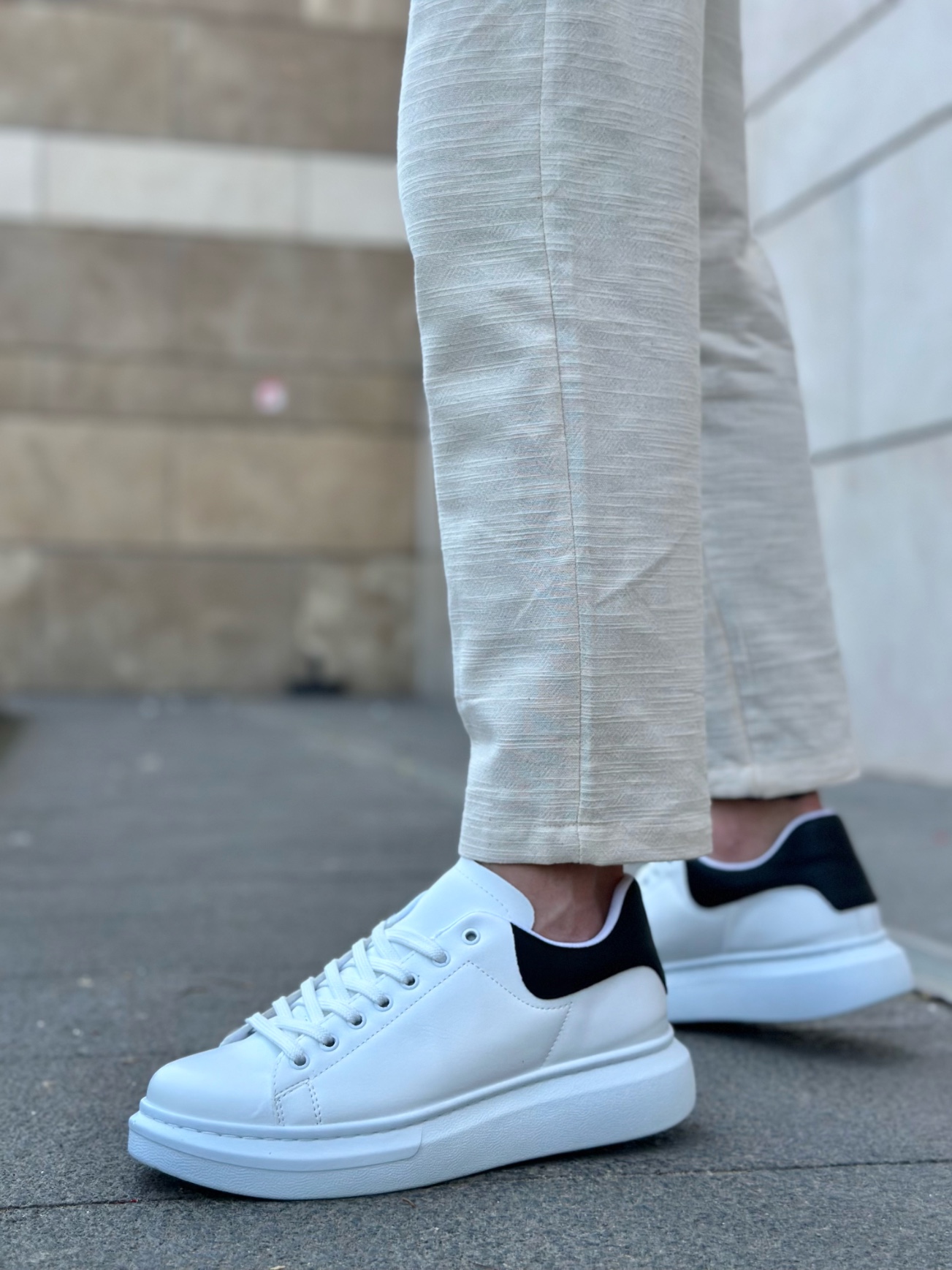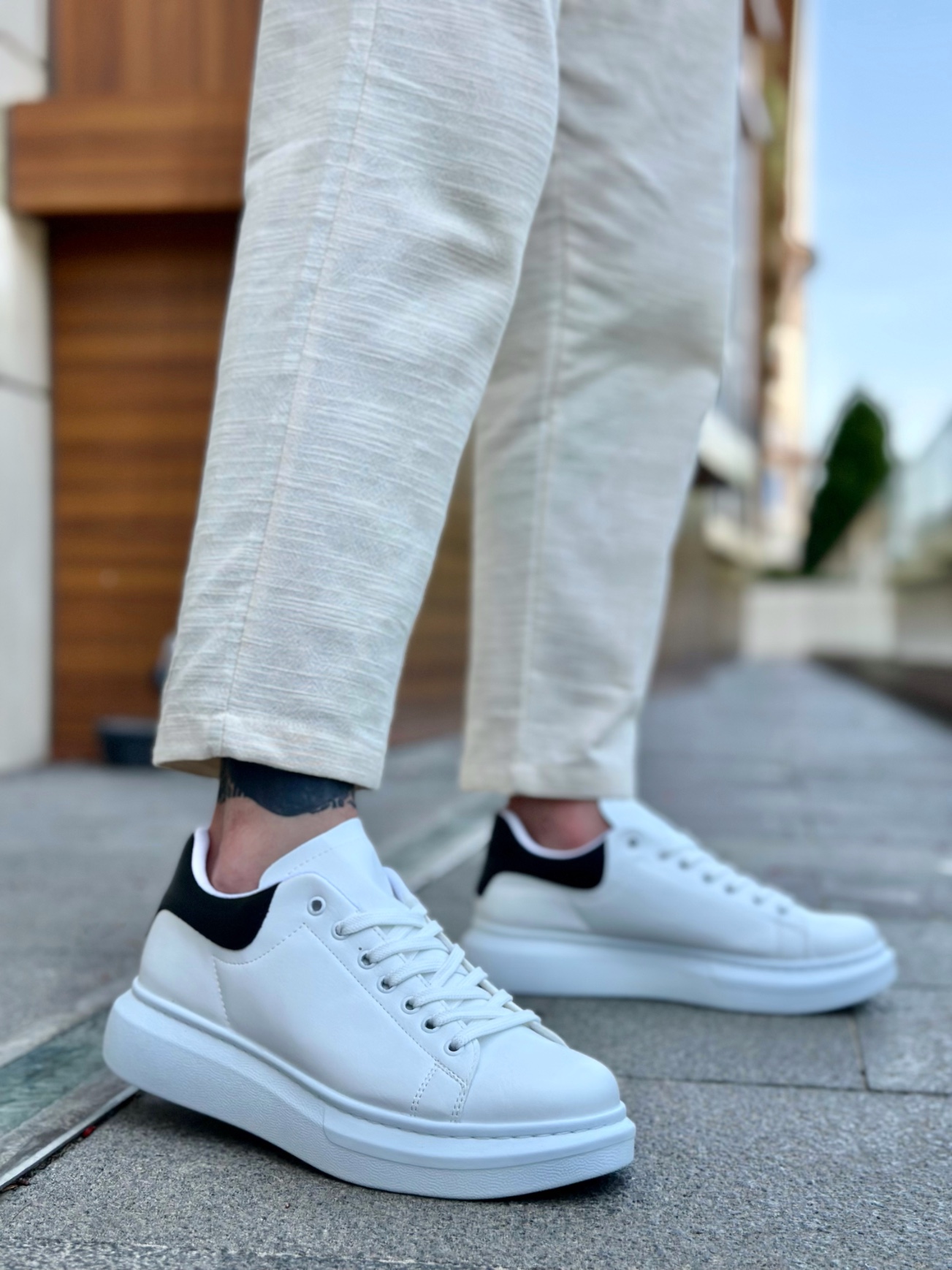 MirgeShoes Beyaz Bağcıklı Erkek Spor Ayakkabı Siyah Desenli Kalın Yüksek BYZ Taban MRG010602865