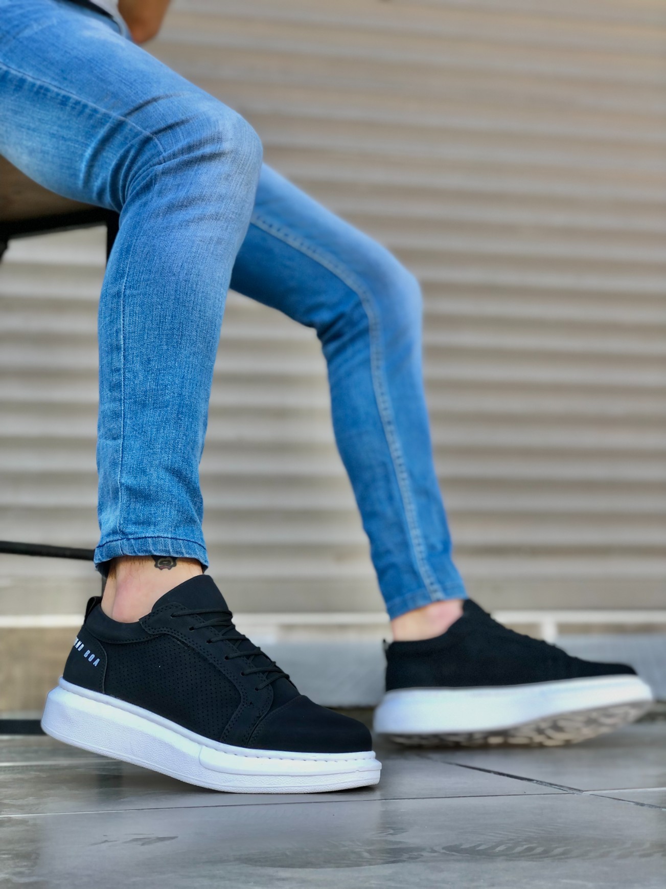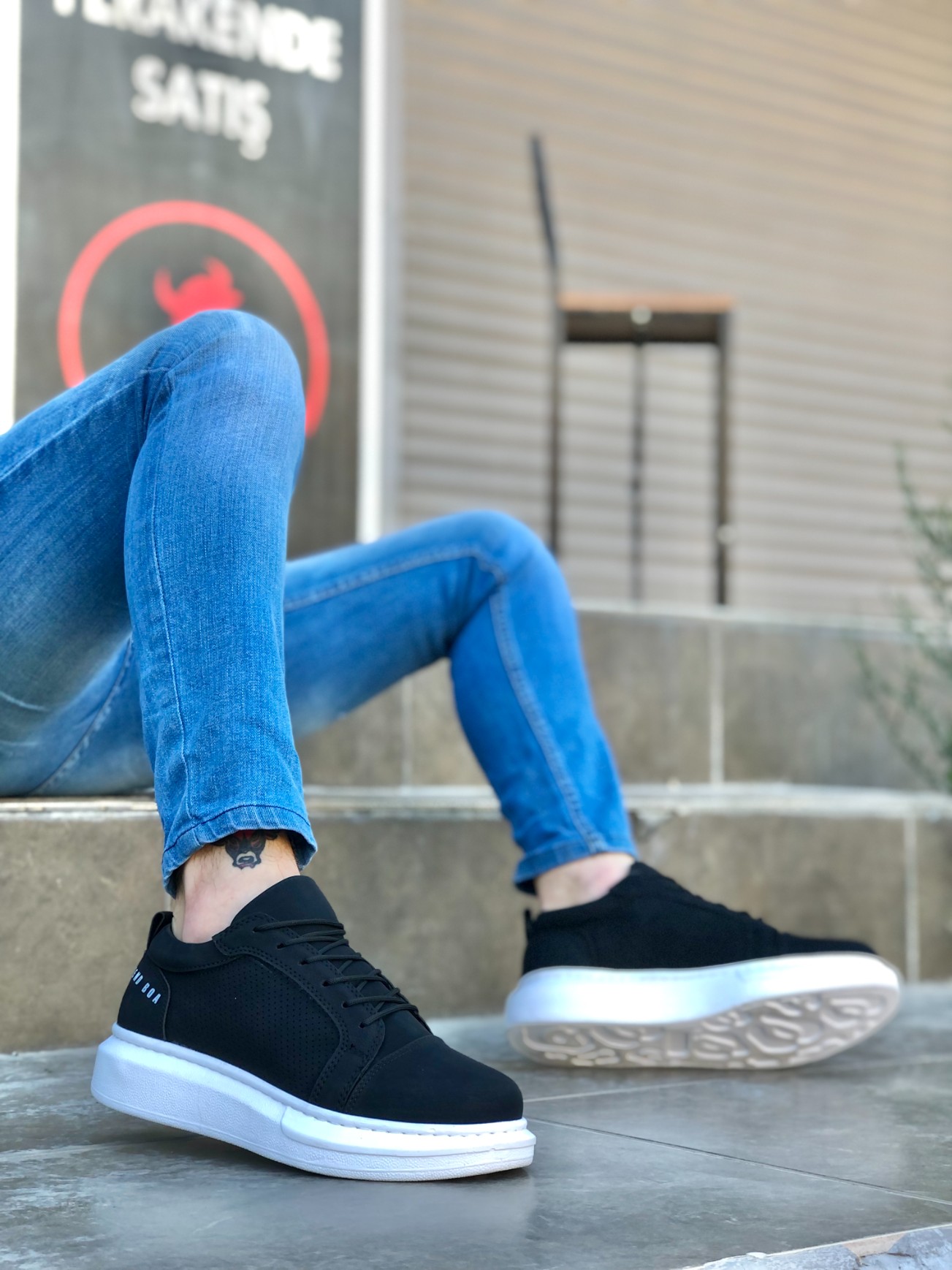 MirgeShoes Siyah Bağcıklı Erkek Spor Ayakkabı Kalın Yüksek BYZ Taban MRG010602866