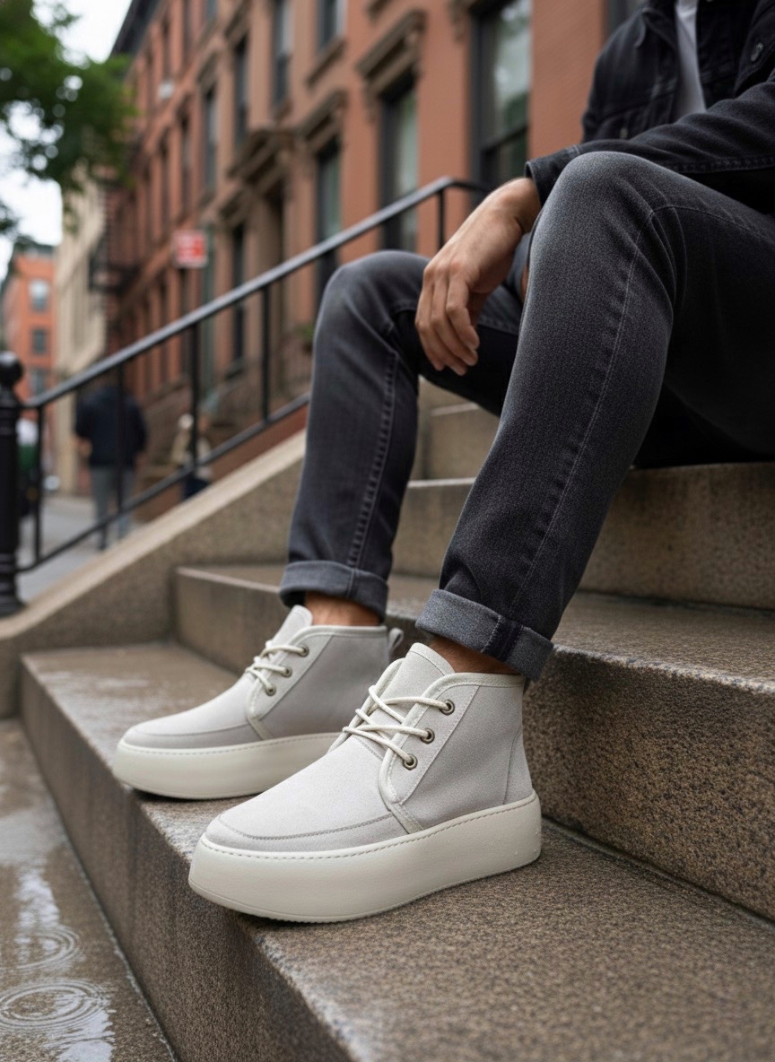 MirgeShoes Krem Bağcıklı Erkek Tarz Spor Bot İçi Kürklü Süet Kalın KRM Taban MRG010602868