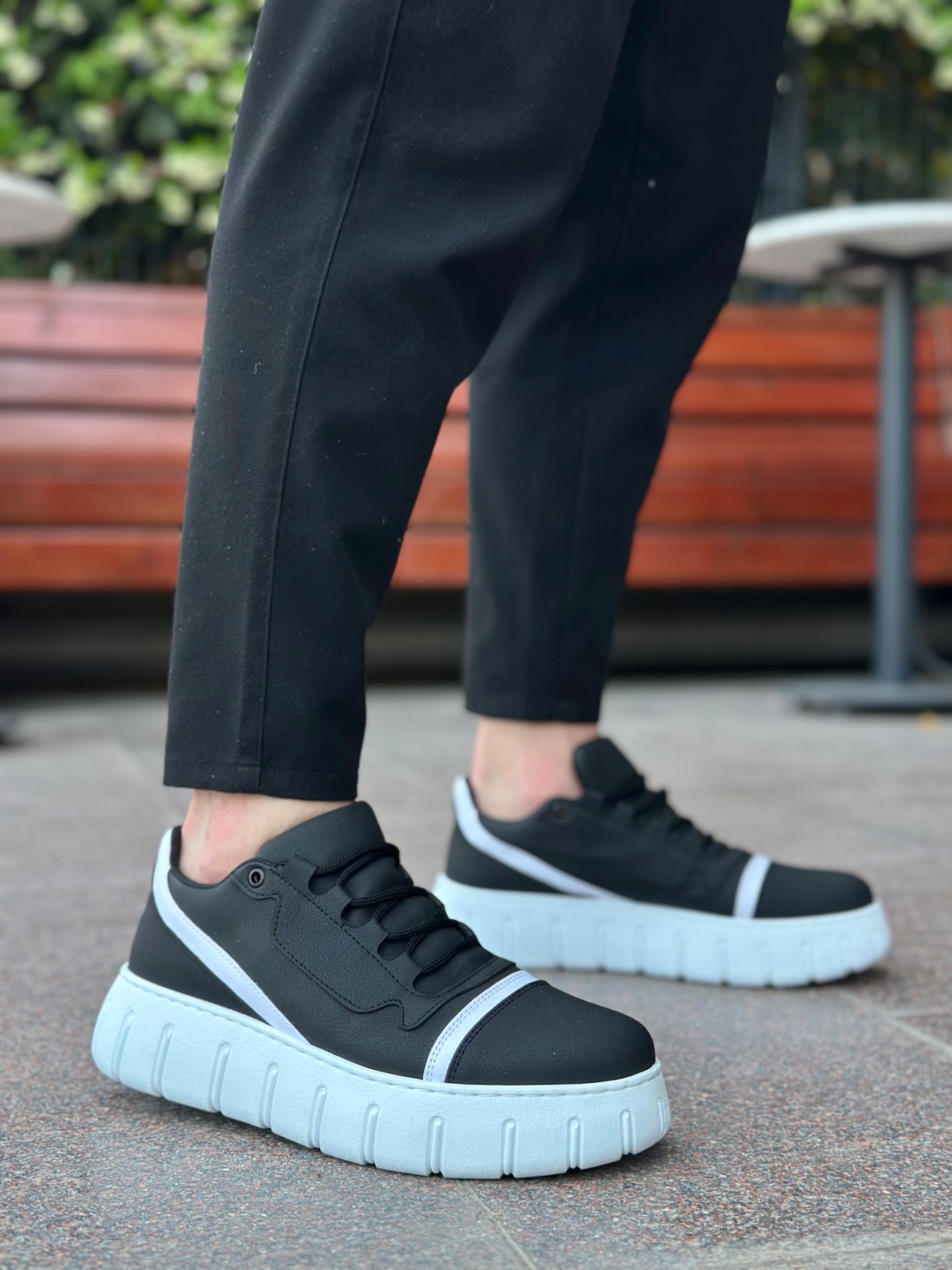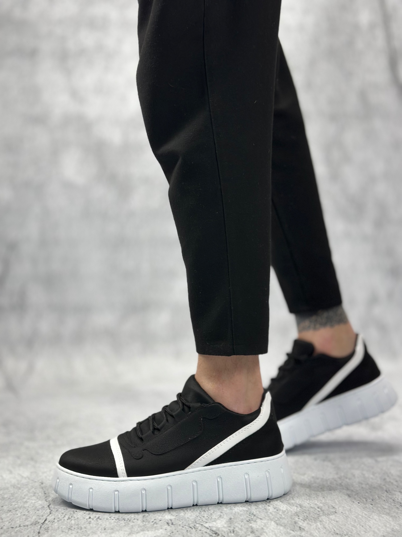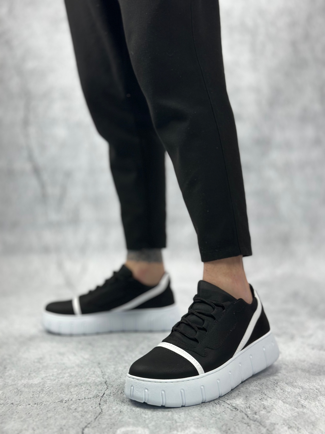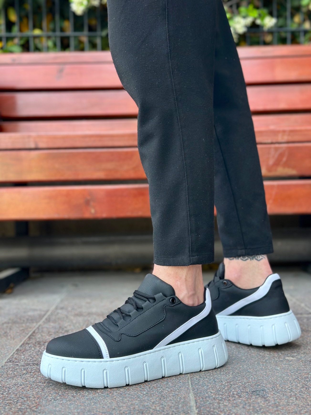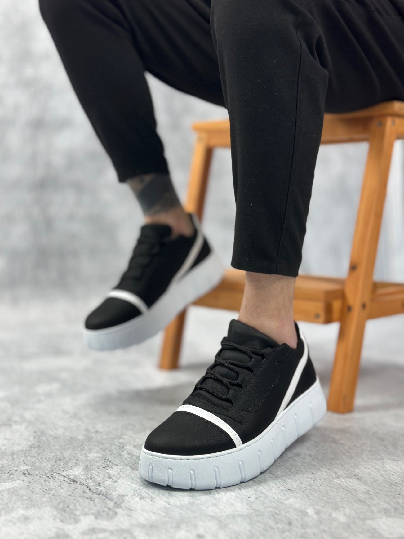 MirgeShoes Siyah Bağcıklı Erkek Günlük Ayakkabı Kalın Yüksek BYZ Taban MRG010602984