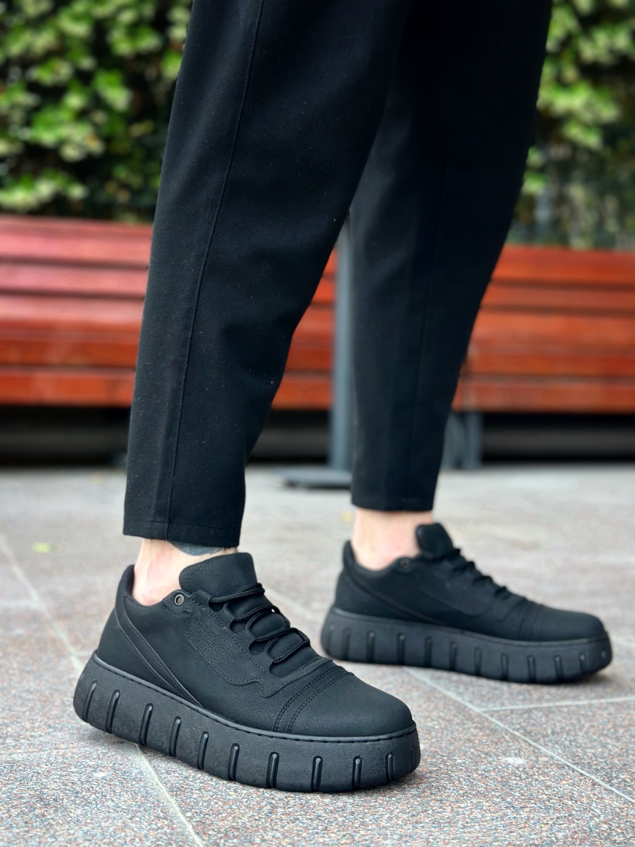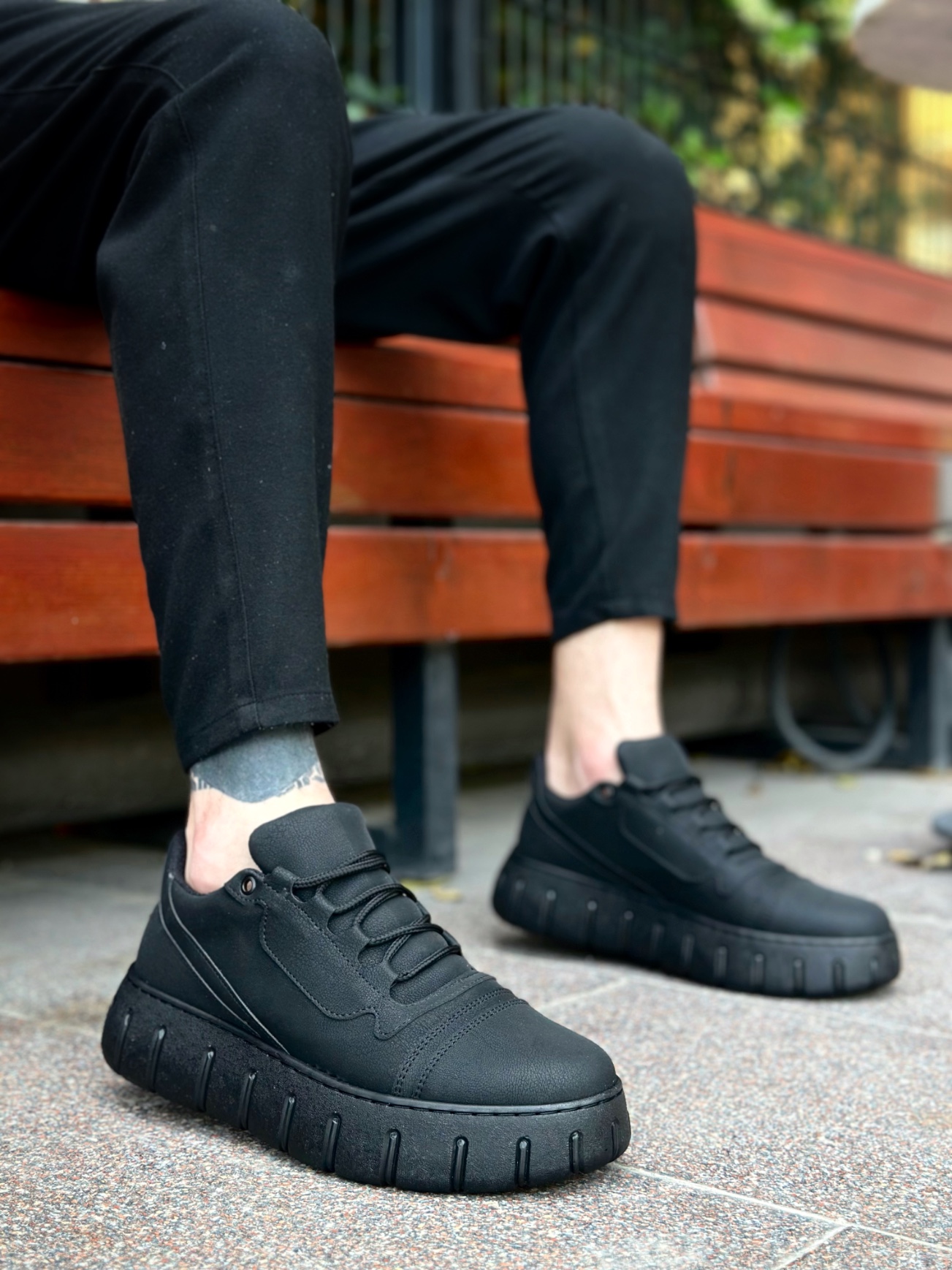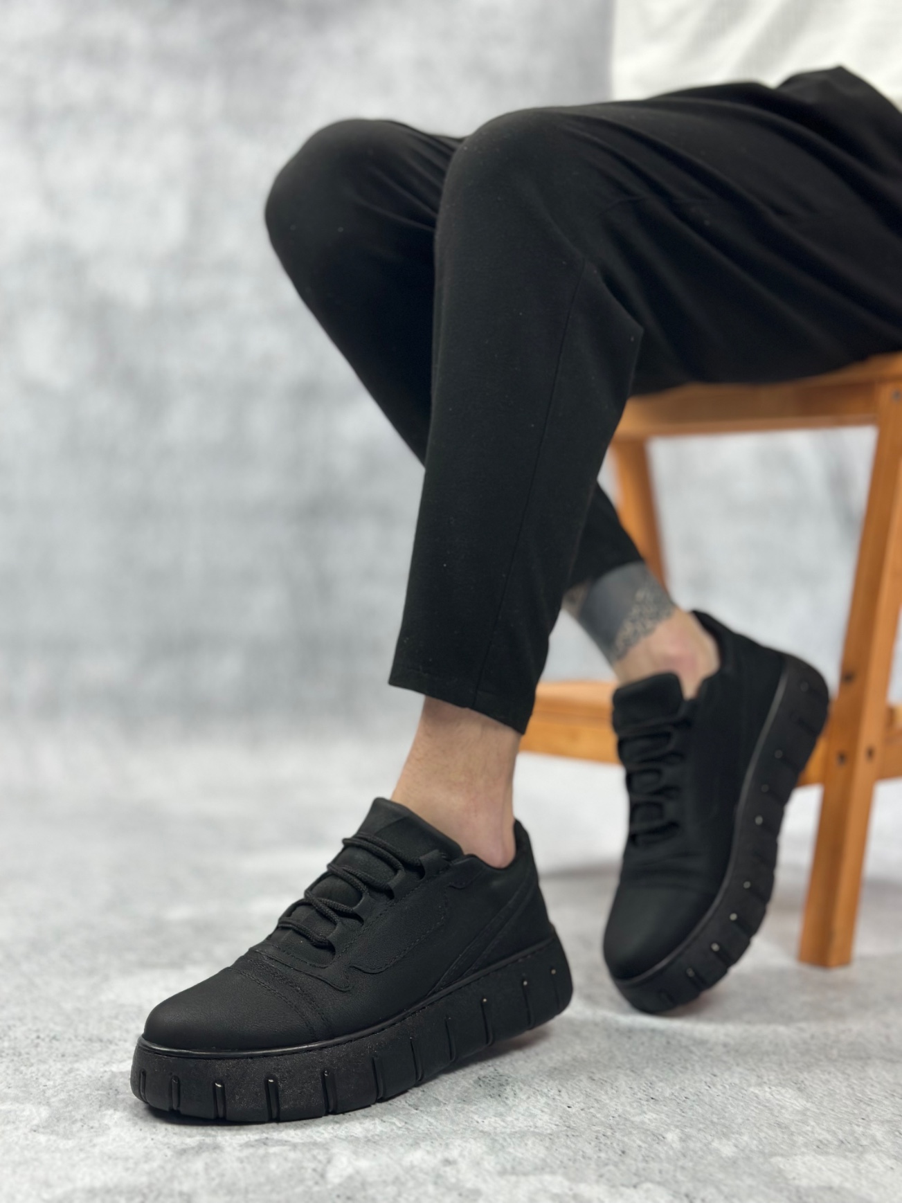 MirgeShoes Siyah Bağcıklı Erkek Günlük Ayakkabı Kalın Yüksek SYH Taban MRG010602984