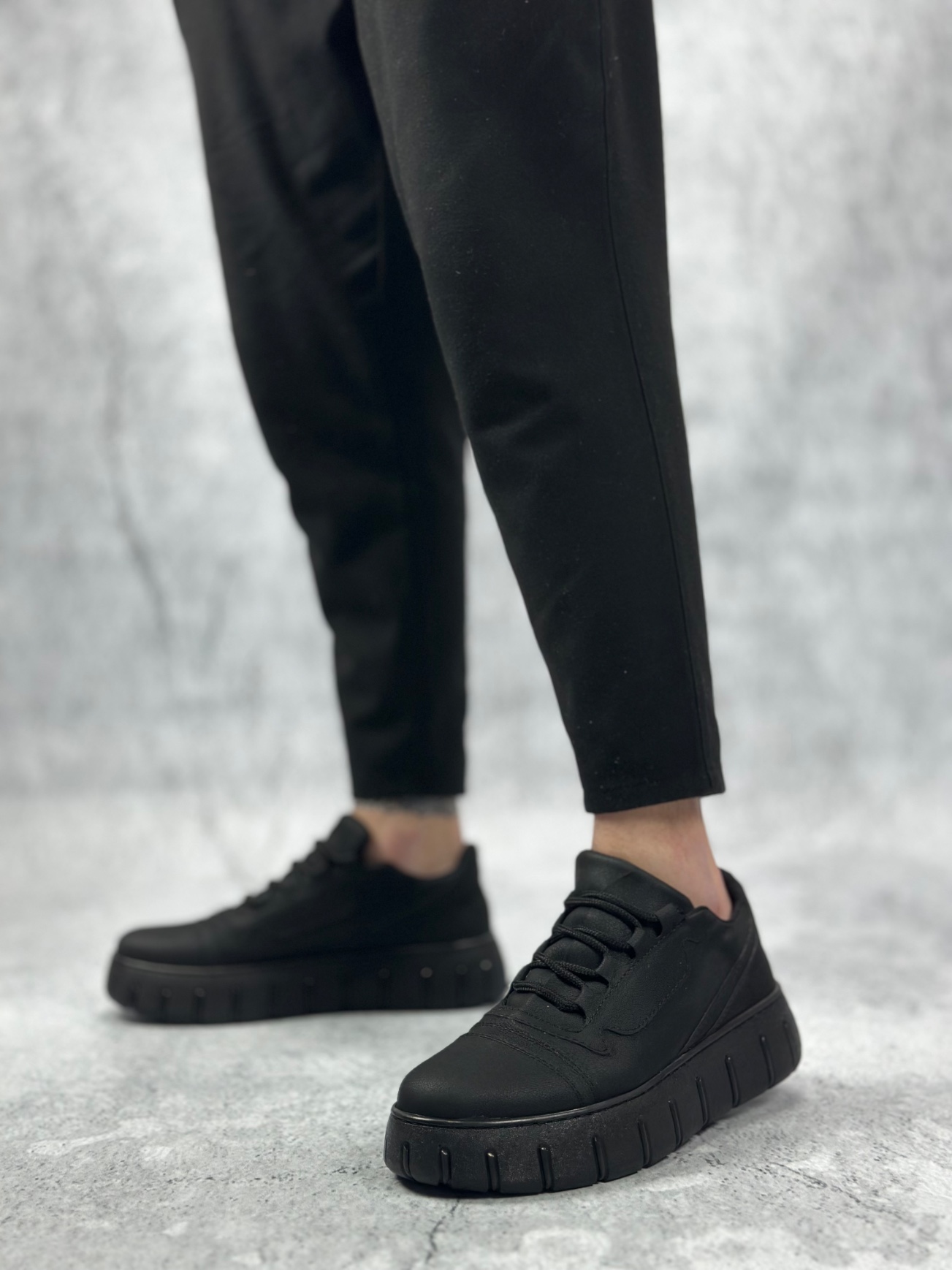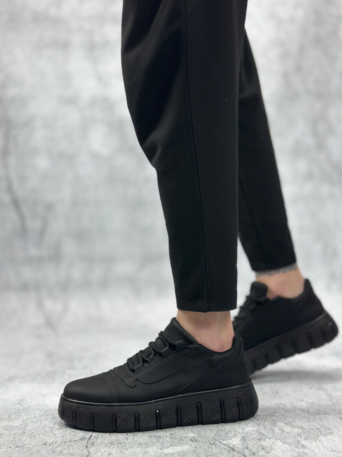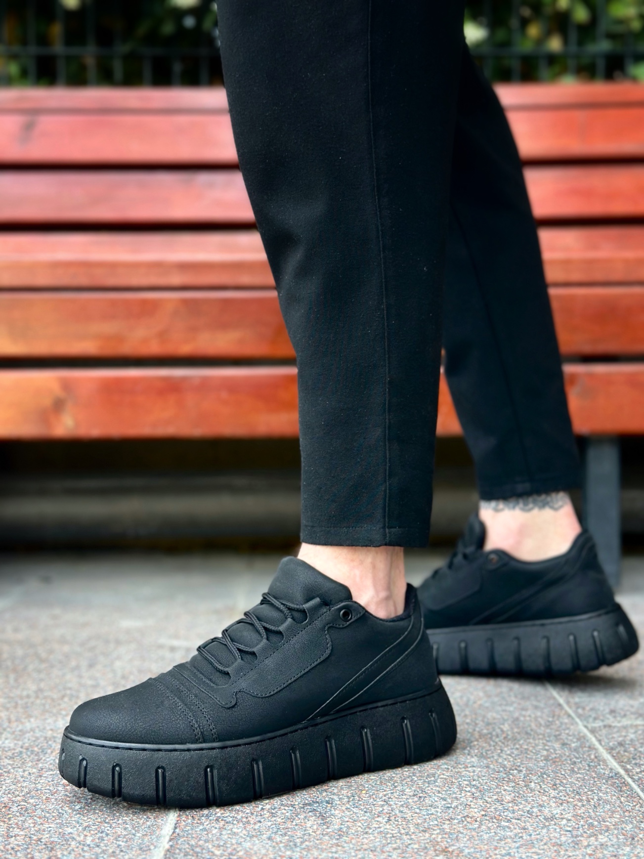 MirgeShoes Siyah Bağcıklı Erkek Günlük Ayakkabı Kalın Yüksek SYH Taban MRG010602984