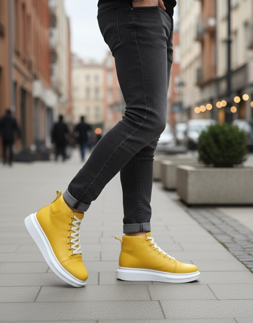 • MirgeShoes Sarı Bağcıklı Erkek Tarz Spor Bot Günlük Rahat Kalın BYZ Taban MRG010603031