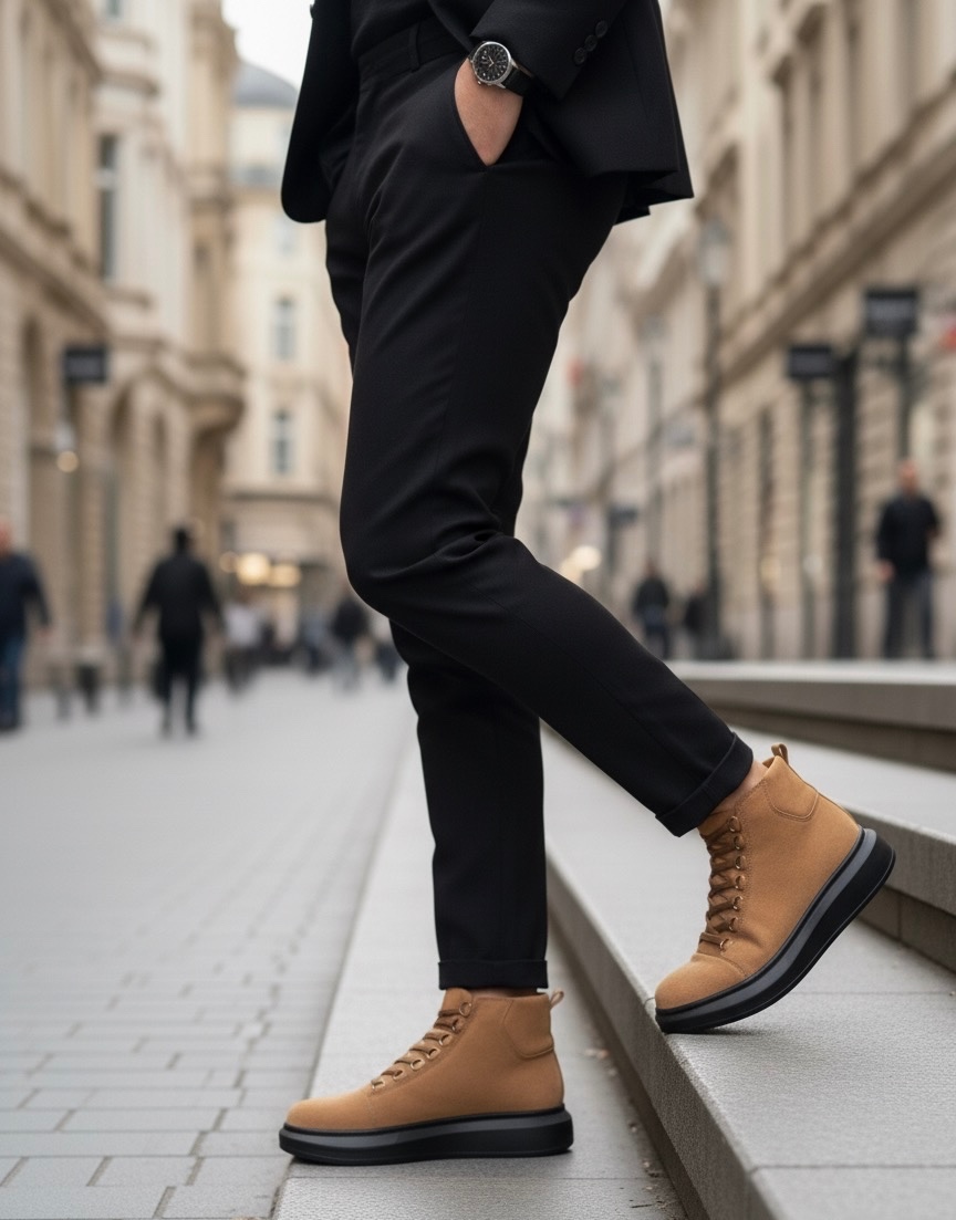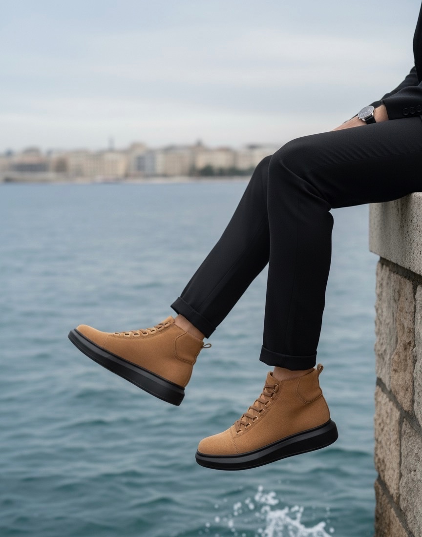 MirgeShoes Taba Bağcıklı Erkek Tarz Spor Bot Süet Günlük Rahat Kalın SYH Taban MRG010603031