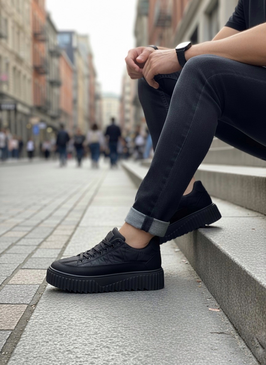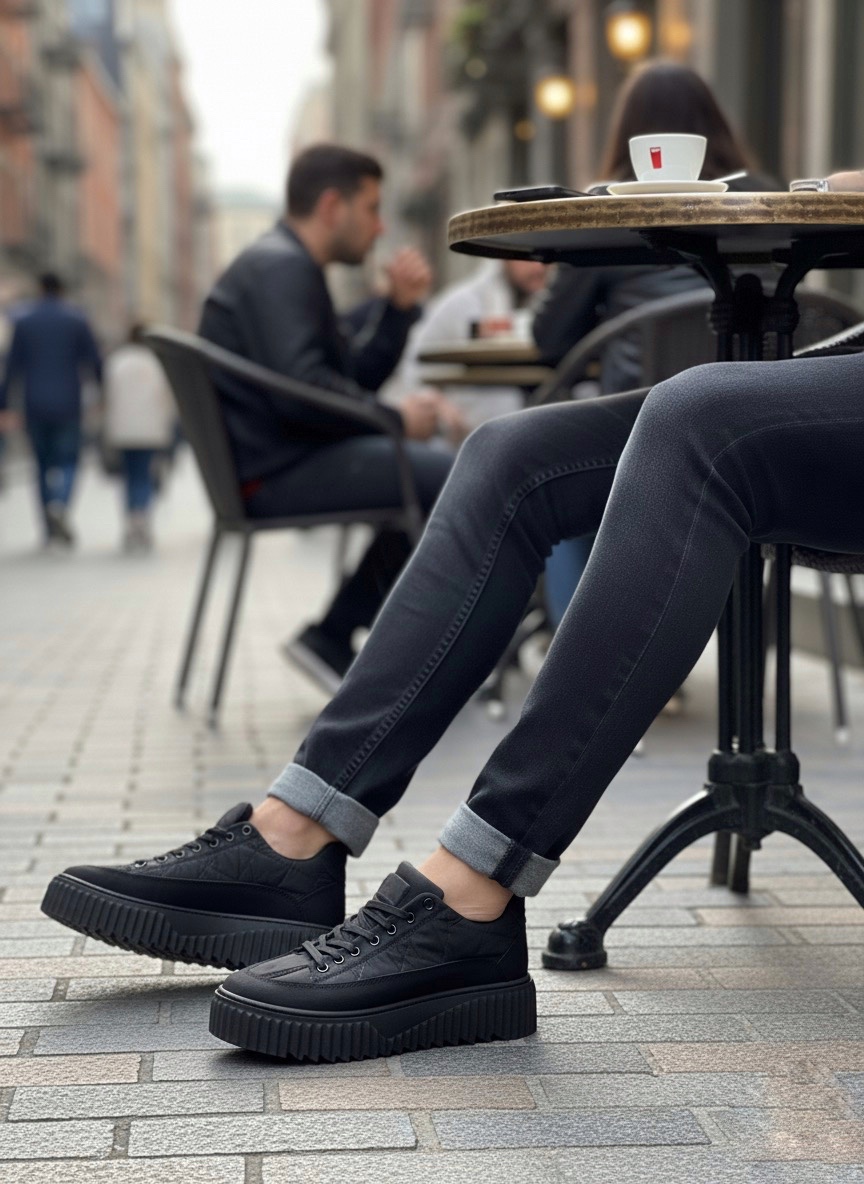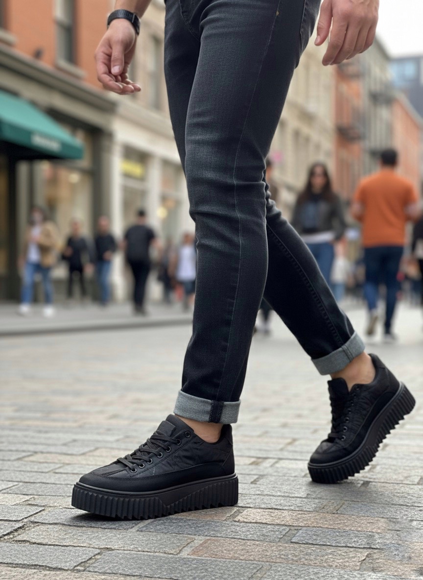 MirgeShoes Siyah Bağcıklı Erkek Casual Ayakkabı Paraşüt Kumaş Tırtıklı Yüksek SYH Taban MRG010603119