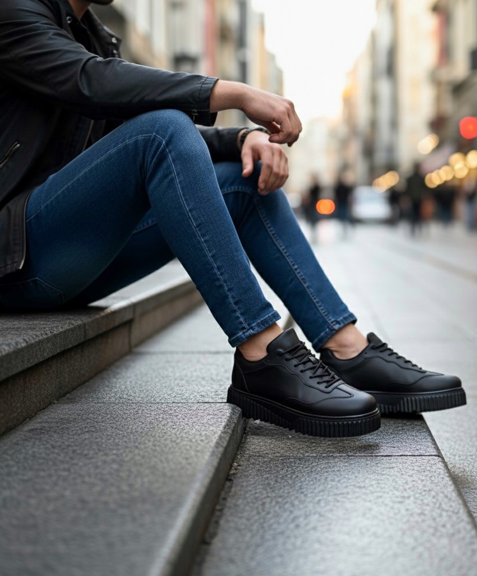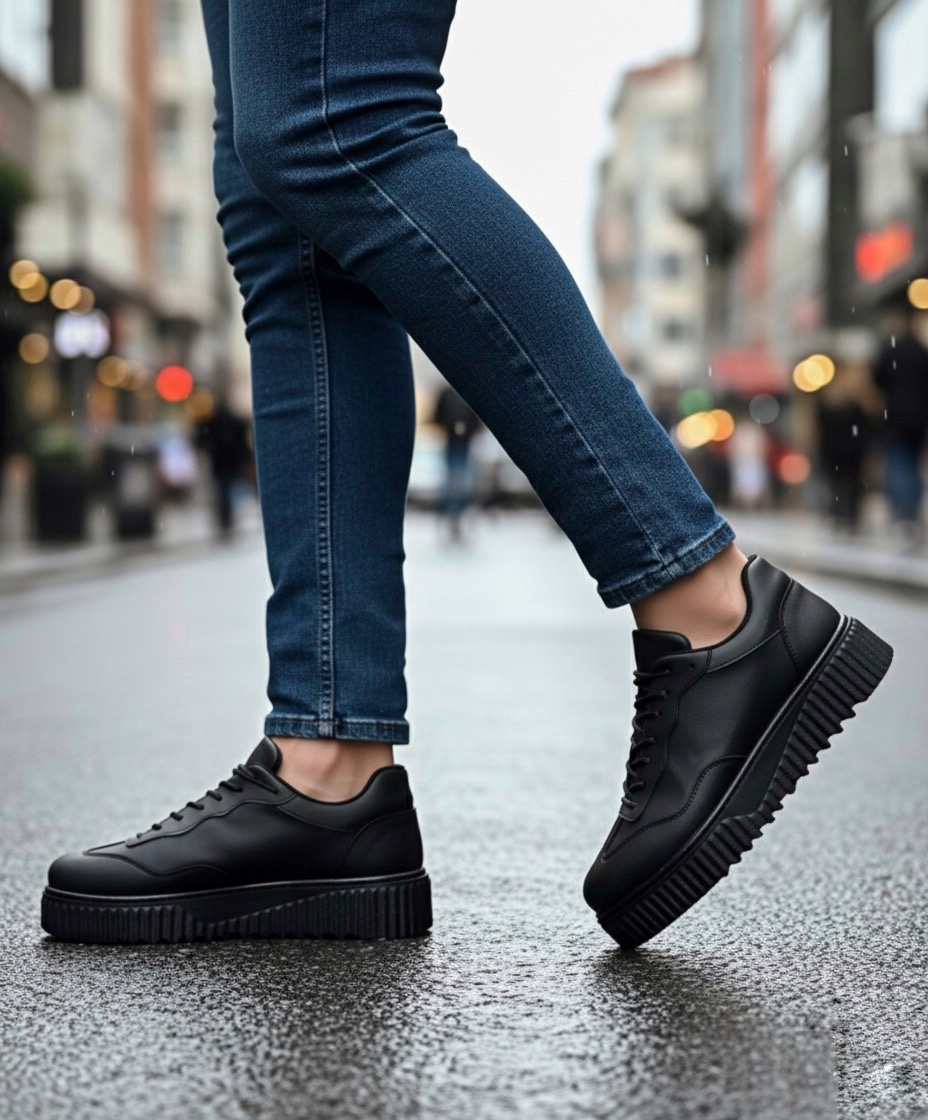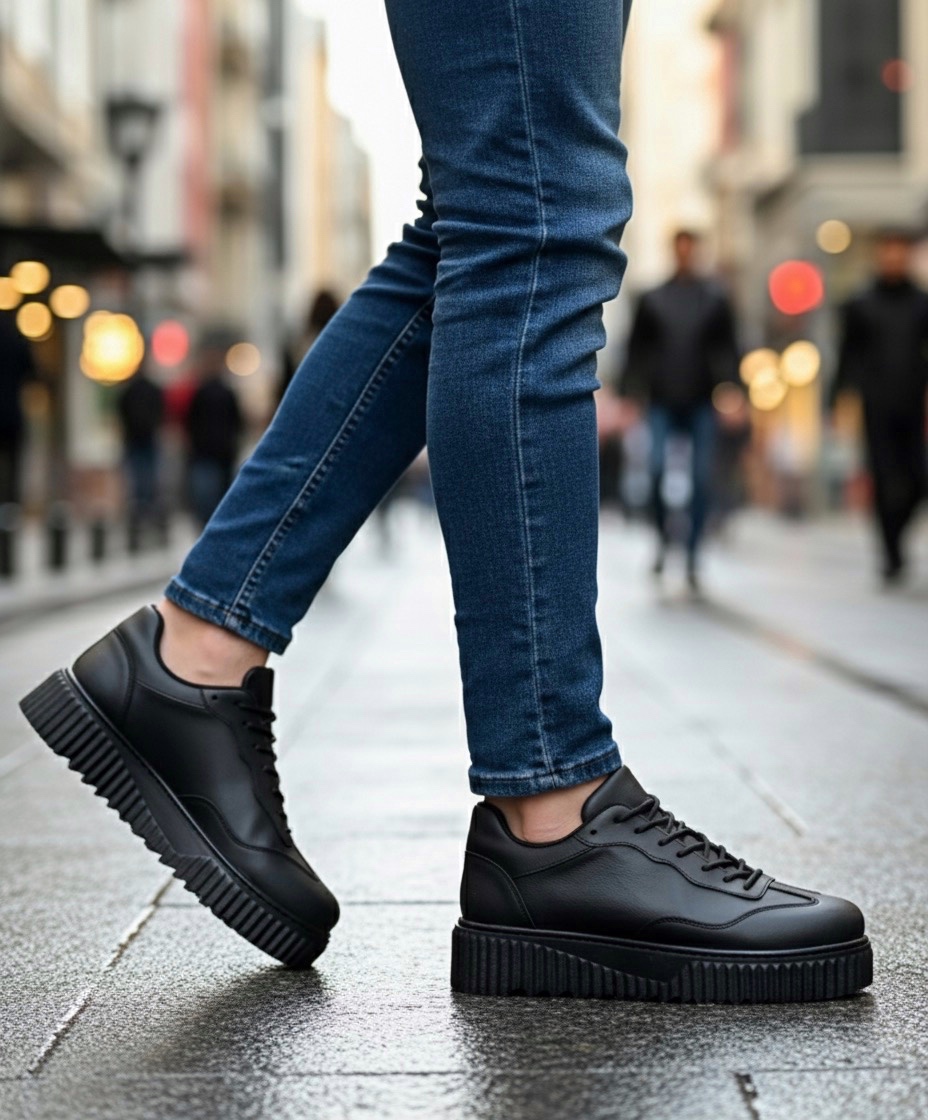 • MirgeShoes Siyah Erkek Günlük Comfort Ayakkabı Tırtıklı Yüksek Kalın SYH Taban MRG010603120