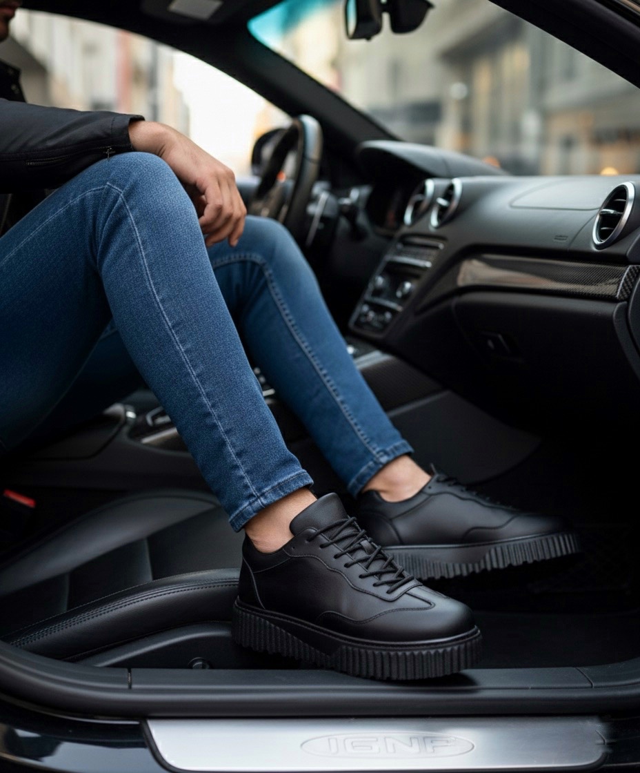 MirgeShoes Siyah Erkek Günlük Comfort Ayakkabı Tırtıklı Yüksek Kalın SYH Taban MRG010603120
