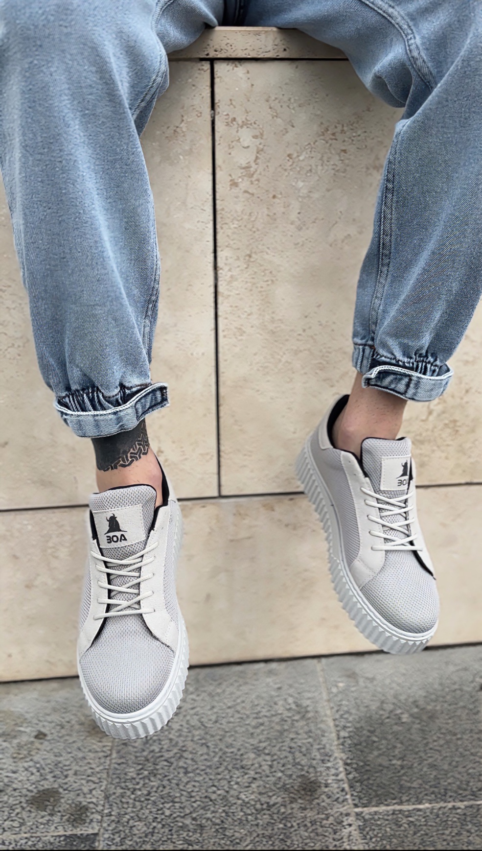 • MirgeShoes Gri Erkek Günlük Spor Ayakkabı Triko Örgü Yüksek Kalın GRİ Taban MRG010603121