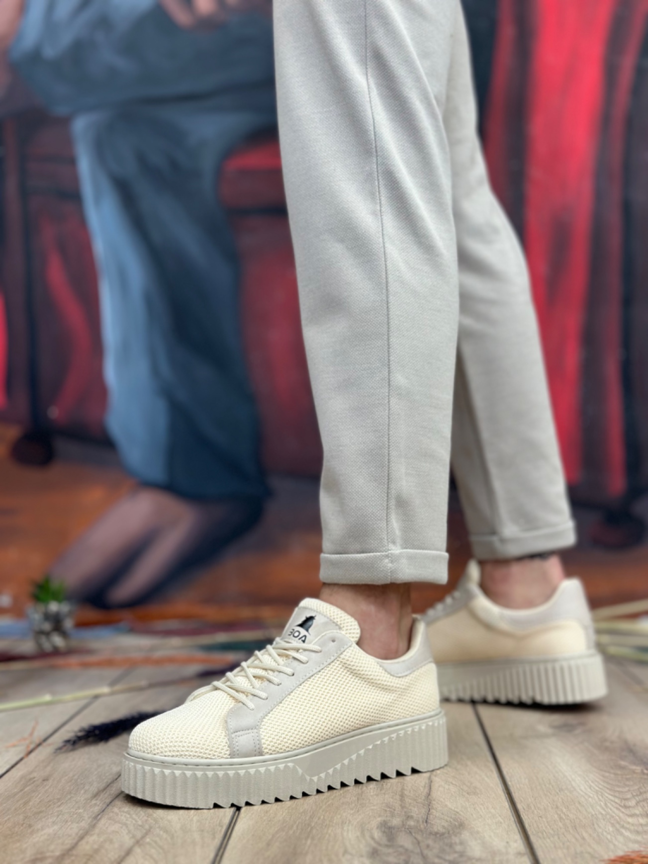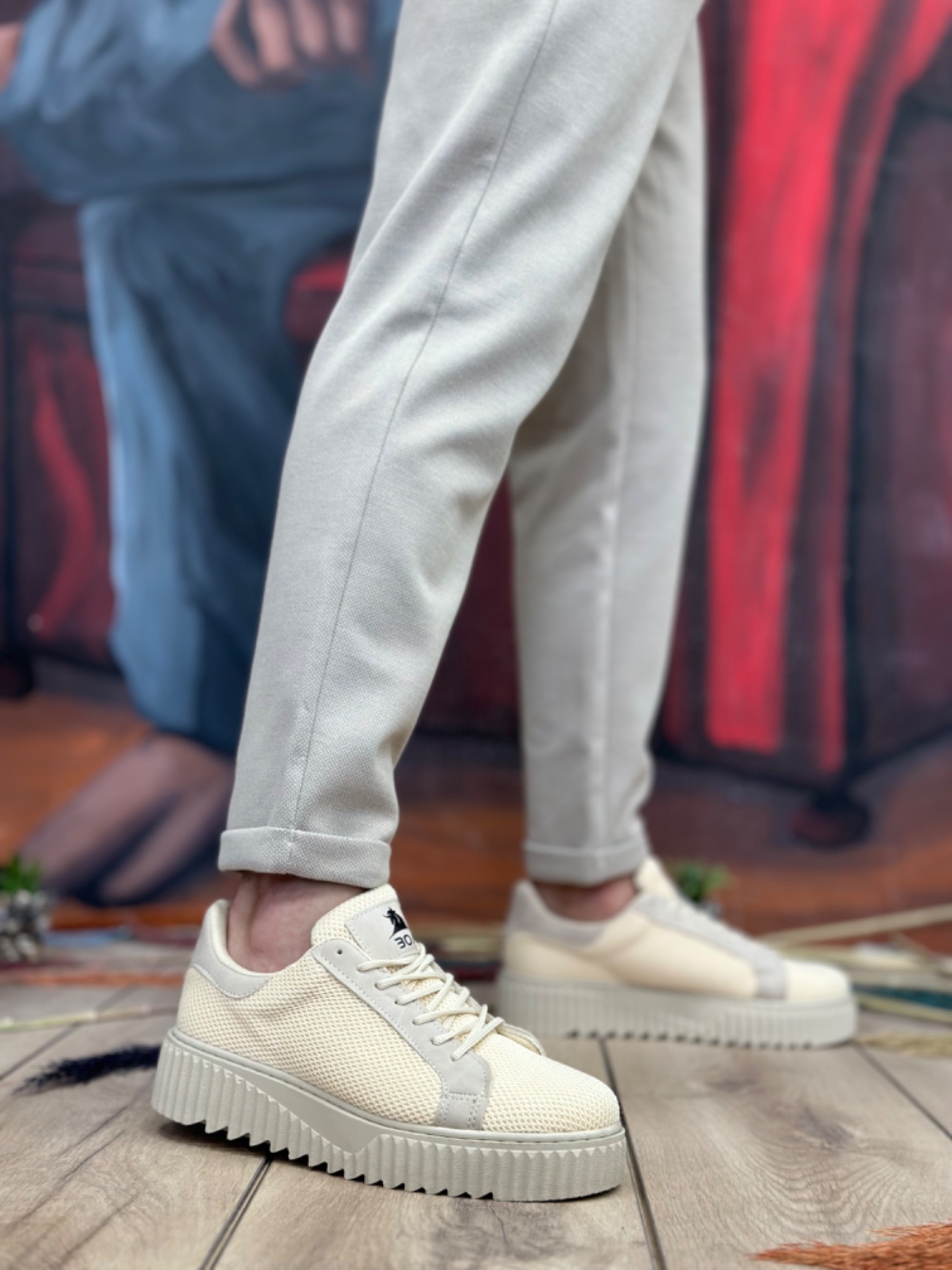• MirgeShoes Krem Erkek Günlük Spor Ayakkabı Triko Örgü Yüksek Kalın KRM Taban MRG010603121