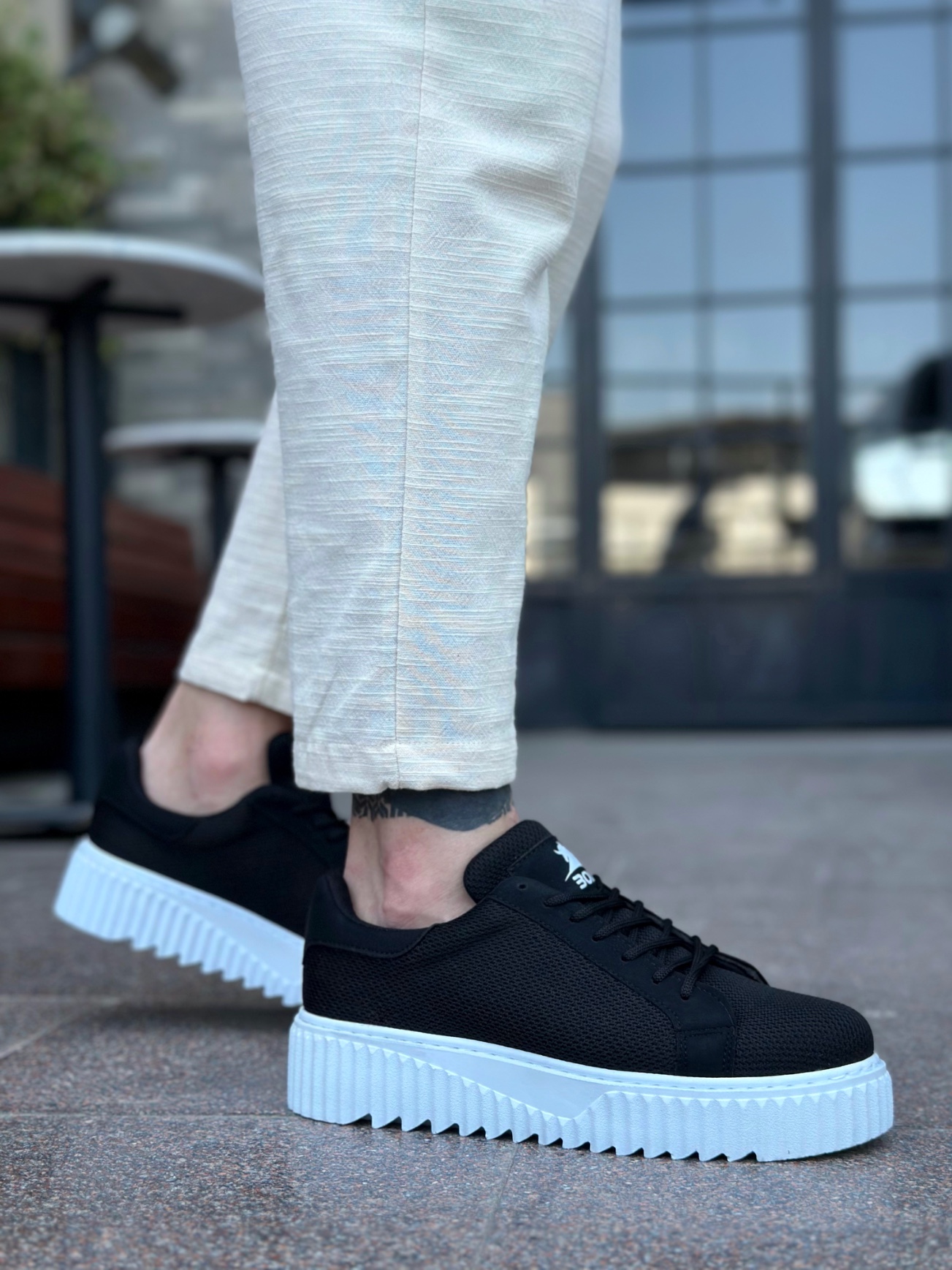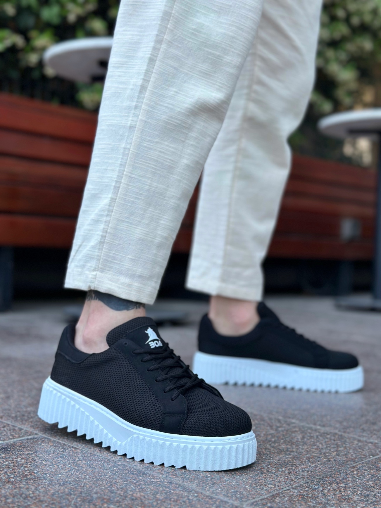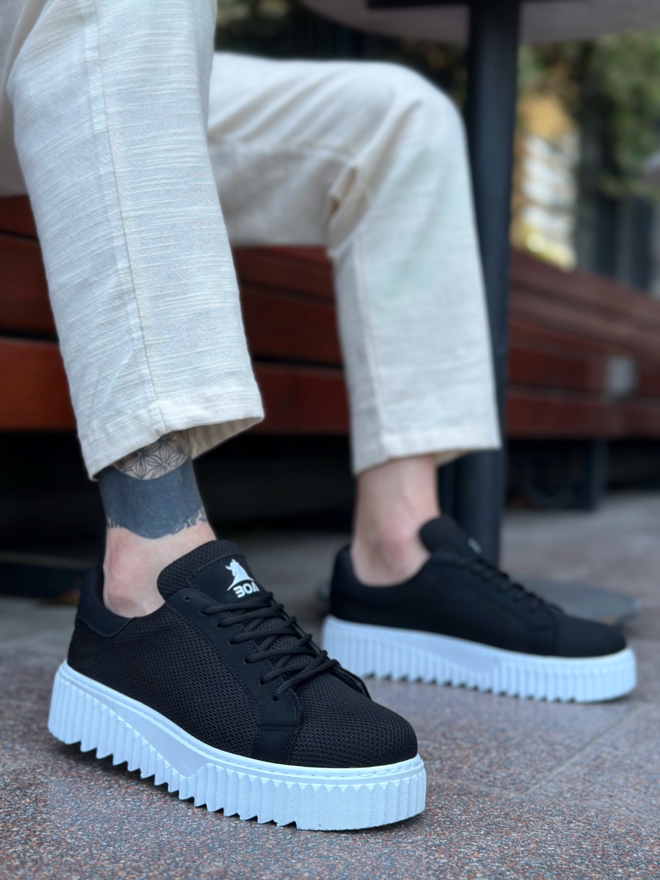 MirgeShoes Siyah Erkek Günlük Spor Ayakkabı Triko Örgü Yüksek Kalın BYZ Taban MRG010603121
