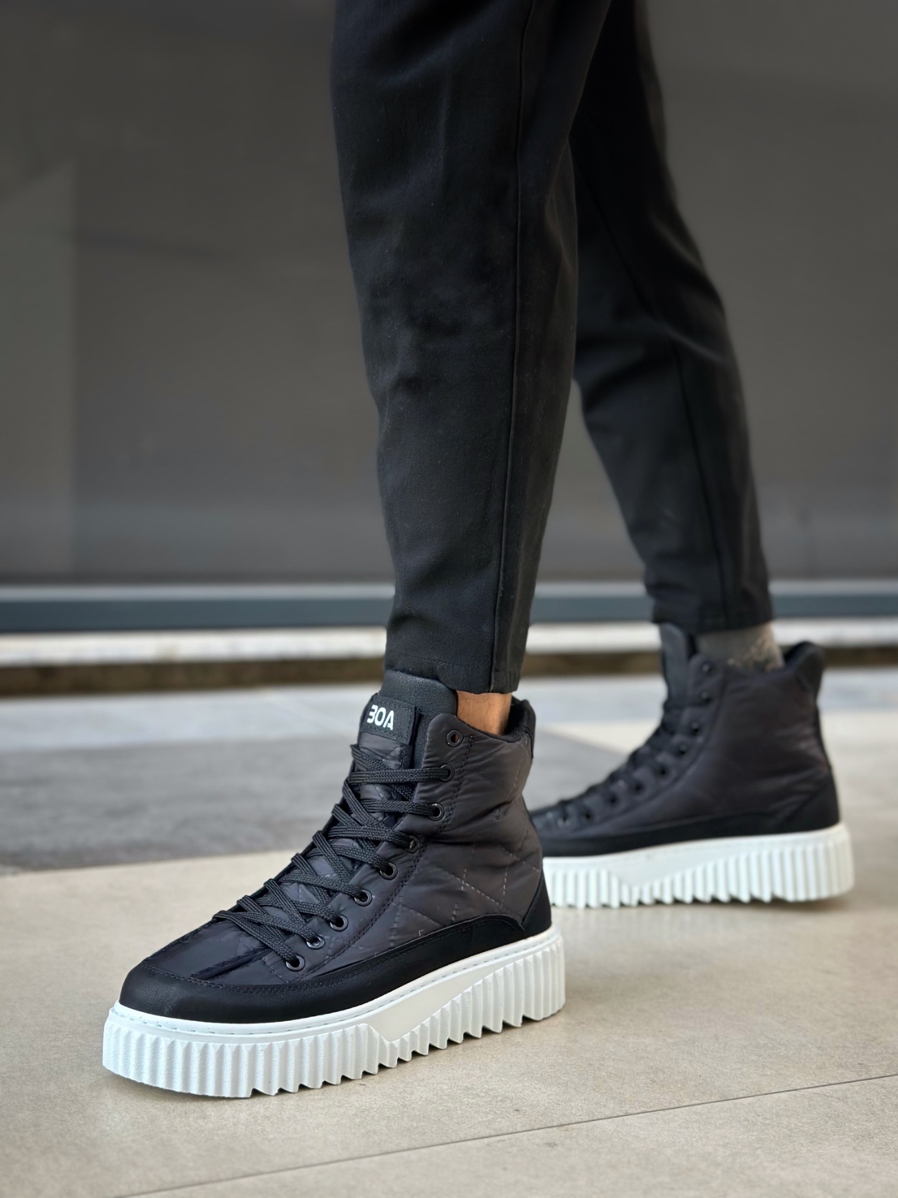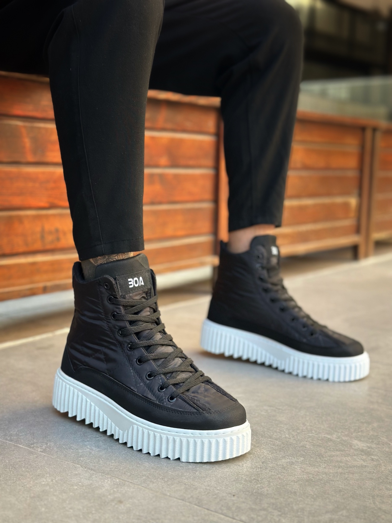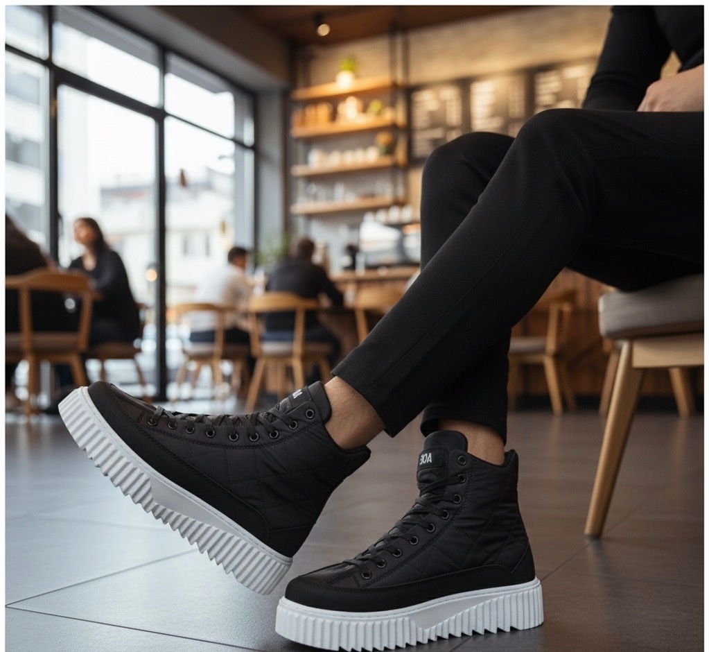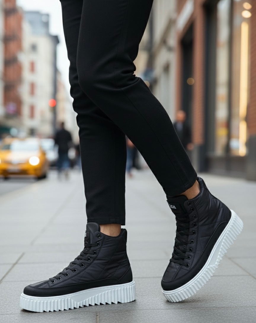 • MirgeShoes Siyah Bağcıklı Erkek Spor Bot Paraşüt Kumaş Yüksek Tırtıklı BYZ Taban MRG010603129