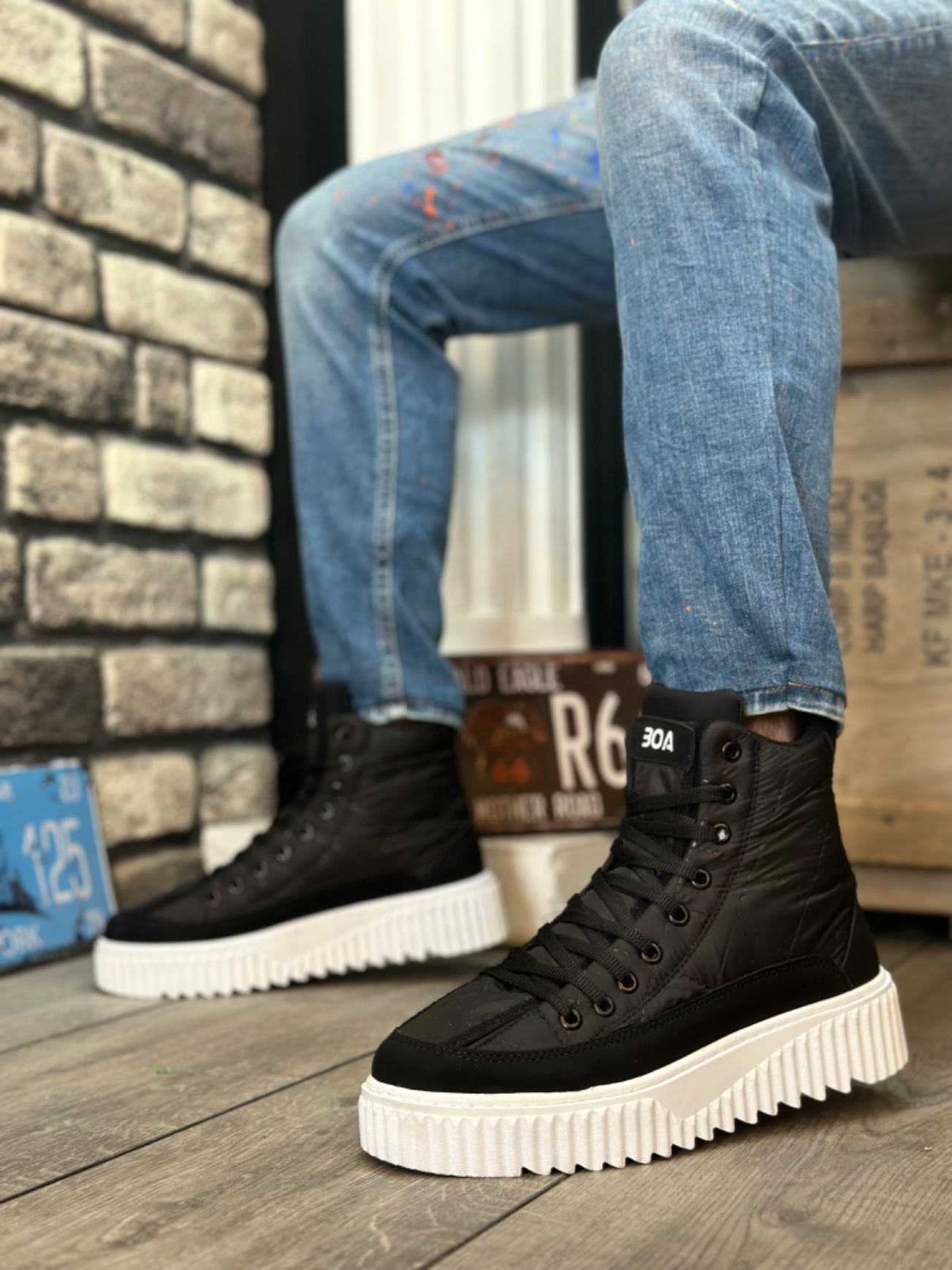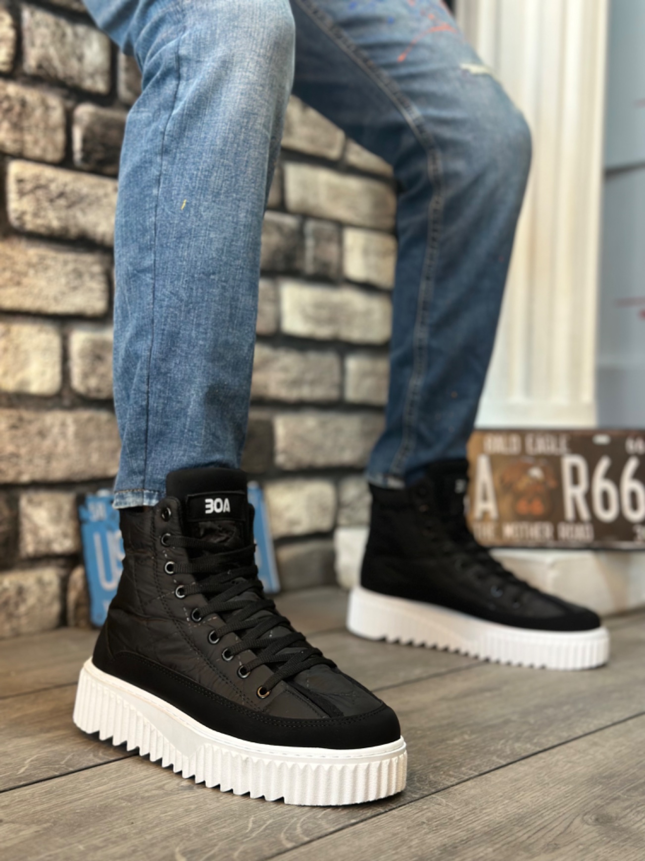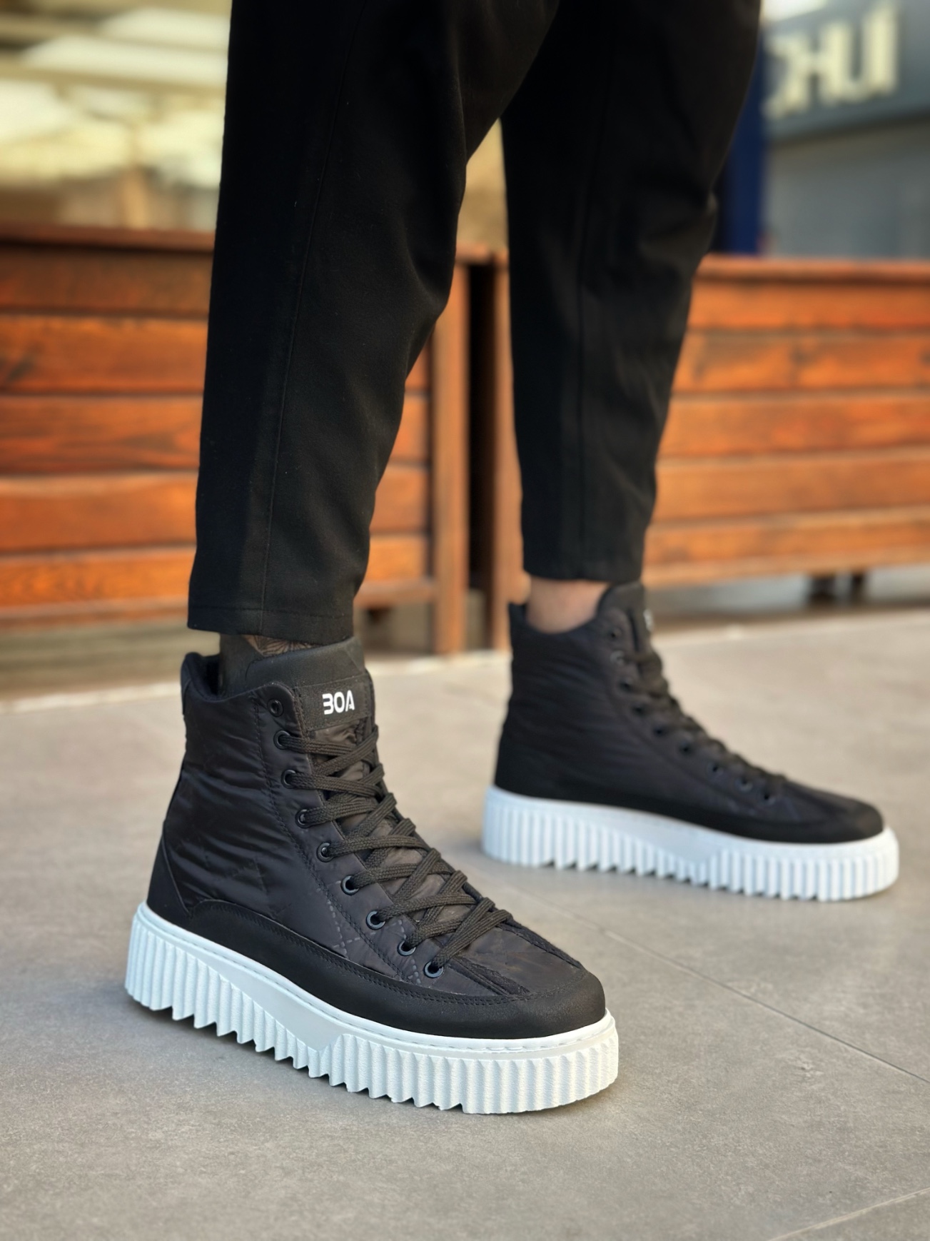 • MirgeShoes Siyah Bağcıklı Erkek Spor Bot Paraşüt Kumaş Yüksek Tırtıklı BYZ Taban MRG010603129