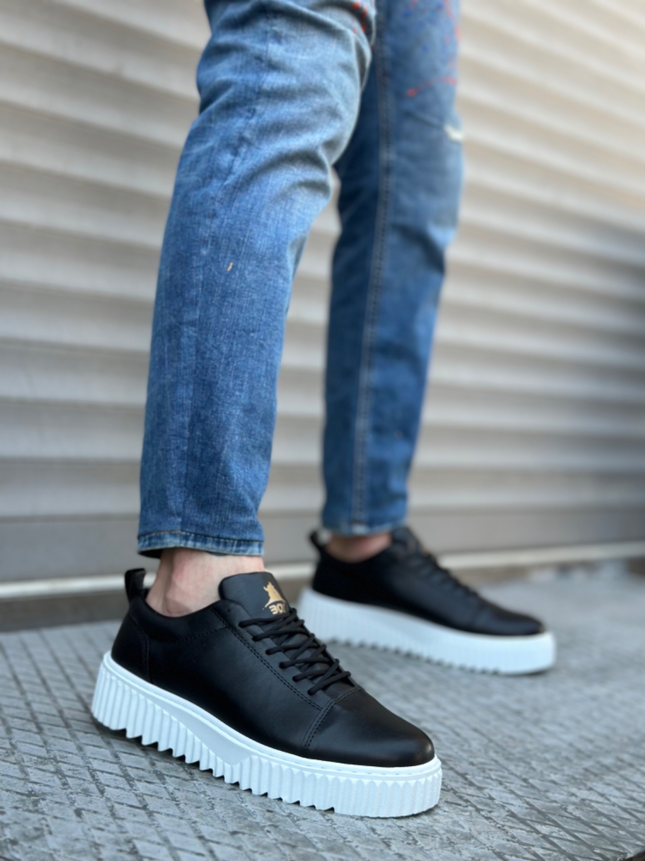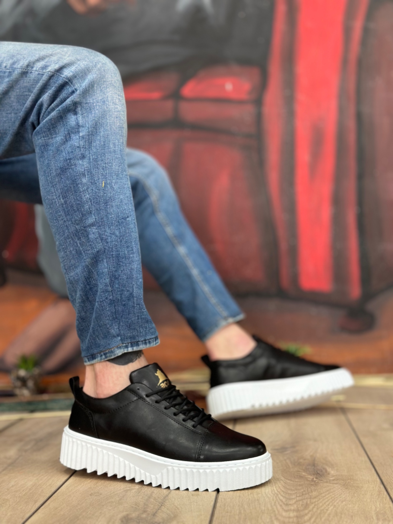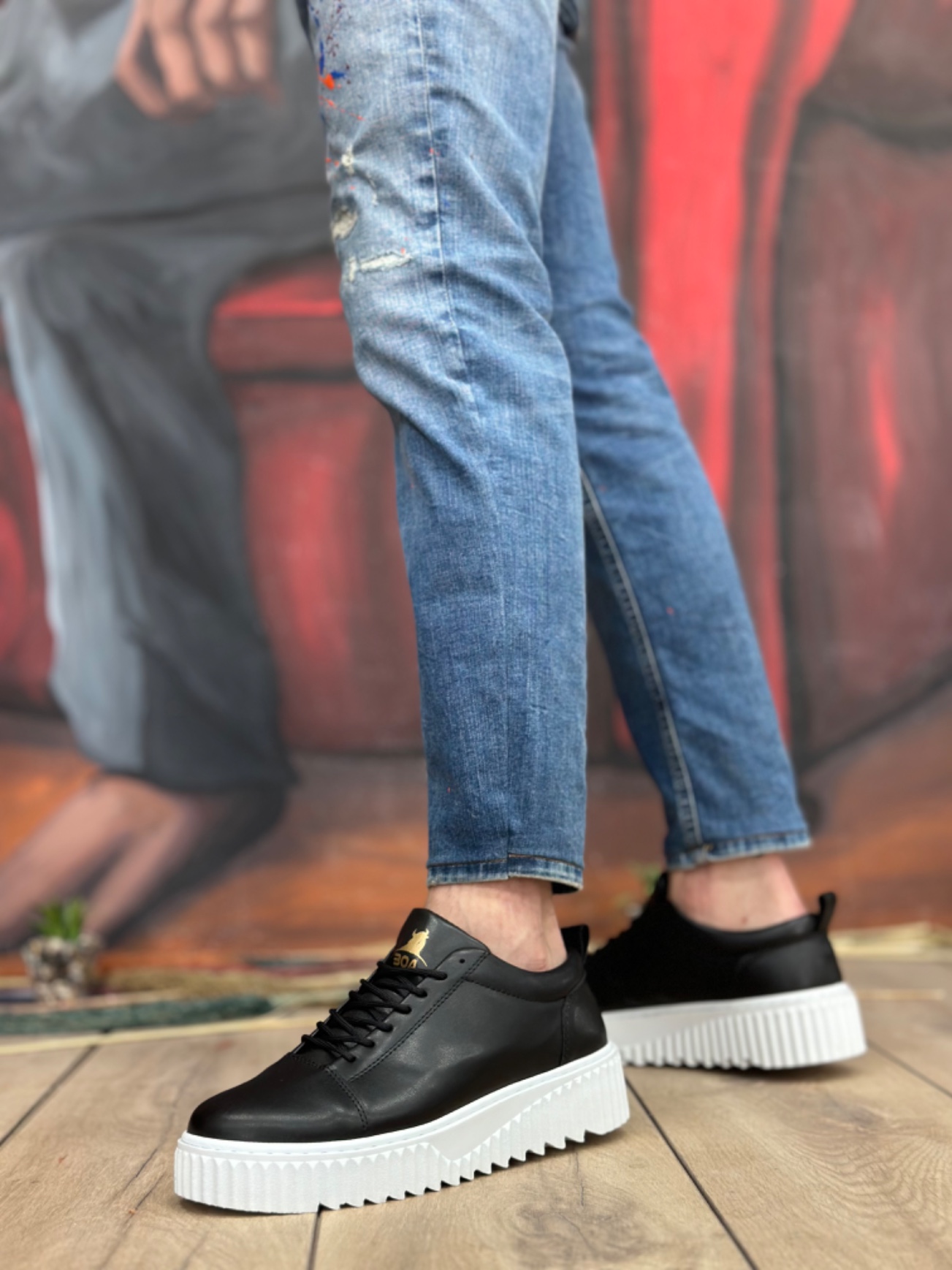 MirgeShoes Siyah Bağcıklı Erkek Casual Spor Ayakkabı Yüksek Kalın Beyaz Taban MRG010610422