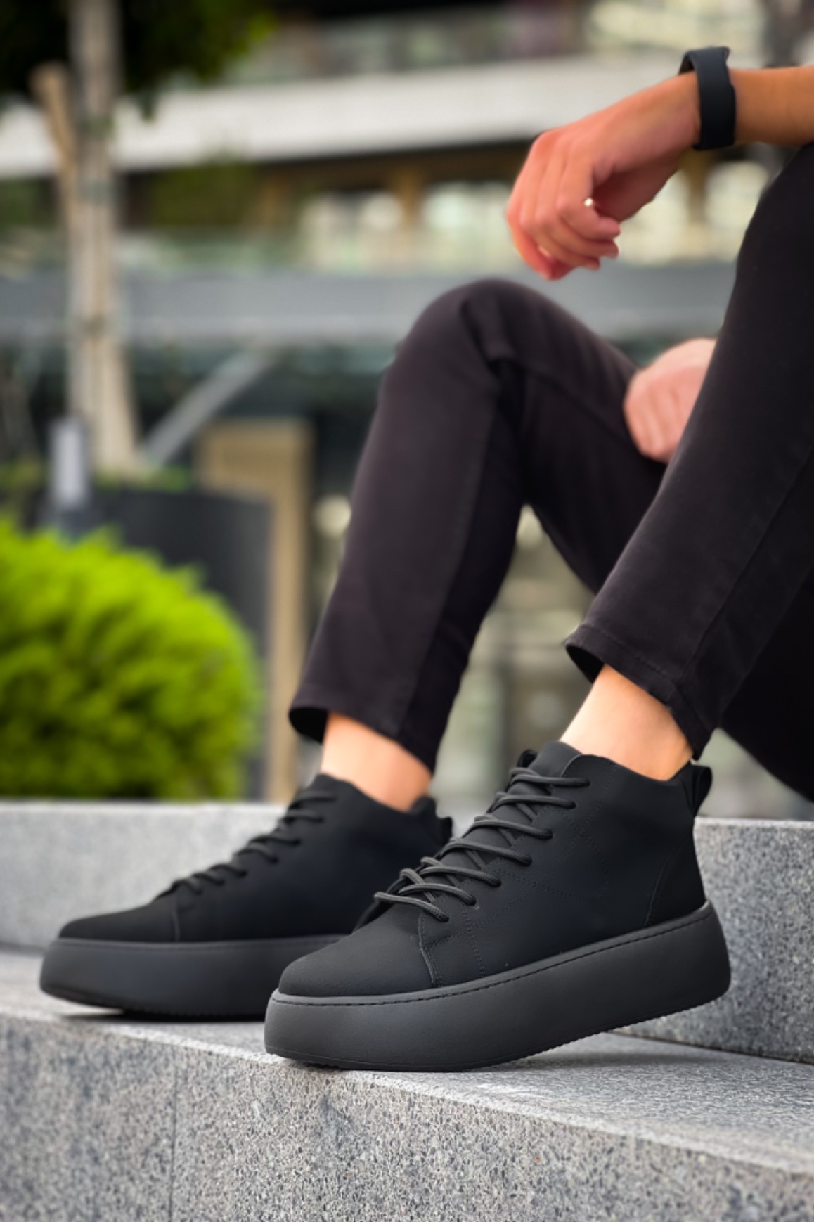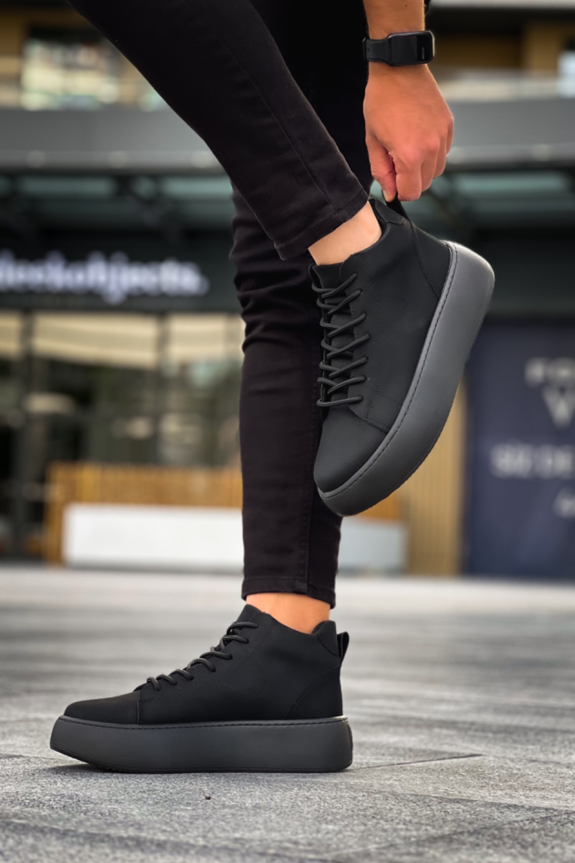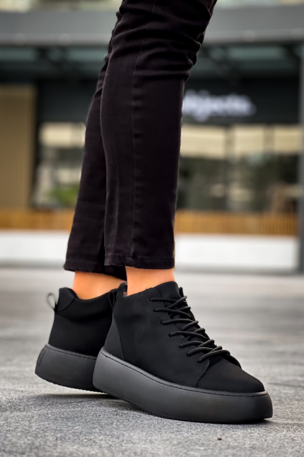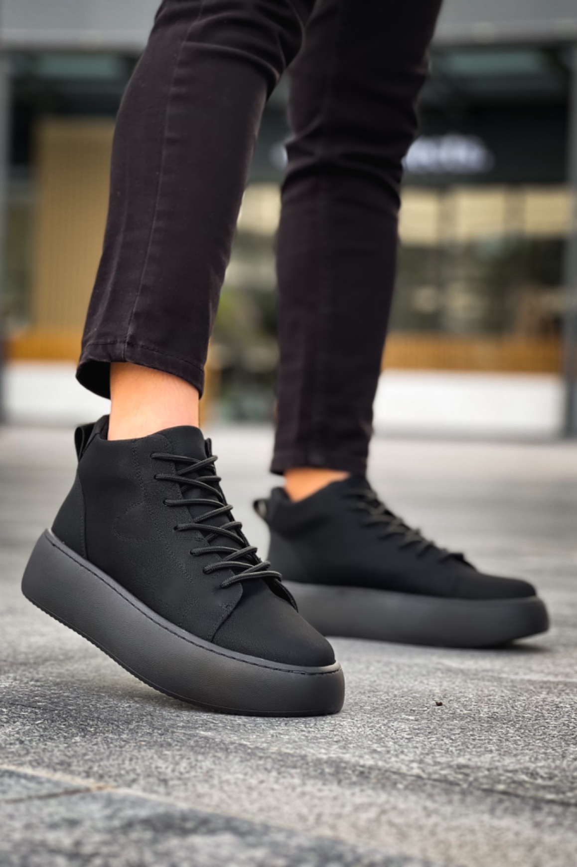 MirgeShoes Siyah Bağcıklı Erkek Spor Bot Deri Rahat Yüksek Kalın Siyah Taban SY MRG01062328