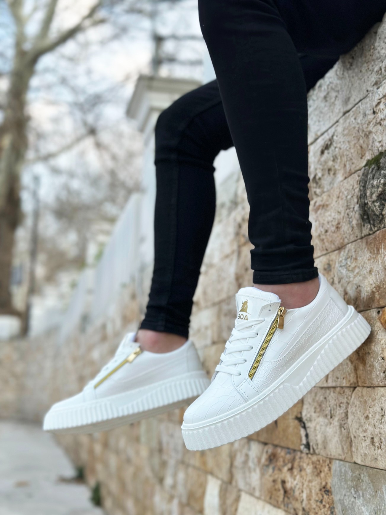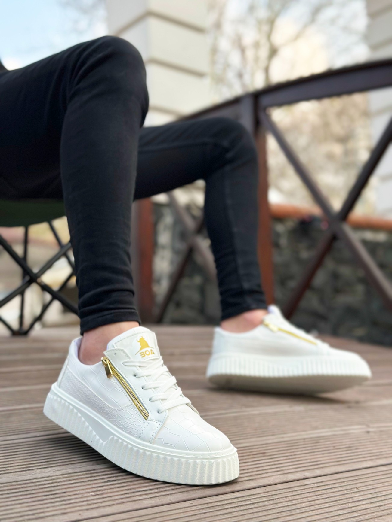 • MirgeShoes Beyaz Çift Fermuarlı Erkek Casual Ayakkabı Kalın Yüksek Taban MRG01062626