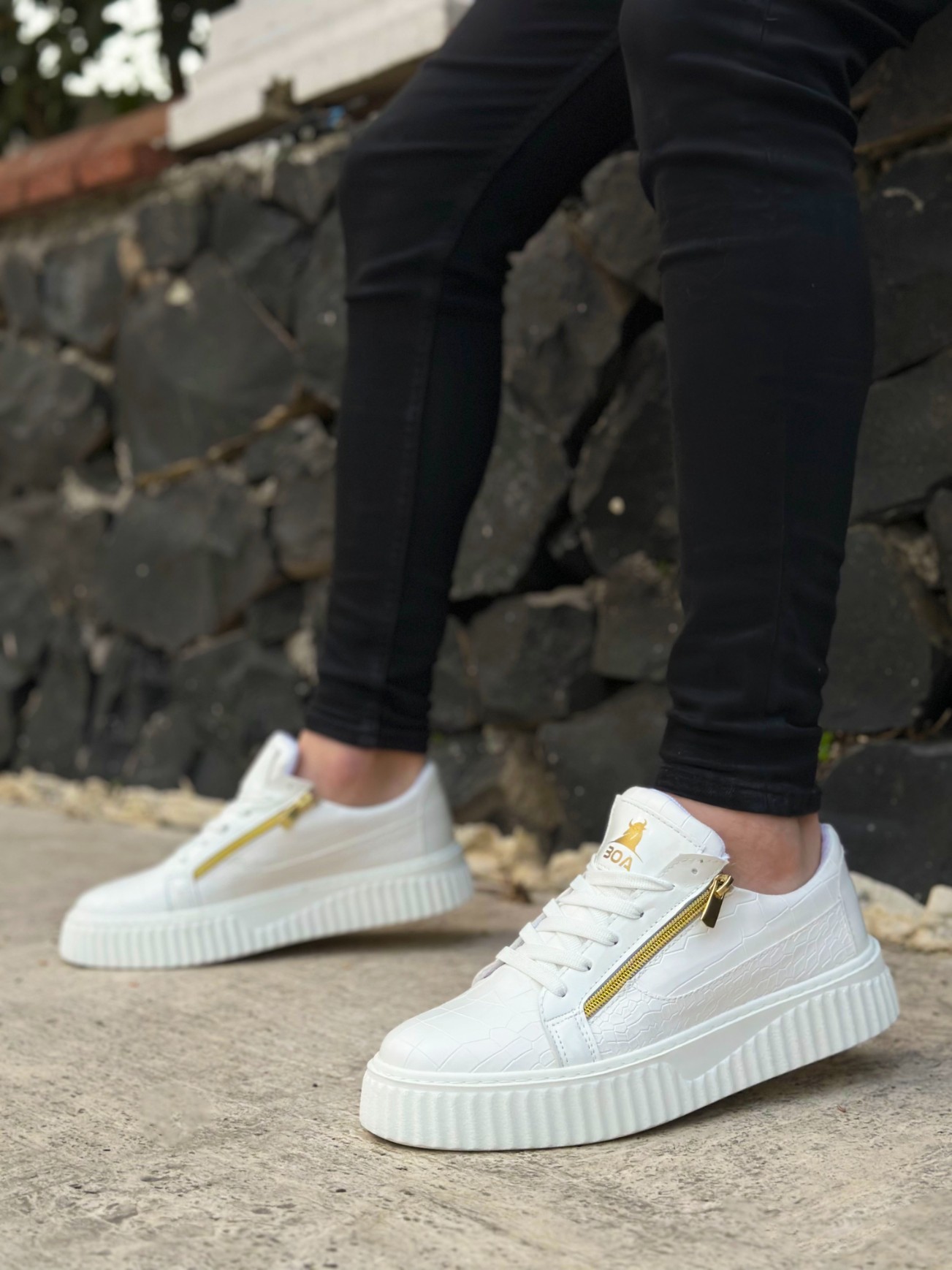 MirgeShoes Beyaz Çift Fermuarlı Erkek Casual Ayakkabı Kalın Yüksek Taban MRG01062626
