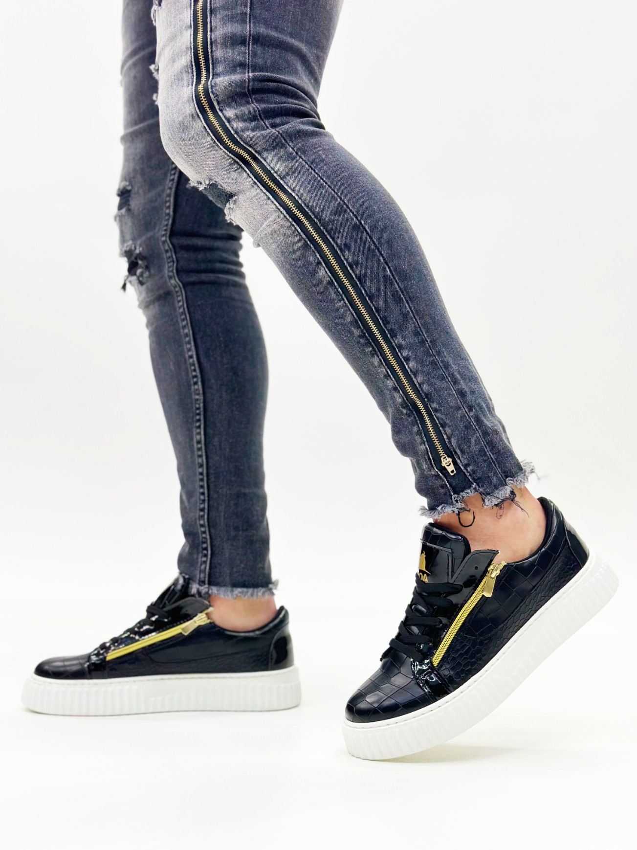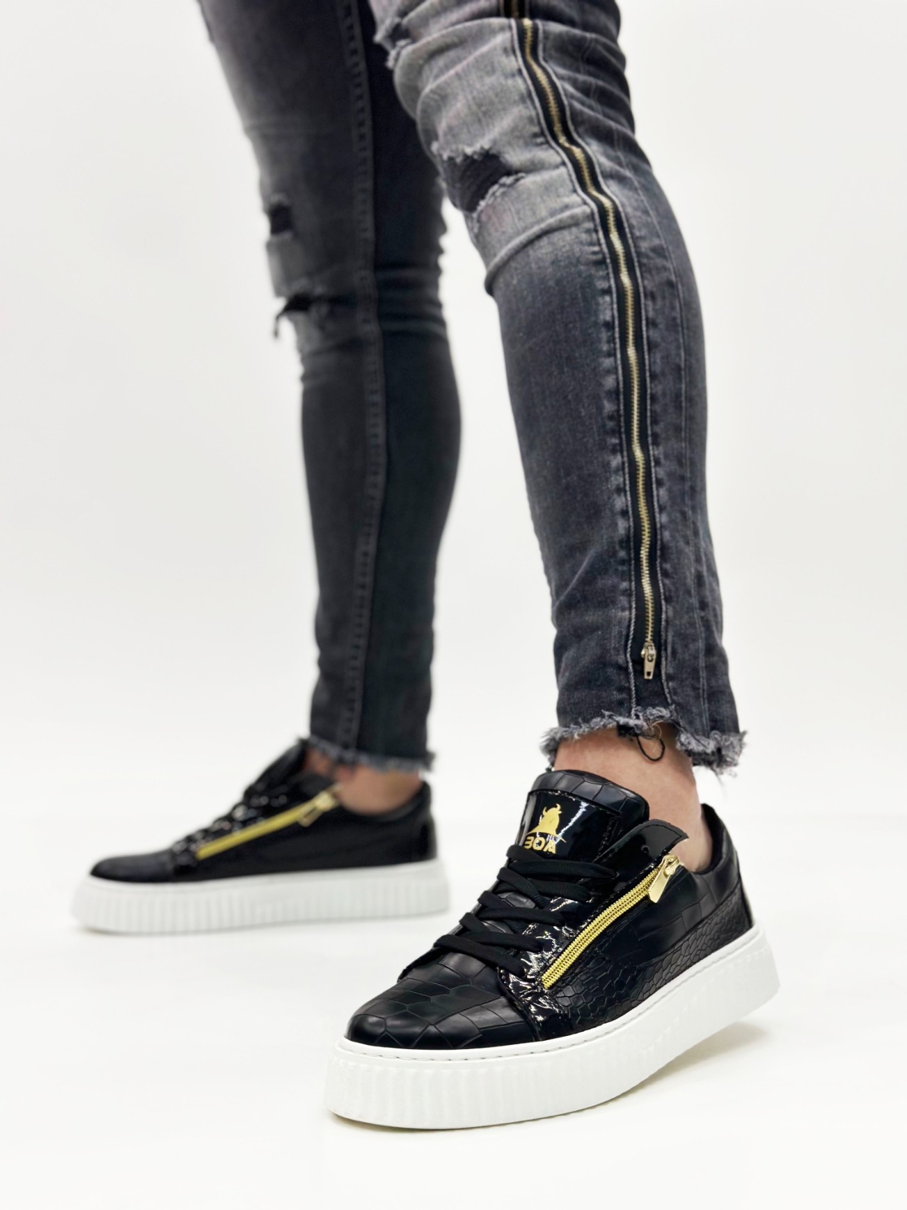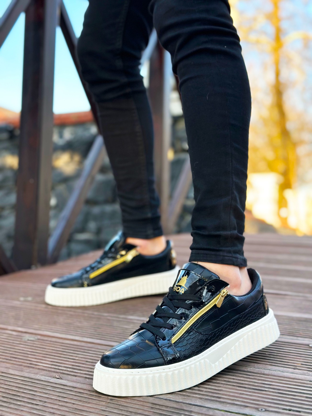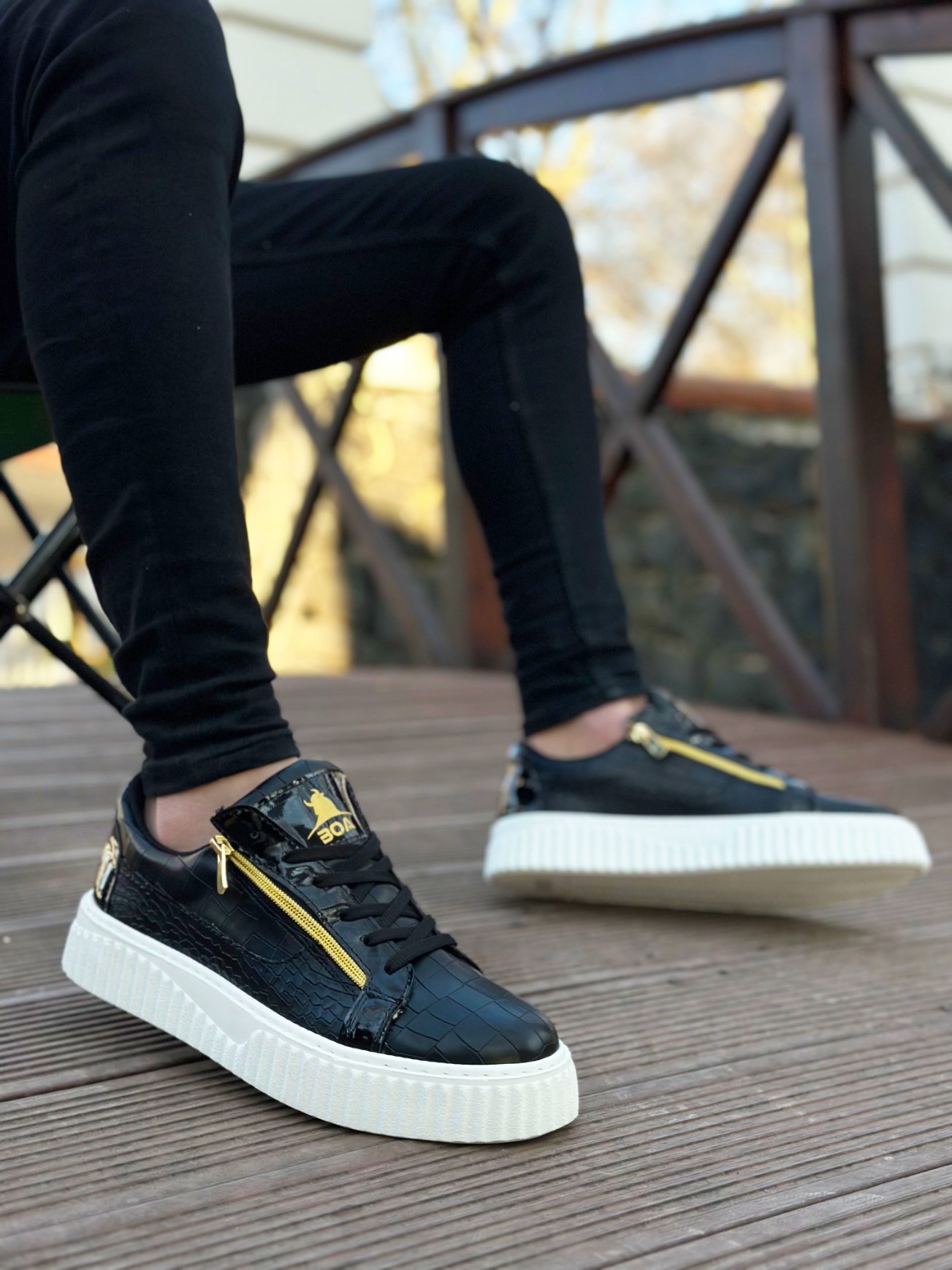 • MirgeShoes Siyah Çift Fermuarlı Erkek Casual Ayakkabı Kalın Yüksek Beyaz Taban MRG01062626