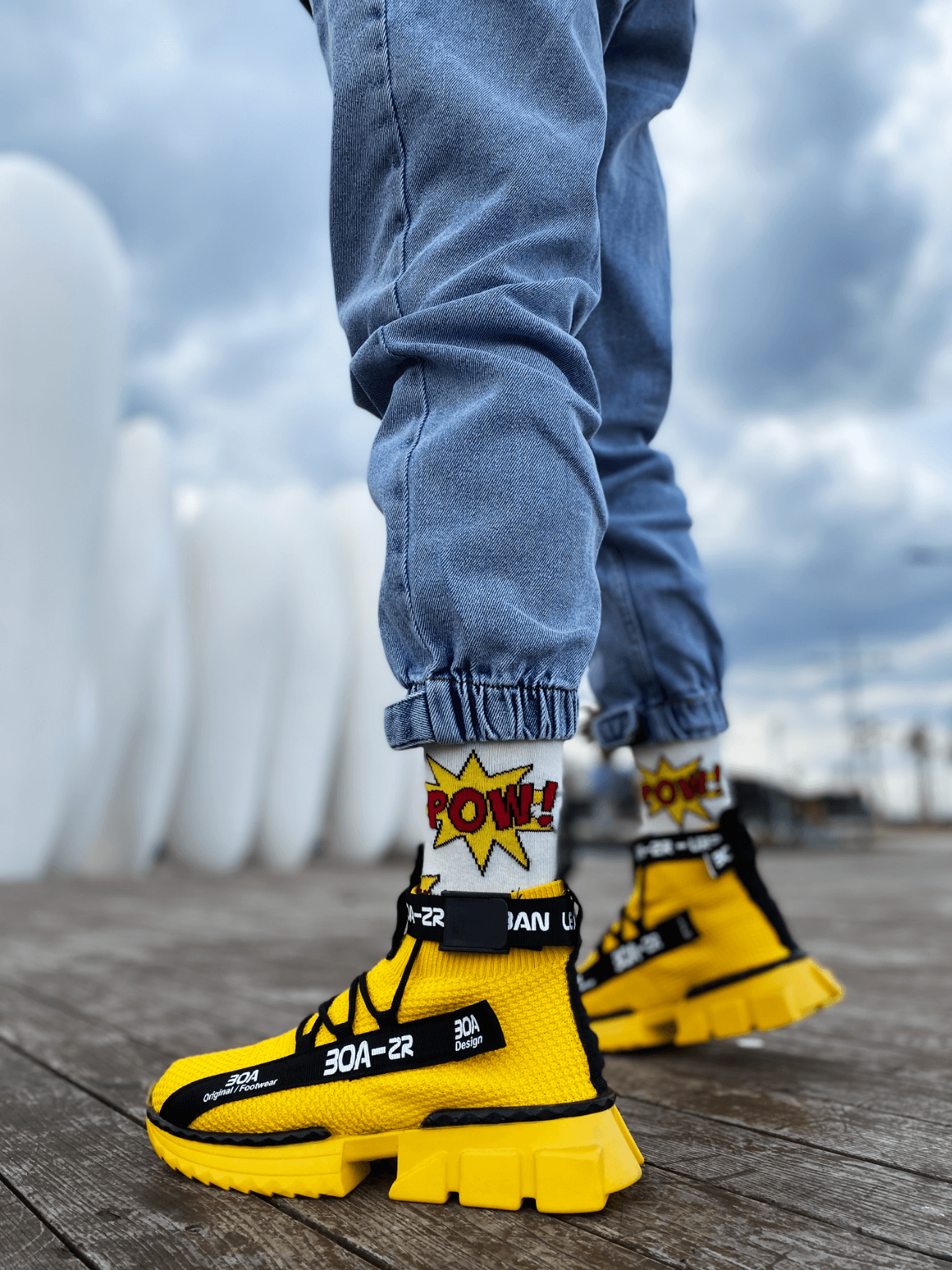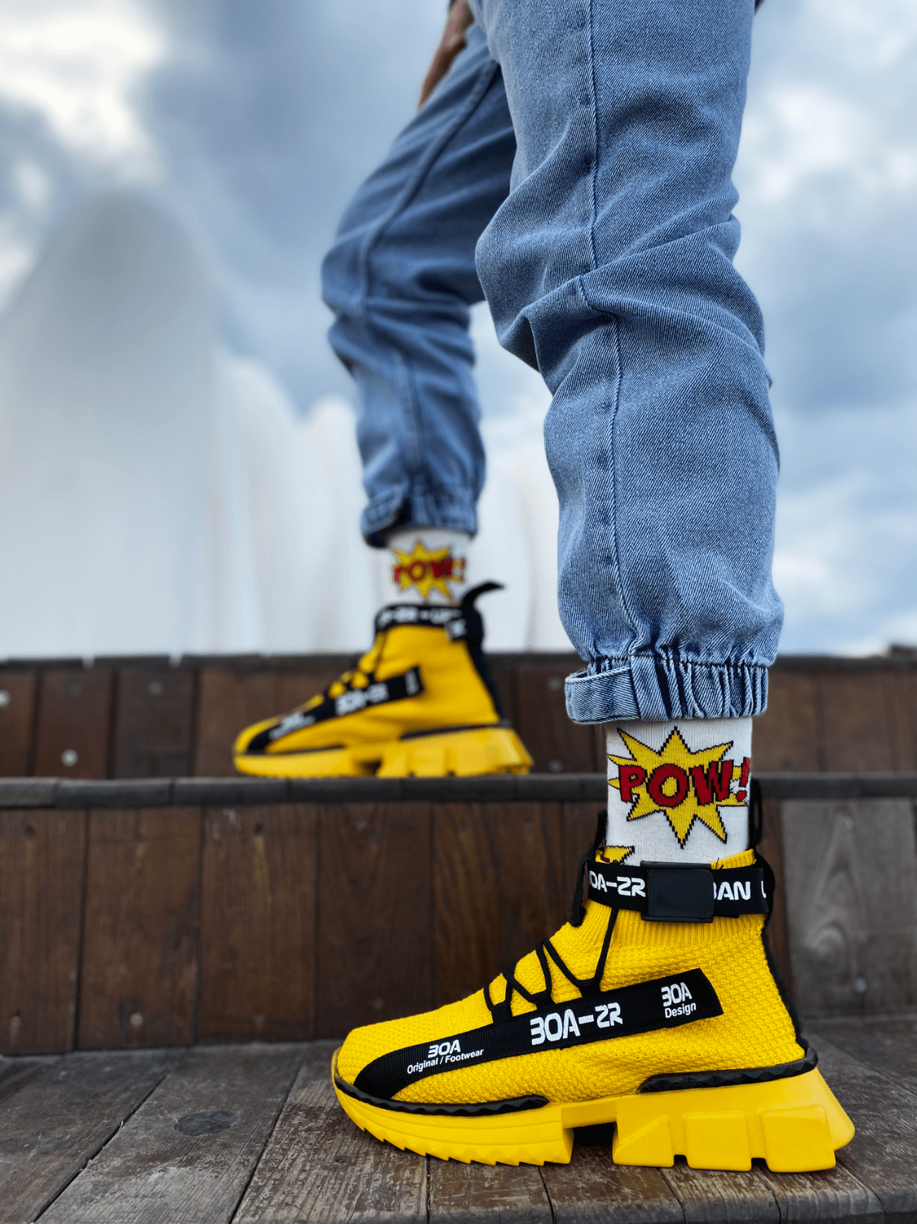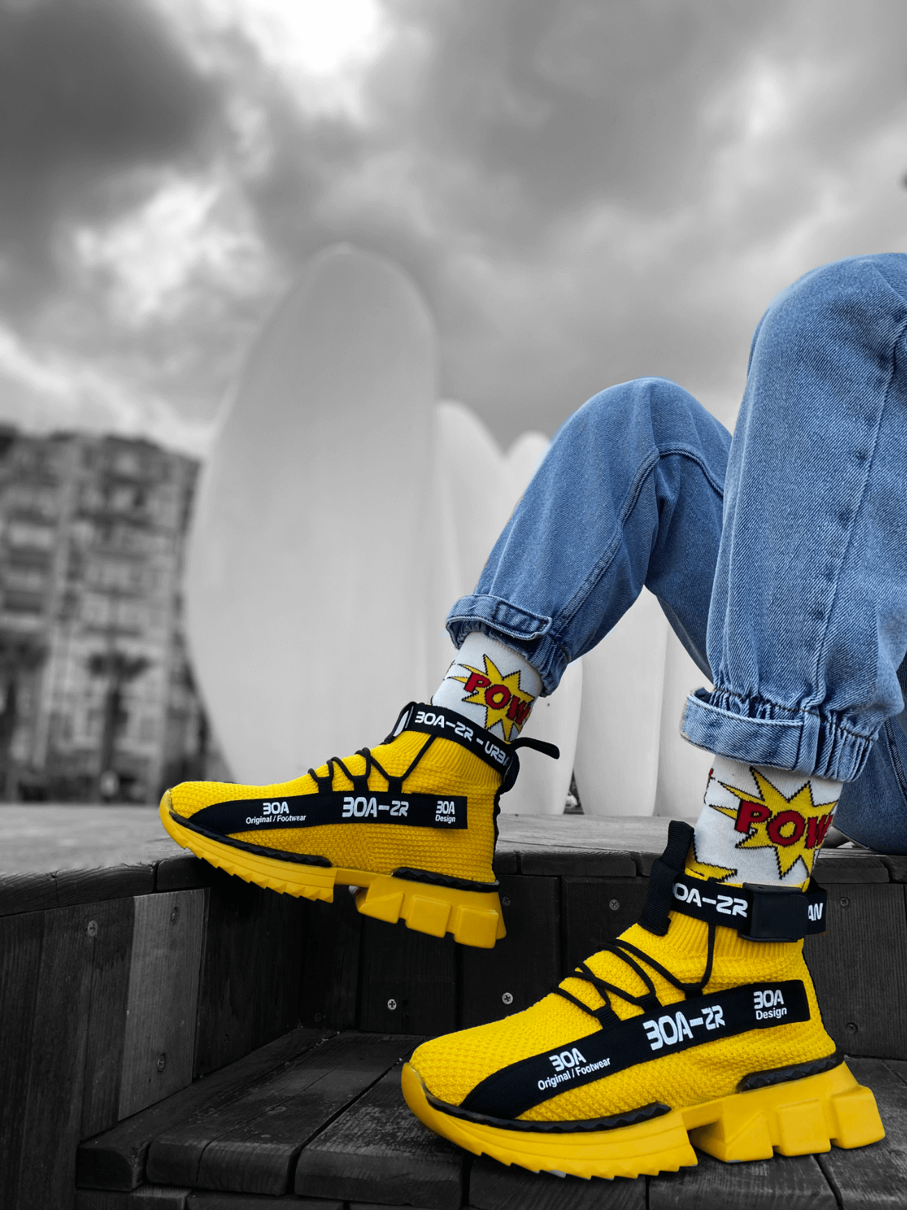 MirgeShoes Sarı Erkek Tarz Spor Ayakkabı Triko Doku Yüksek Taban SR MRG01063018