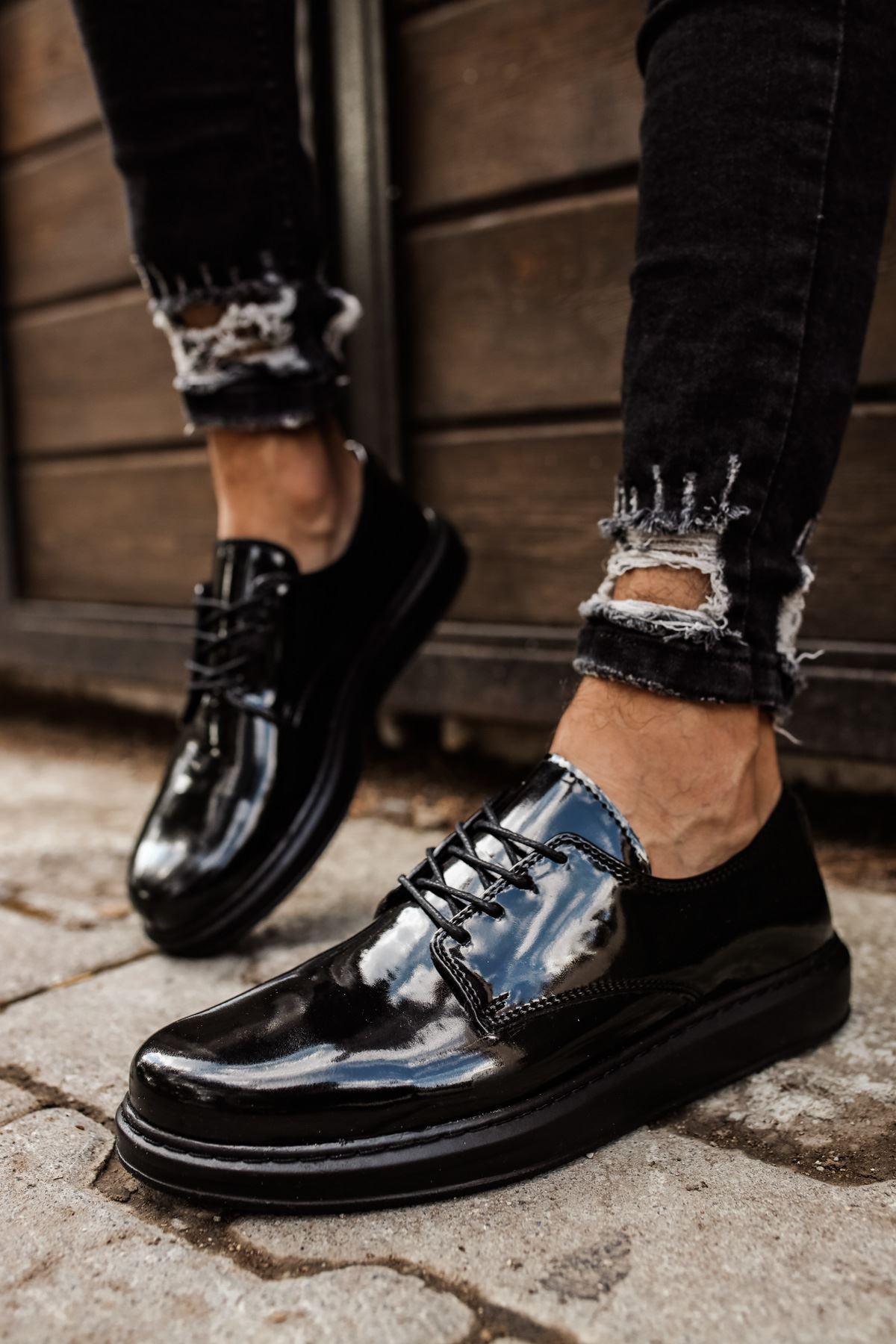 MirgeShoes Parlak Siyah Bağcıklı Erkek Classic Ayakkabı Kalın SYH Taban MRG0106002321
