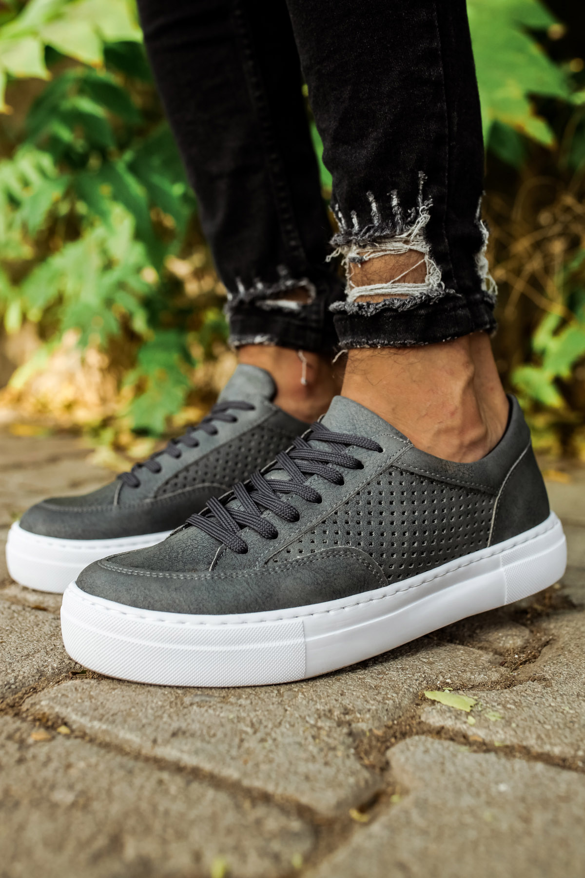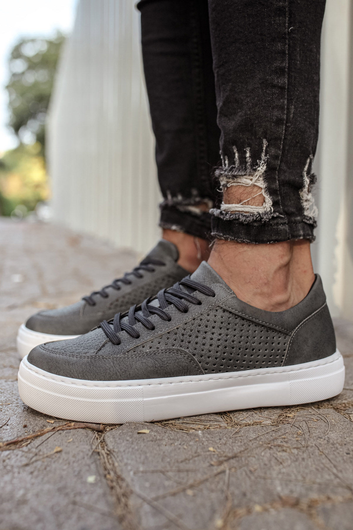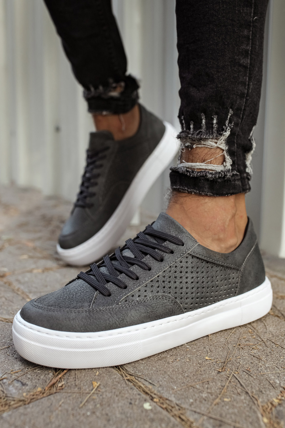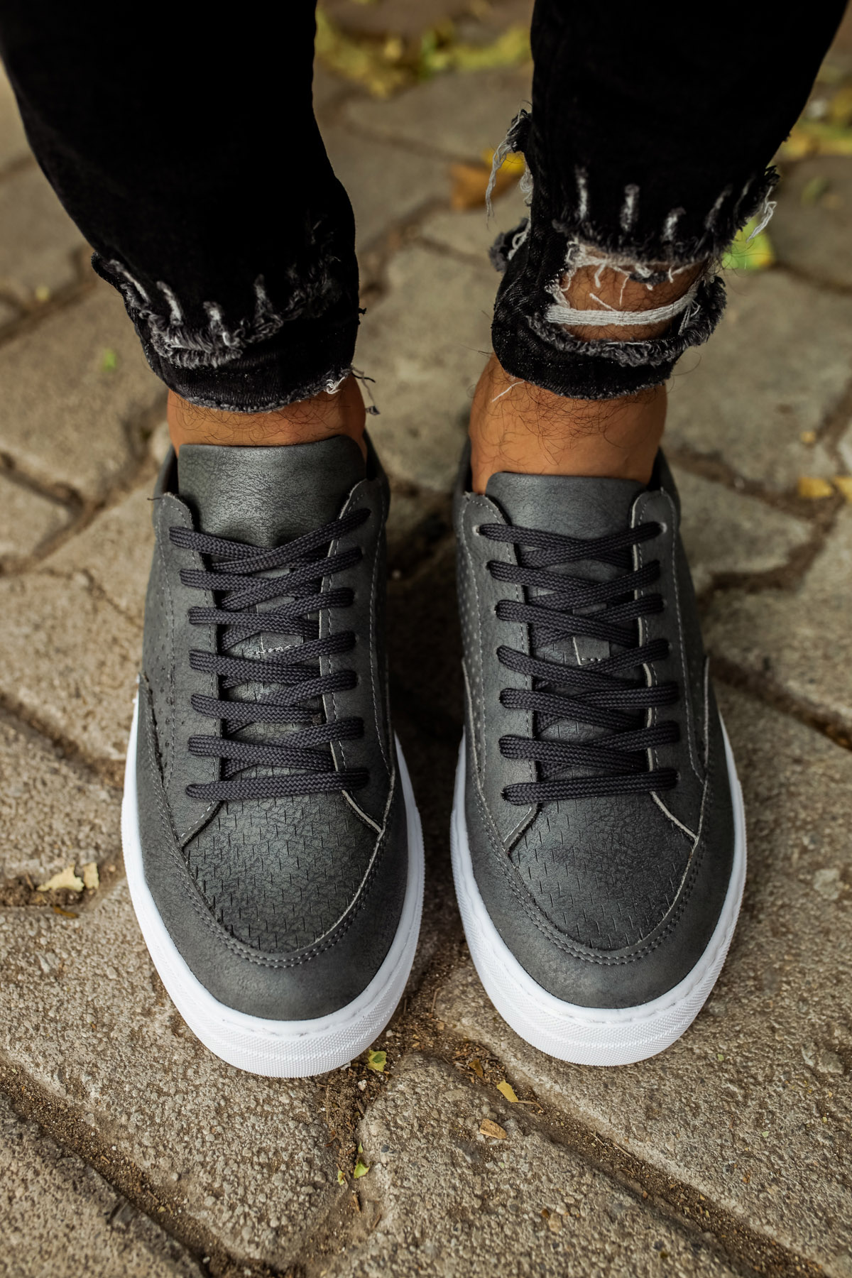 • MirgeShoes Antrasit Bağcıklı Unisex Casual Spor Ayakkabı Düz Model Kalın BYZ Taban MRG010602333