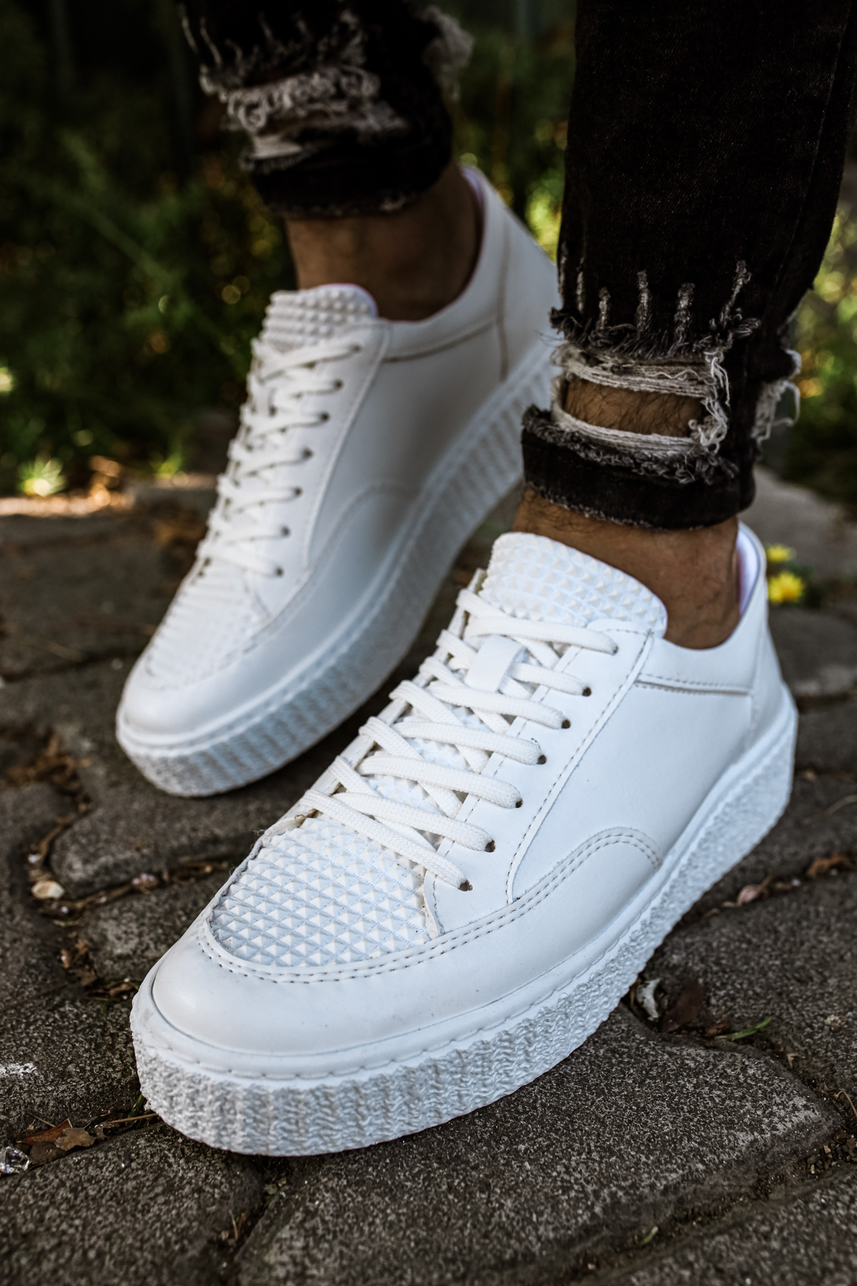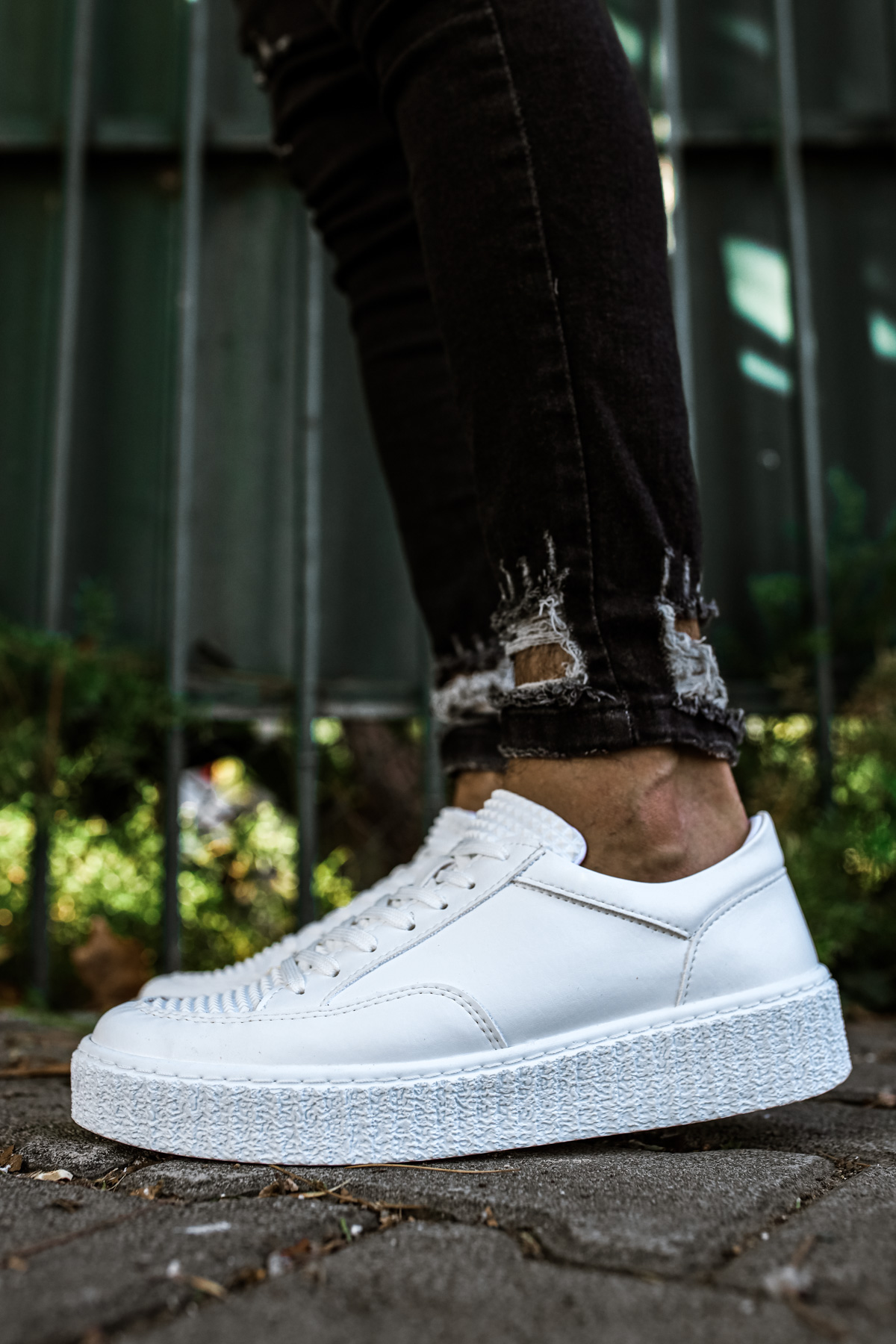 • MirgeShoes Beyaz Bağcıklı Erkek Klasik Casual Ayakkabı Yüksek Kalın BYZ Taban MRG010602335