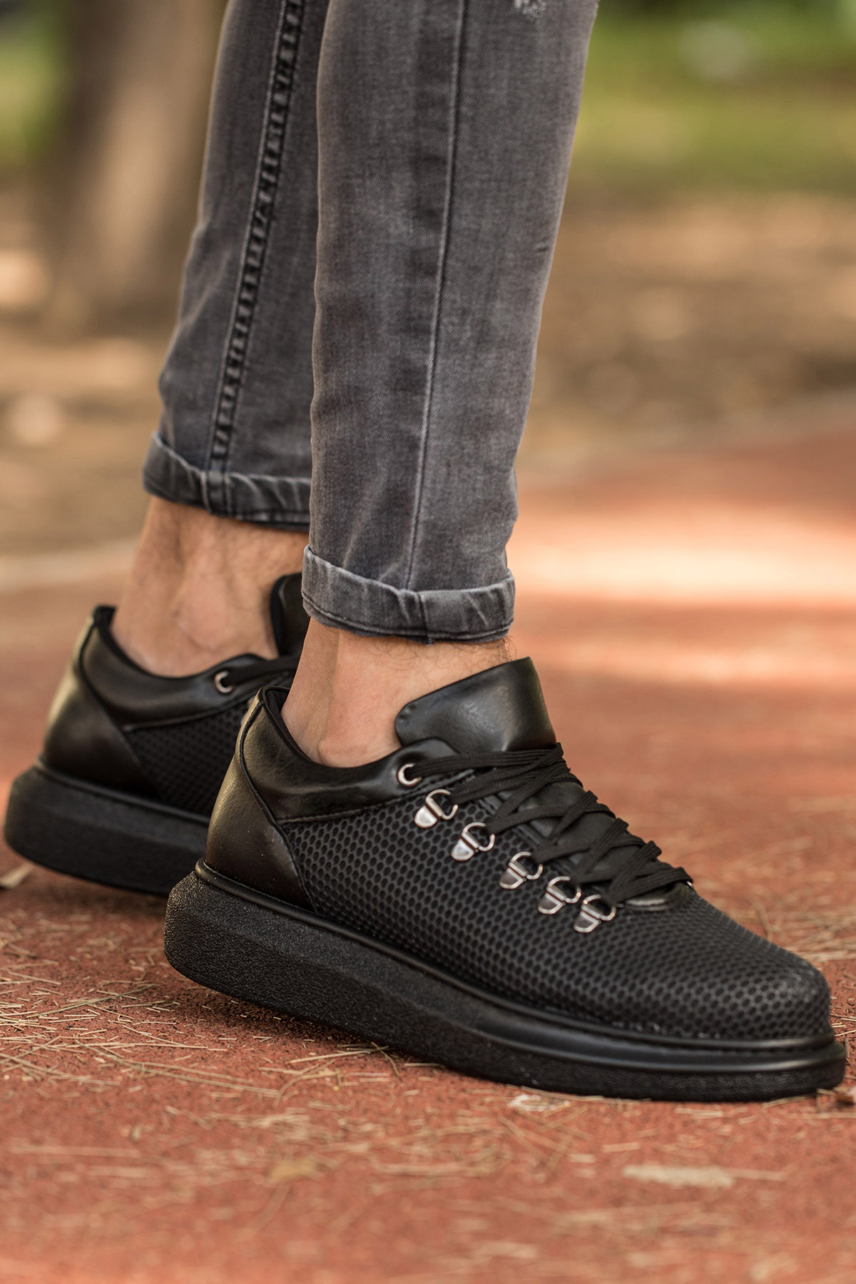 • MirgeShoes Siyah Çengel Bağcıklı Unisex Casual Ayakkabı Tarz Kalın SYH Taban MRG01062339