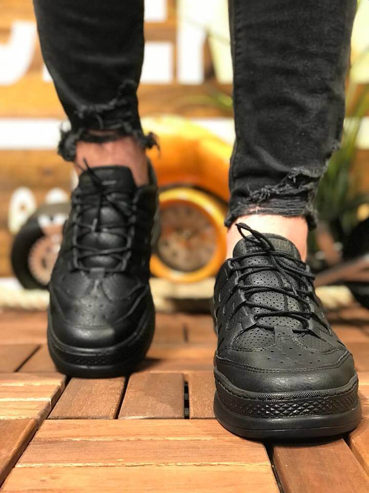 • MirgeShoes Siyah Bağcıklı Unisex Casual Ayakkabı Modelli Kalın SYH Taban MRG010602358