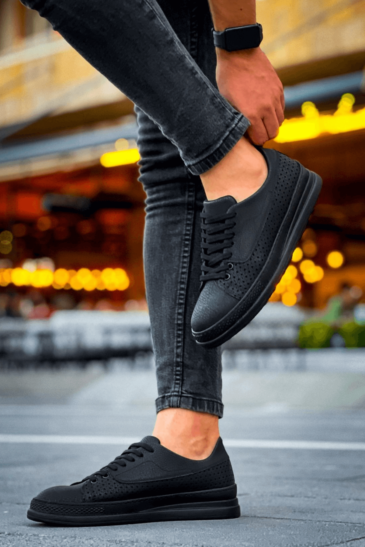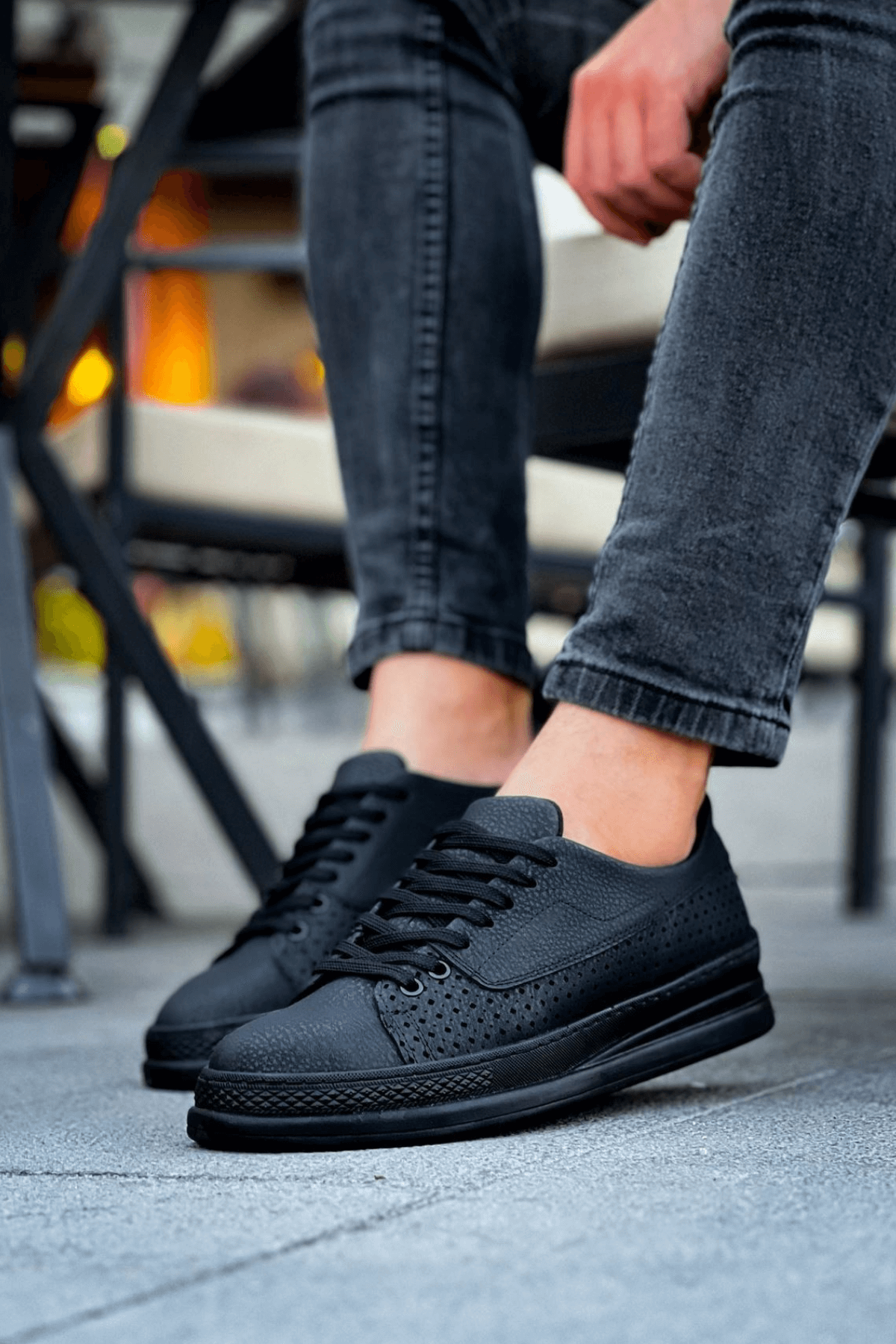 MirgeShoes Siyah Bağcıklı Unisex Casual Spor Ayakkabı Kalın SYH Taban MRG010602361